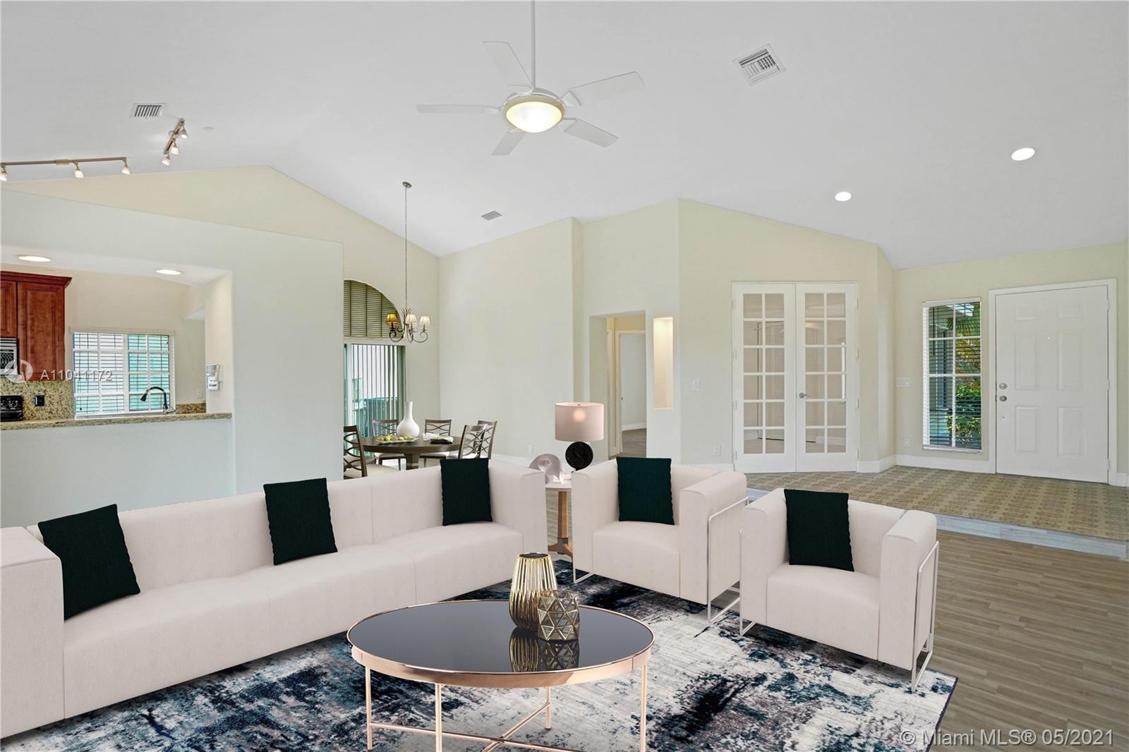 **OPEN HOUSE CANCELLED** Fabulous opportunity @ HIGHLY SOUGHT "LAGUNA SPRINGS 2" 1 level Waterfront home sitting on OVERSIZED LOT, featuring unique architectural details. Expansive living areas with volume ceilings and so much light! Enjoy calming views of WATERFRONT & GREENERY, true South Florida indoor/outdoor lifestyle. Large patio with brick pavers overlooking a peaceful setting. New roof & accordion shutters, new breaker panel, new flooring & baseboards, new A/C unit, new paint inside & out. Located in a small, quaint & centrally located enclave with resort style community pool. WALKING DISTANCE to Indian Trace Elementary, Tequesta Trace Park facilities, Middle school, shopping & houses of worship. **Select images have been virtually staged**