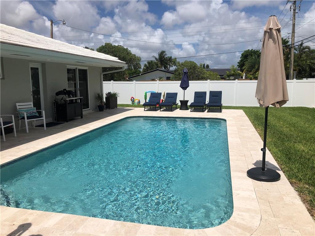 Beautiful 3 Bedroom/ 2 Bath Pool Home on huge Corner lot in desirable Imperial Point! Updated kitchen features Frigidaire Gallery appliances, Granite Countertops, mosaic tile backsplash & Shaker-style cabinets. New 24” tile flooring throughout Kitchen & Laundry room, has storage & brand new washer/dryer. You’ll love the custom box-trim & Crown molding, plantation shutters on all Impact Windows. This home is secured by a Ring Alarm system. The Living Room boasts a home entertainment system that delivers a Dolby Digital theater-like surround sound effect. Resort-style pool was redone in 2019 with new pump, filter, salt system, Diamond-brite surface, LED light show, Travertine pavers, & lush tropical garden! Only 2 miles to Lauderdale by the Sea Beach, Restaurants & Shopping! Won't Last!