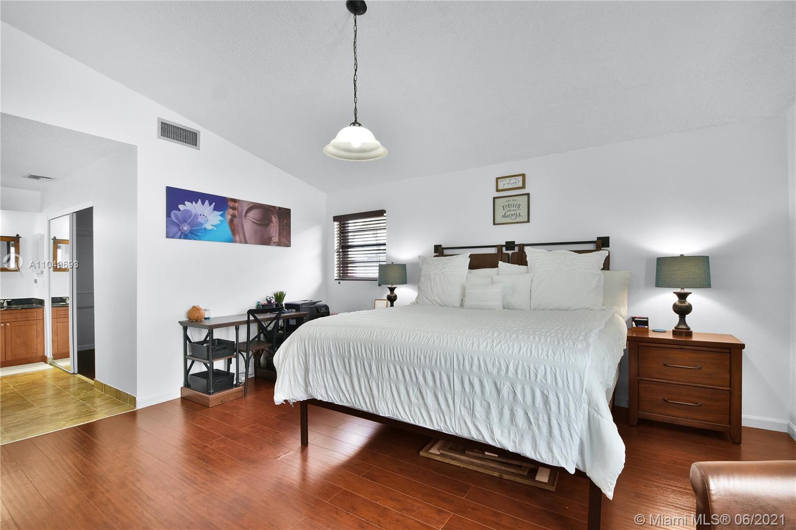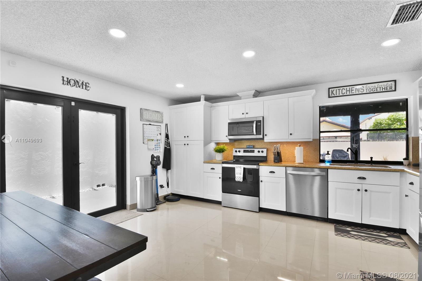 This Moors development home built in 1985 has an exceptional blend of modern and functional living spaces. Highlights include: porcelain tiles on the ground floor, a touch of laminate wood flooring on the second story and updated tiled bathrooms. This desired home is being sold with newer appliances, updated cabinets, a full size outdoor trampoline and above ground pool. This eye catching property located in Hialeah features an interior/exterior fresh coat of paint; an outdoor concrete slab in the backyard for grilling/entertainment. Accordion Style Hurricane Shutters have been installed on all doors and windows, with a roof that’s just shy of 5 years old. In addition, the garage has been partially converted into a storage/laundry room.