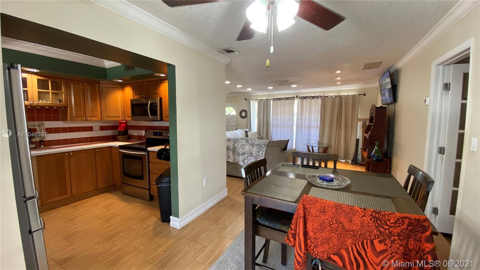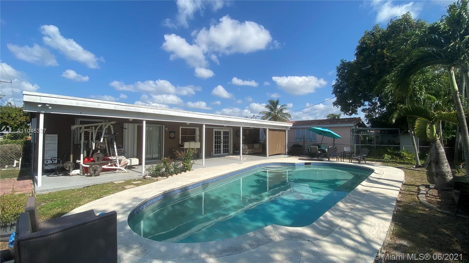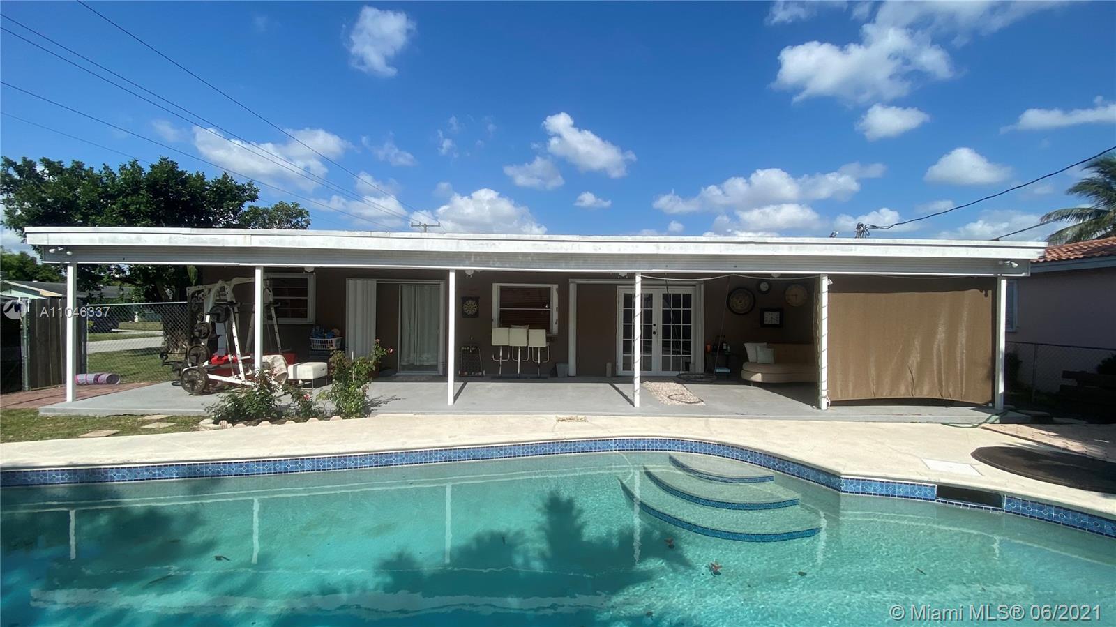 This Miramar pool home offers 3 bedrooms 1 bath. Central A/C; Wooded look ceramic tiles; Stainless steel Samsung kitchen appliances; ceiling fans in the bedrooms; custom built closet in master bedroom; french doors in the dining room; laundry room with full size washer and dryer; 10 ft x 7 ft storage space in converted garage; huge covered patio; fenced in yard. New roof is about 3 years old; Perfect for AirBNB.