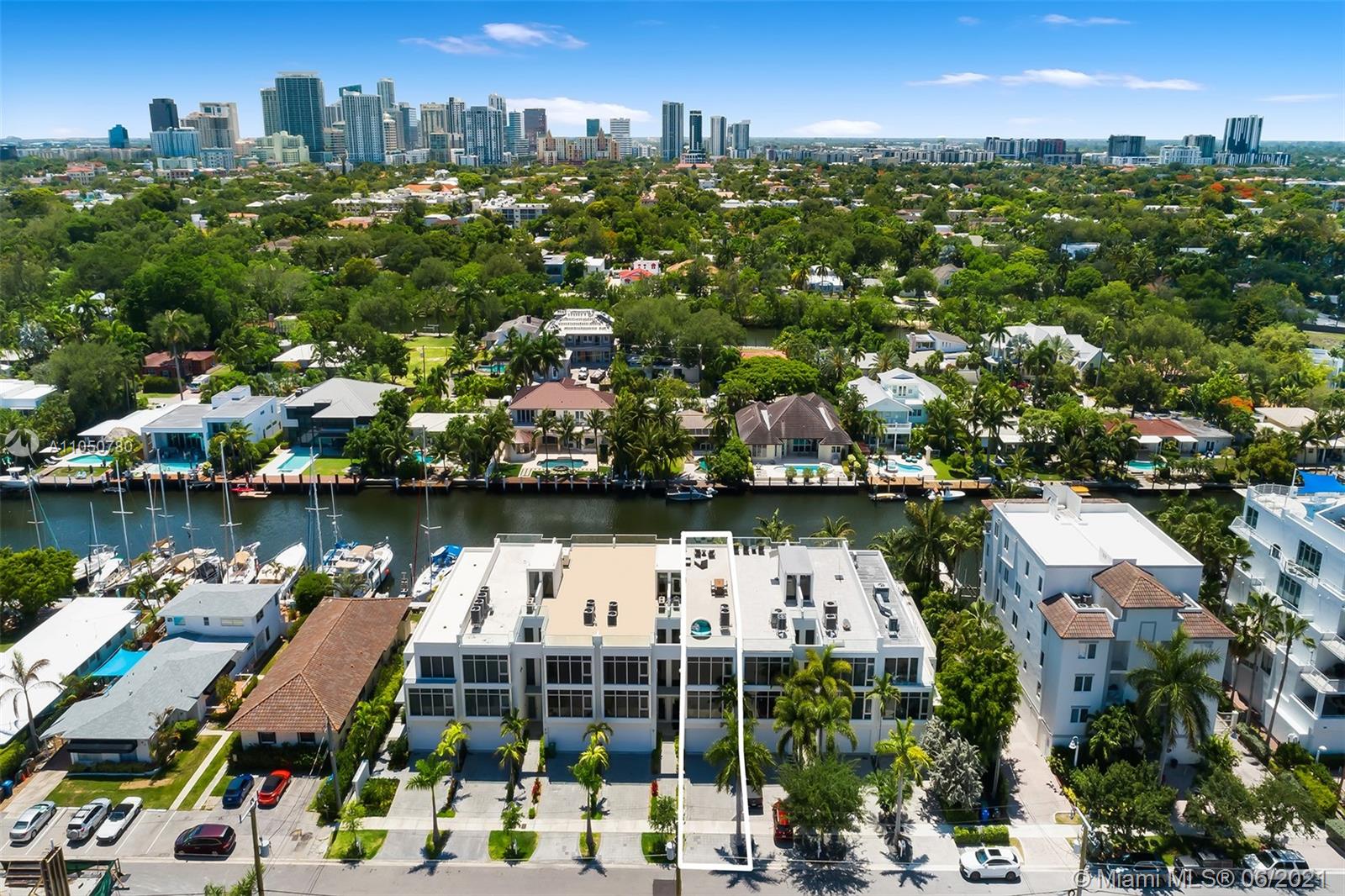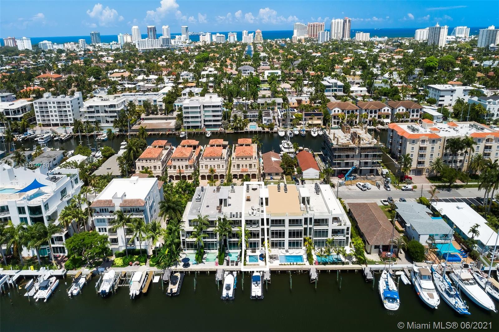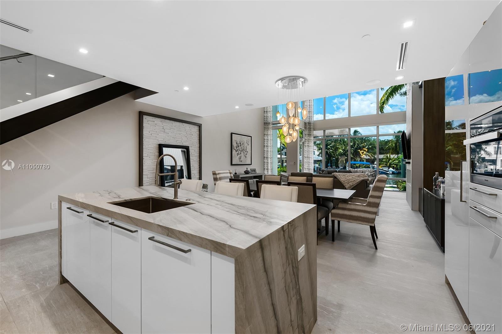 Gorgeous in every way! Waterfront 3 story contemporary townhome, 10x12' private pool & dock slip for a vessel up to 45 feet w/ direct ocean access. Simply stunning with great designer finishes plus dramatic soaring ceilings. Private roof top terrace with views of the waterway & city skyline. Modern design provides open living space with large island for entertaining. Second floor offers a large loft area which can be used as a media room, game room or second living space. Three en suite bedrooms/baths with complimenting finishes. Interior elevator, 2 car garage, electric window shades, porcelain floors, security pads, surround sound & Miele appliances make this striking home the best on the market. Located in prestigious Las Olas Isles. Walking distance to the beach & famous Las Olas Blvd