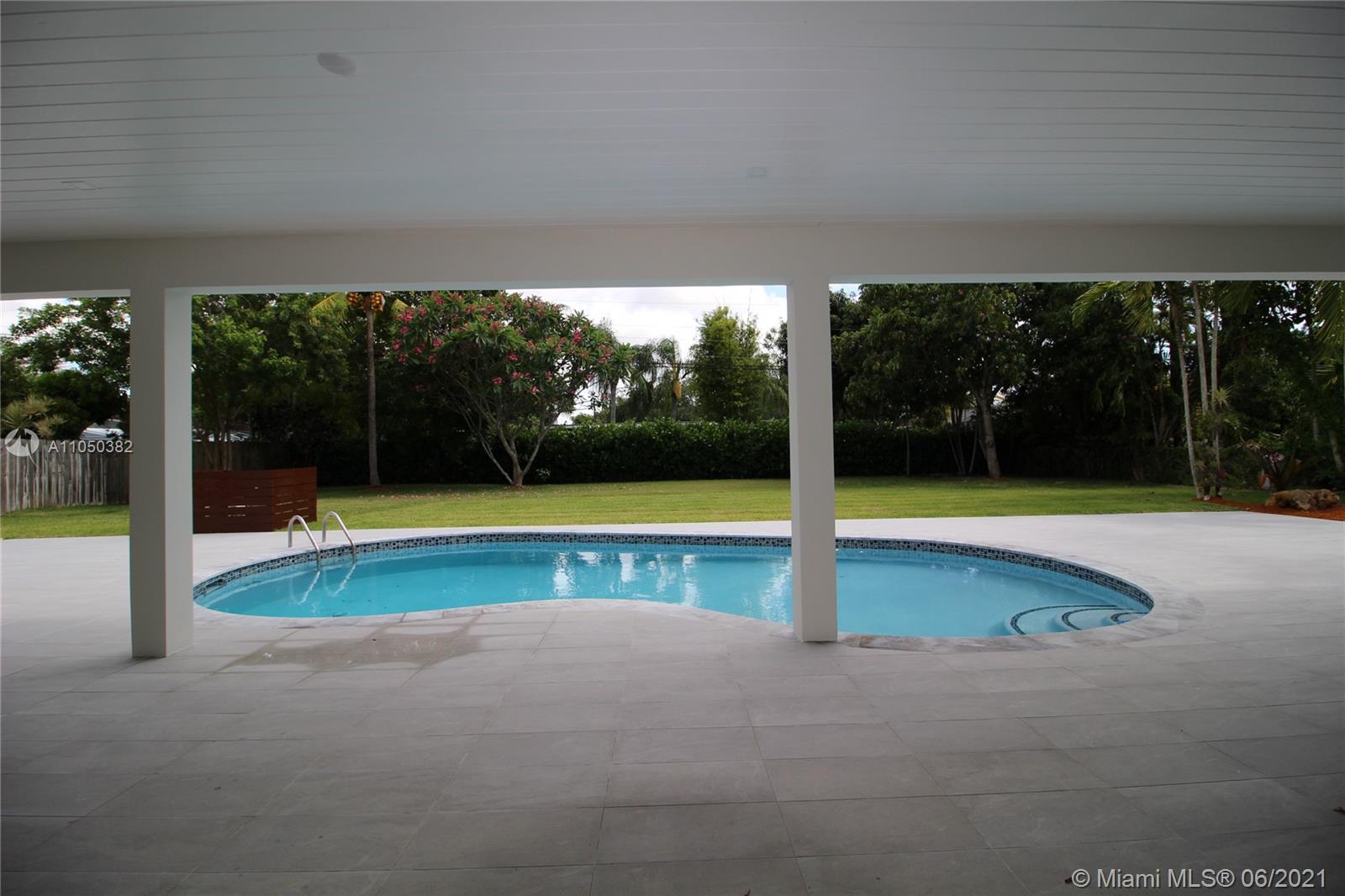Beautiful, completely remodeled 4BR-3Bth Pinecrest Pool Home on large fenced lot. Home has 2239 s/f under a/c living area. Split Bedroom Floor plan, Large master suite with very large walk in closet and beautiful master bath. Modern open concept living area overlooking a beautiful pool and covered terrace. All plumbing has been updated, no more cast iron issues, work done with permits. Impact doors and windows, New A/C unit, New porcelain tile floors, New electrical panel, recessed LED lighting, New modern kitchen with quartz Calakata Novus waterfall tops, top of the line stainless steal appliances, New bathrooms with top of line fixtures, laundry room and lots more. Owners are waiting on final permit approval from the city of Pinecrest which should be finalized any moment.