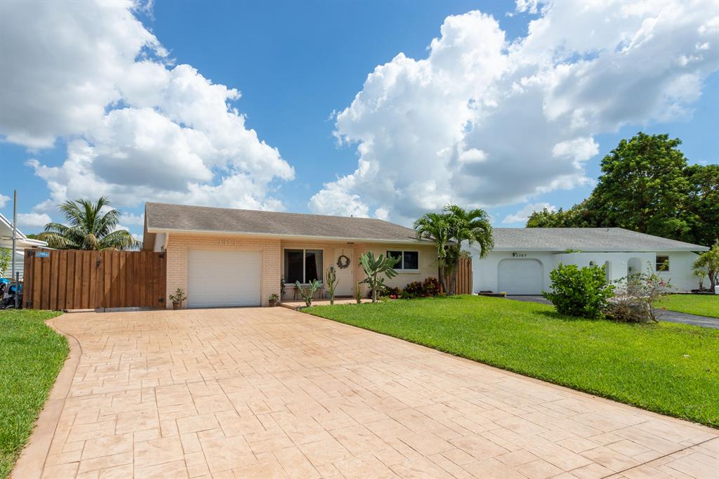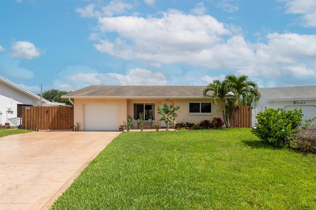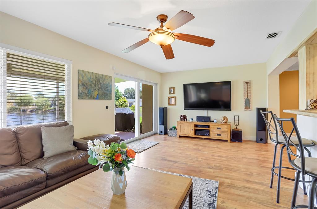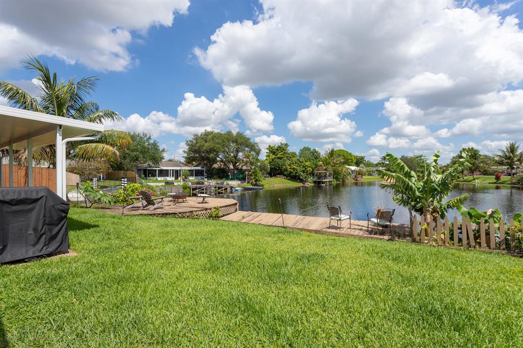 3 bedroom/ 2 bath home on the water and on a cul-de-sac. Spectacular big water view. No HOA. This home has every update you could want. Updated kitchen with granite, SS appliances and big wrap around eat-in-kitchen bar. FULL IMPACT WINDOWS. Hurricane Garage door. Large stamped concrete driveway. bathrooms with granite, modern shower doors and lighting. Beautiful Flooring. Crown molding, Dimmable high-hat lighting. Upgraded electrical with meter main combo and buried FPL line which is extremely convenient during storms. 1 y/o AC. 9 y/o roof. ADT alarm system, ring doorbell. Backyard is fully fenced to the deck perfect for pets. Sprinklers that feeds off the lake to save money on your water bill. Too many upgrades to list. Come see it before it's gone. Electric fireplace does not convey