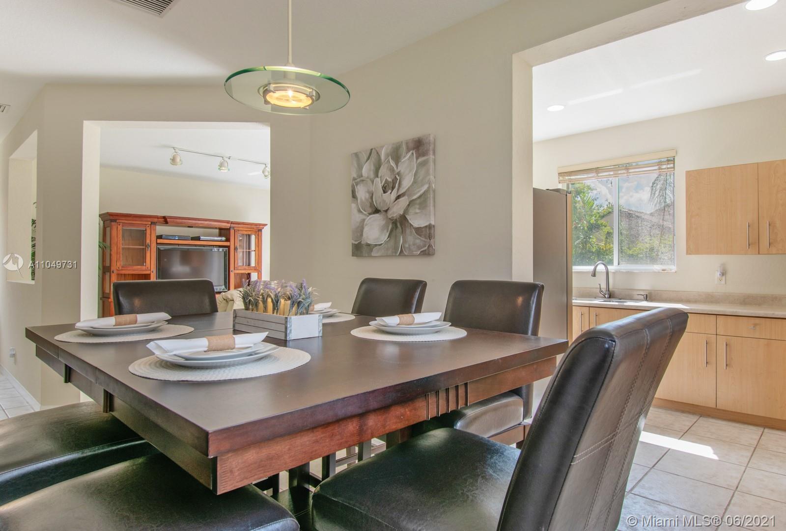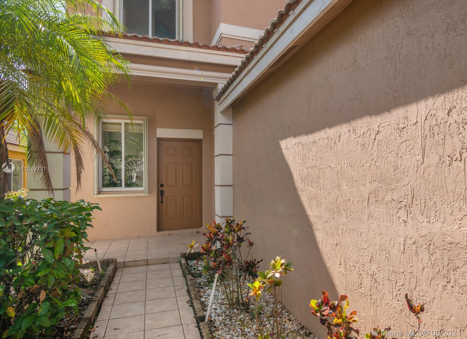 Welcoming and well maintained, 2-story home and features 3 ample bedrooms, 2.5 bathrooms, and a 2-car garage on a generous lot. Imagine living surrounded by this abundant natural light. The home interior is complete with ceramic tiles on 1st floor & carpet on 2nd floor. Accordion shutters & impact doors. New LG Suite S/S appliances make the house practical and beautiful. Amazing recreational facilities in the community: lap pool, resort pool, waterslide, kiddy & baby pools, miniature golf, multi-purpose field, roller hockey ring basketball court will certainly keep your family healthy and entertained. Weston’s A+ rated schools are recognized state-wide. Commercial plaza just north of this guard-gated community is a convenient destination for your daily needs. Come and see it for yourself.
