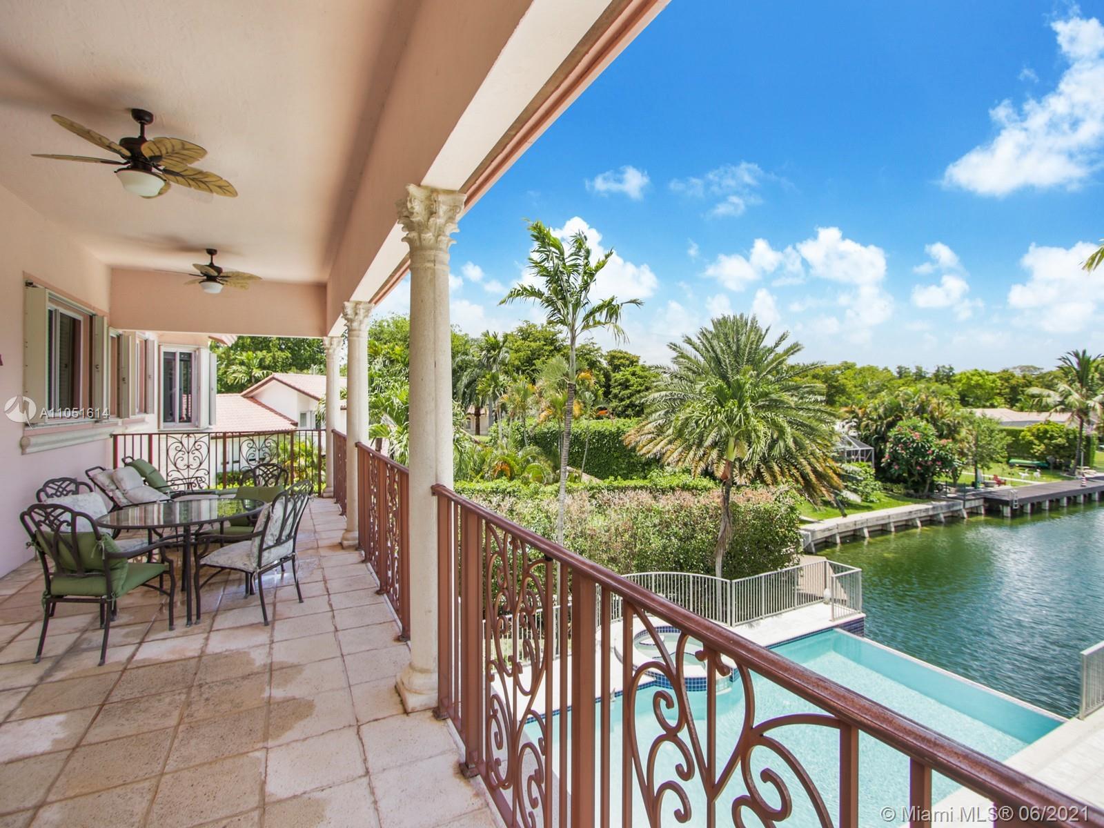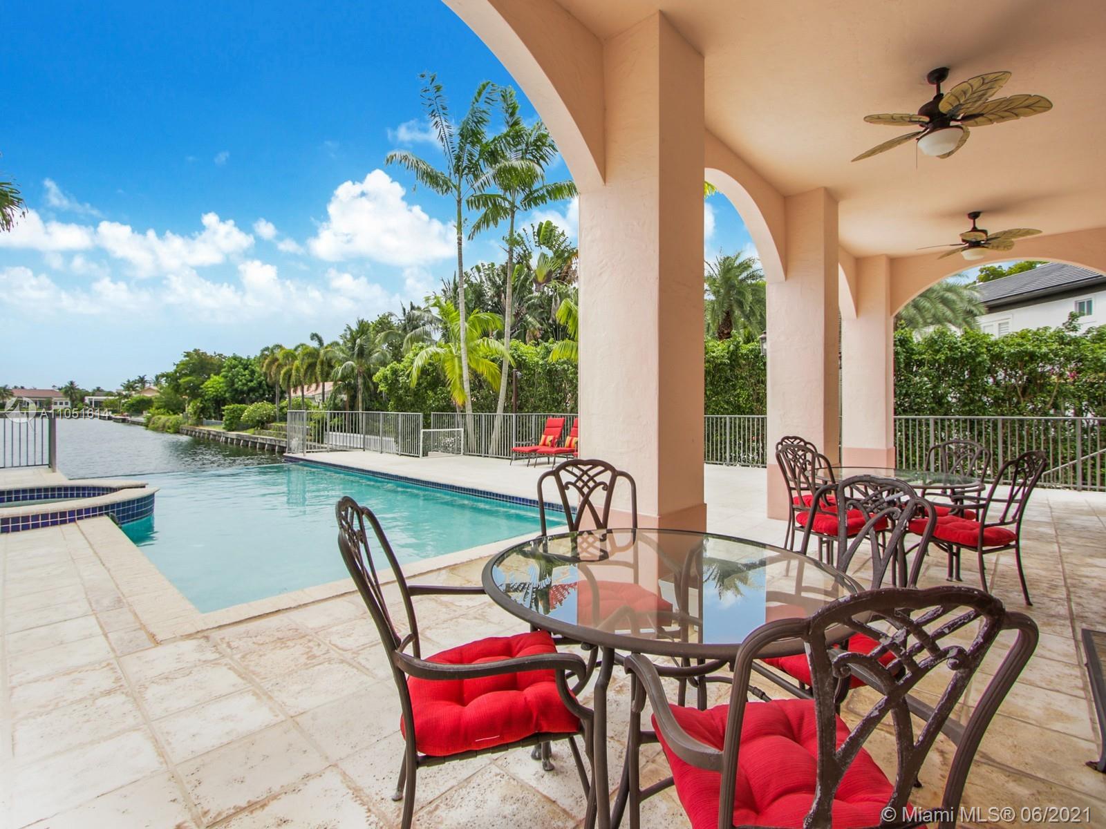 One of only a few end lot homes in Gables by the Sea, this grand 4,407 SF home sits at the end of the waterway with lush landscaping for the ultimate in waterfront privacy. At 12,500 SF, the lot is open and sunny, with water views in the backyard, a beautiful infinity edge pool, and large covered terraces both upstairs and downstairs for outdoor entertaining. Inside, the spacious home boasts 12 foot ceilings, a large eat in kitchen that connects to the family room, formal living and dining rooms, and a separate game room. Each of the home’s 5 bedrooms has its own en-suite bath, and an upstairs laundry room & kitchenette provide the ultimate in convenience. Gorgeous 2 story Mediterranean style home built in 2002 offers great frontage on Red Road w/quick access in & out of the neighborhood.