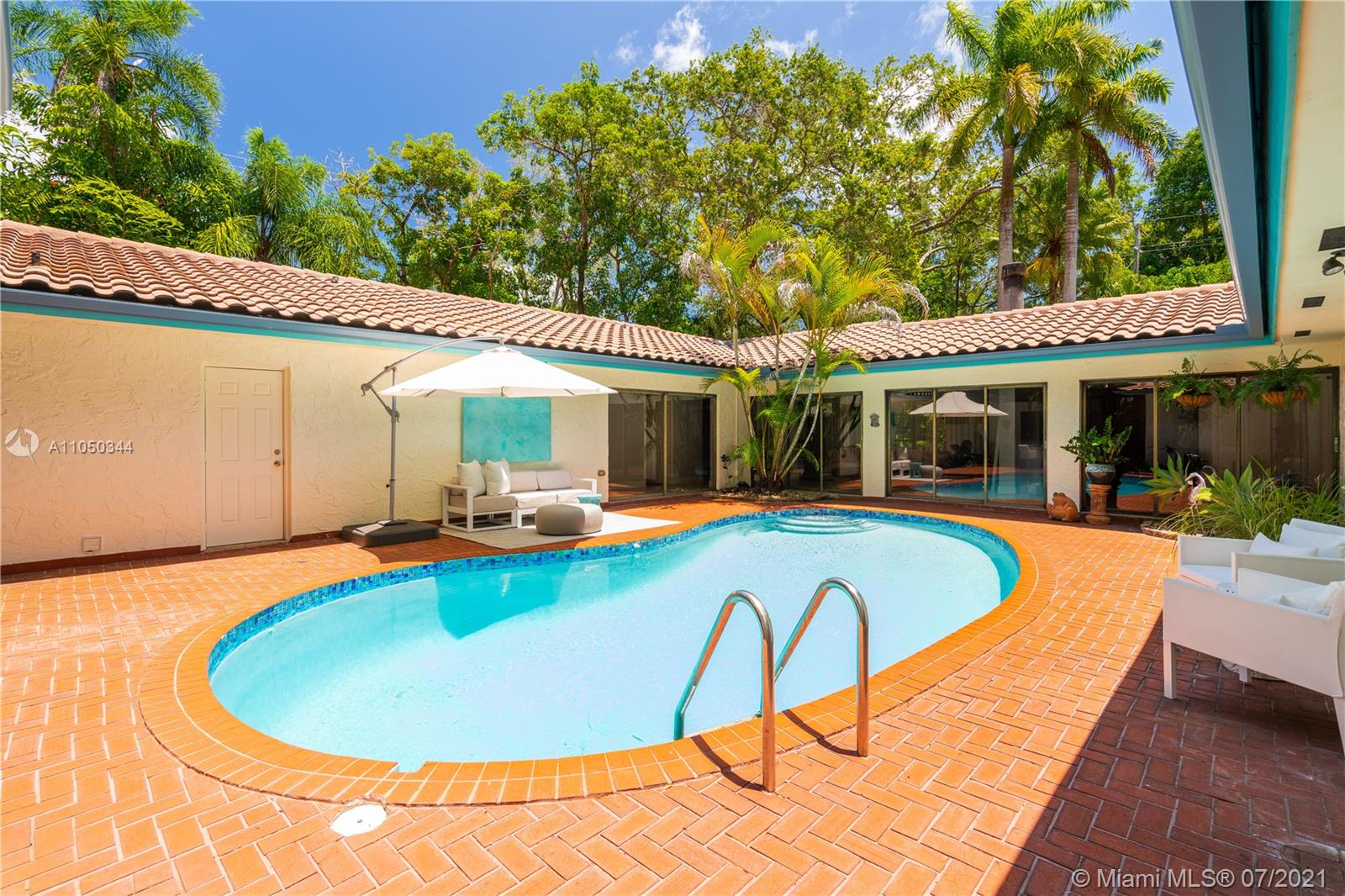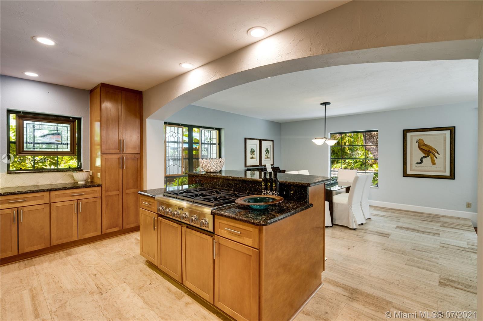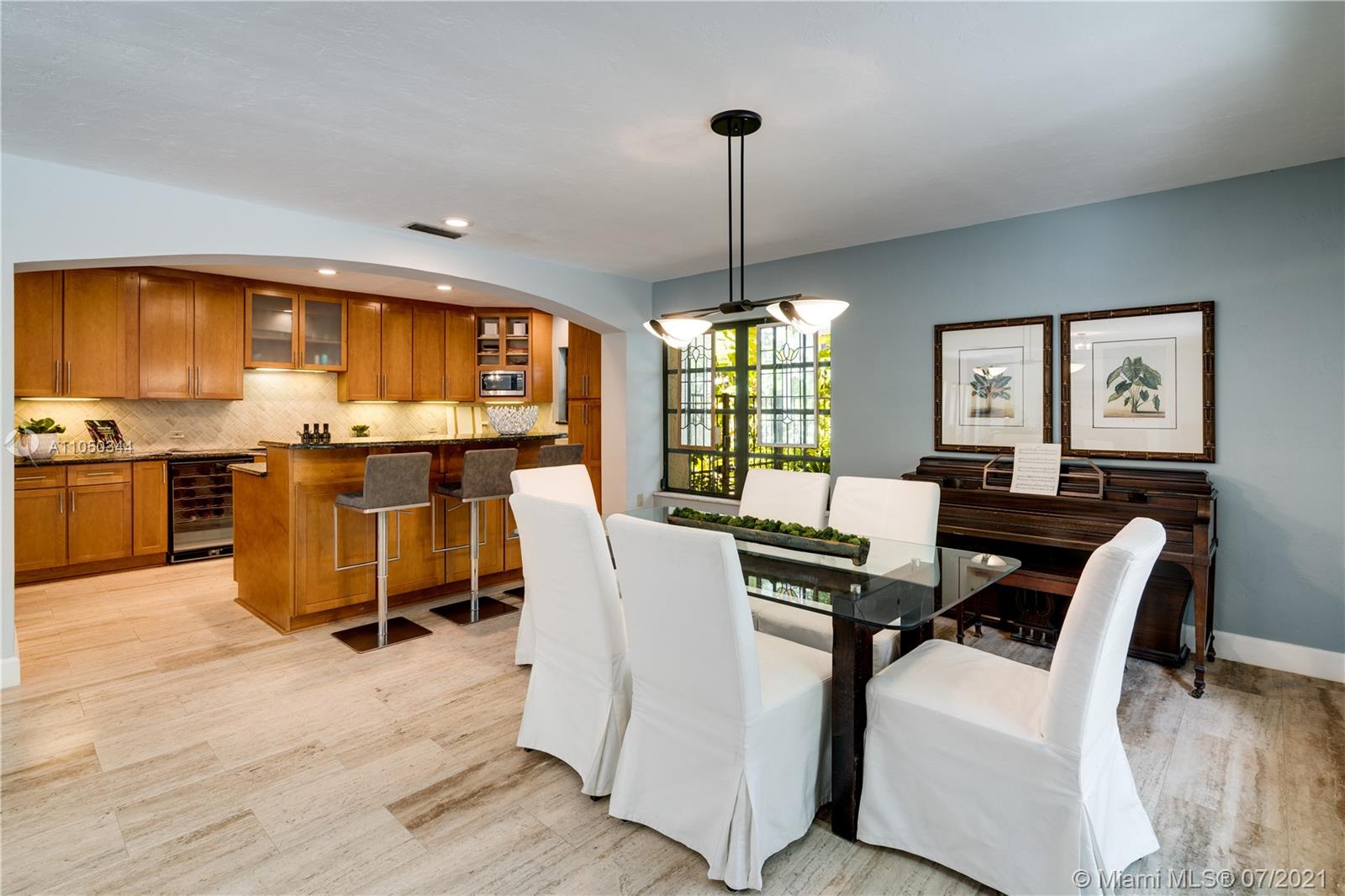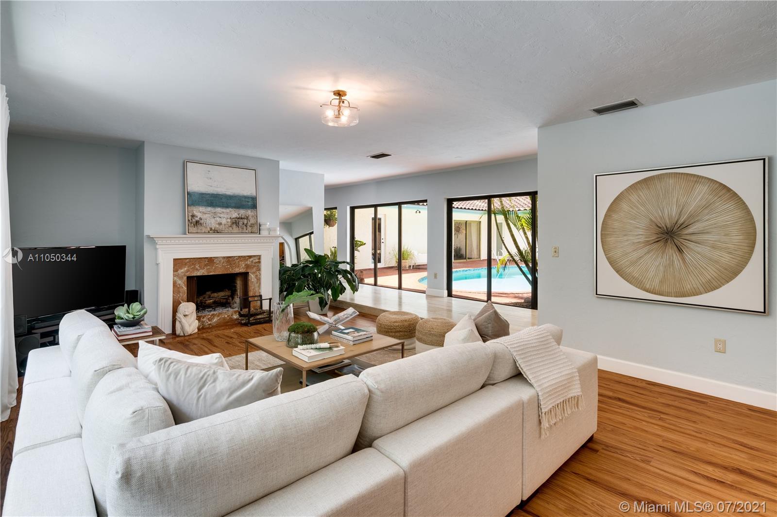 This highly sought-after Coconut Grove address is the location of this beautiful 5-bedroom home with more versatility than can be imagined. It provides a near perfect balance of living and working spaces. All the bedrooms are oversized with generous closets. The main suite has both a lavish, remodeled bath as well as a bonus room which can serve as a gym, studio or office. The elegant living room with its classic fireplace adjoins a remodeled kitchen and dining area that is the heart of the home. A generous in-law suite, office and family room provides additional room for everyone to live, work and play. The ideal U-shape floorplan provides a view of the sparkling pool from almost every room in the house. Located in Flood Zone X, no flood insurance is required. A Very Special Home.