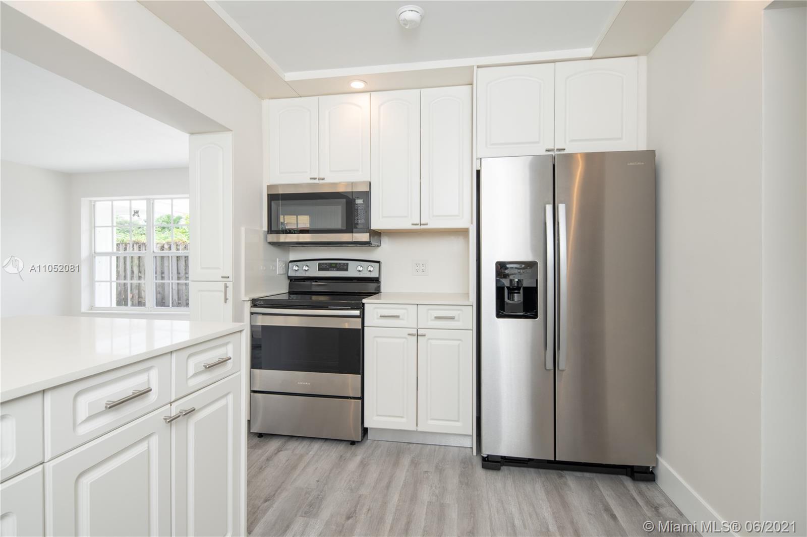 Enjoy this bright, modern, move-in ready 3Bed/1Bath home, featuring open floor kitchen with new stainless steel appliances, new white quartz countertops, a bar area and a waterfall edges. This home has 2 living rooms, separate laundry room, tankless water heater, beautiful new flooring throughout the house. Brand new Central AC, impact windows, brand new roof with a warranty and a recent full house termite tenting will give you peace of mind and a stress free living. This house is fully fences in, has tasteful landscaping in the front and back yards, BBQ pad, covered patio, place to park a boat. A unique future of the house is a separate 1,5 car detached garage, which can be used as storage, separate bedroom or an office. Please come see this beauty.