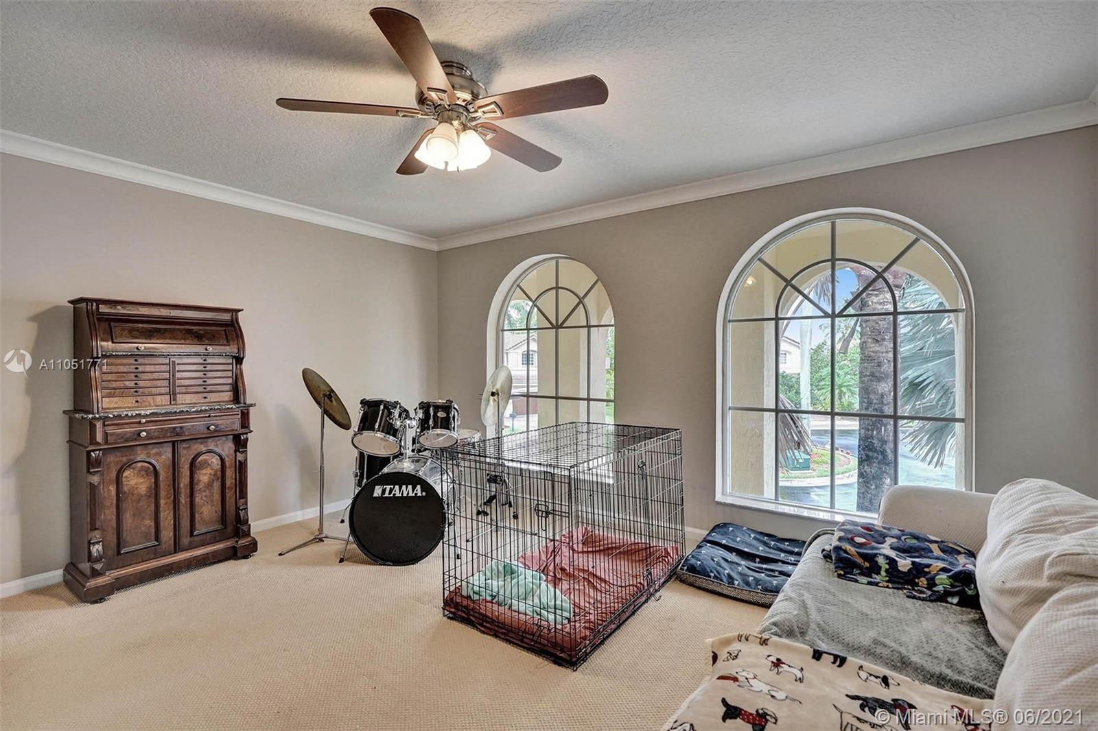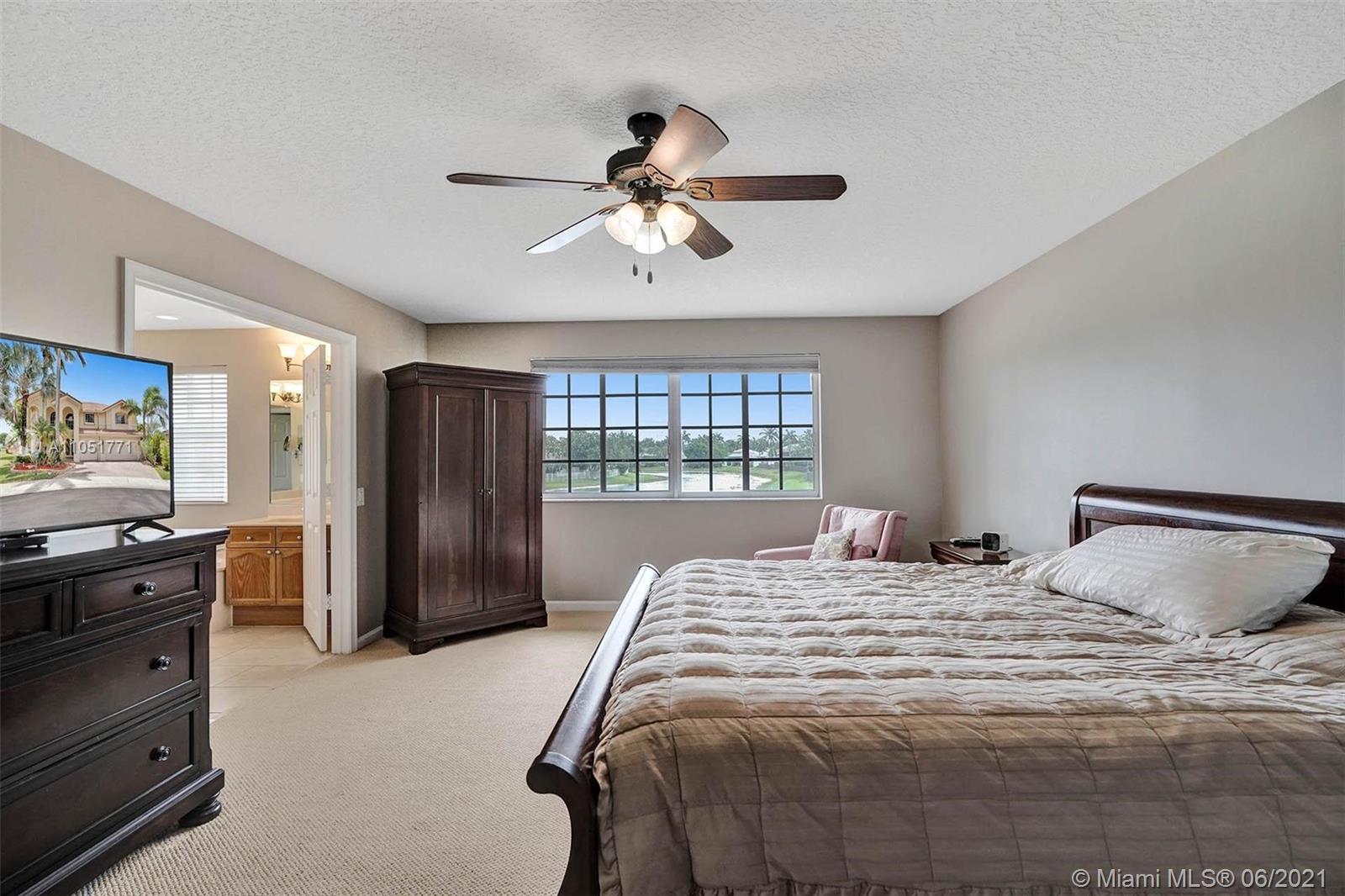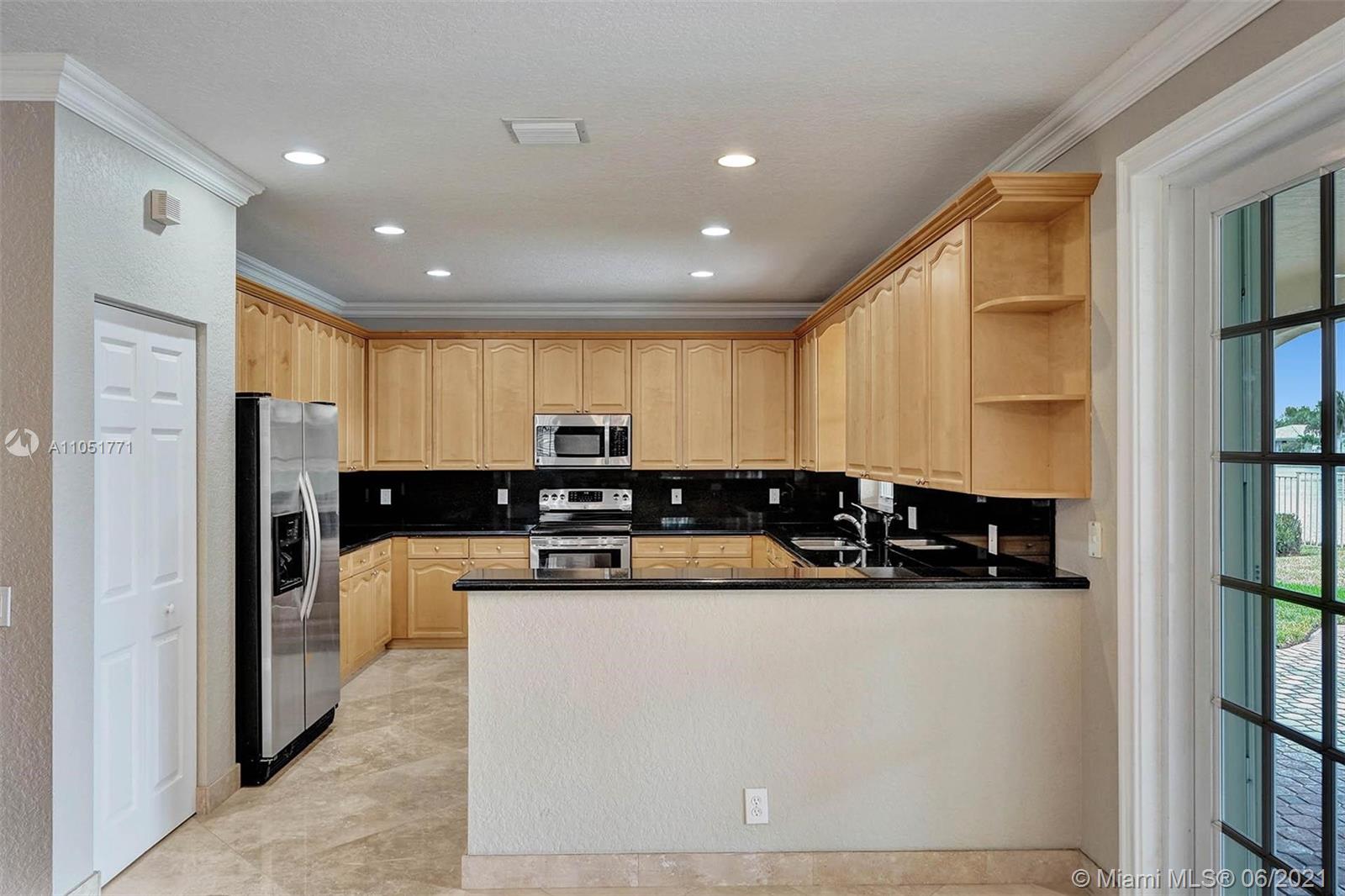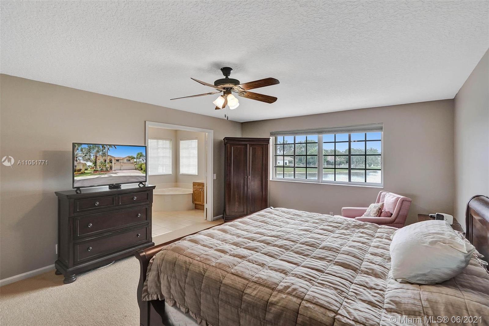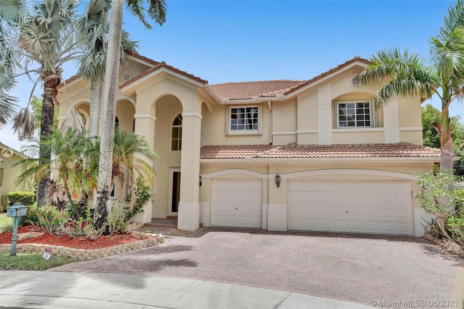 Looking for an expansive 15,000+ cul de sac lot with endless lake views, Popular two-story home with five spacious bedrooms plus an office and playroom with five full baths. Meticulously maintained with marble floors throughout living areas. Addition of full bedroom, playroom, and cabana bath. Wood kitchen cabinets with Stainless Steel appliances and granite countertops. French doors to the private pool and paver patio, fully fenced. Additional den/office attached to the owner's bedroom. Neutral decor throughout with fresh paint. One of the largest lots in Hunters Pointe. Partial impact and accordion protection.