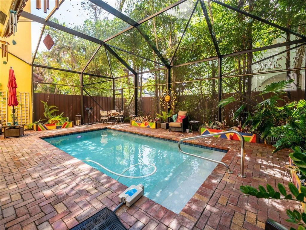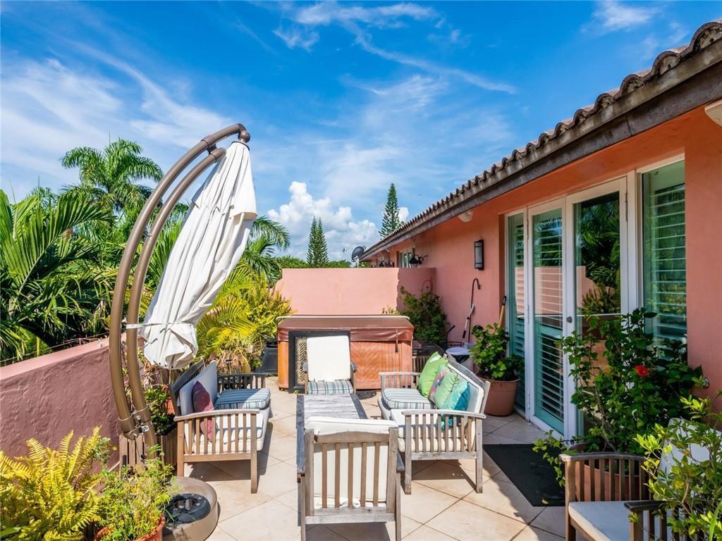 This spacious 3 bedroom 3.5 bath townhome located in the heart of Fort Lauderdale boasts an oversized 3 story open feel of a single family home with a private fenced & screened in heated salt pool. The 1st floor features an open kitchen with a custom bar overlooking living & dining room. Powder room & 2 car garage. French doors & windows for lots of natural light. All bedrooms with walk in closets are on the 2nd floor. An elevator brings you from 1st floor to 2nd. 3rd floor family room with a full bath easily converts into a 4th bedroom. Large roof top terrace with jacuzzi where you can enjoy the beautiful skylight city views of downtown. Full house diesel generator. Security cameras. Selling furnished. Close to beaches, Las Olas, restaurants & Ft Lauderdale Int'l Airport. Won't last!!