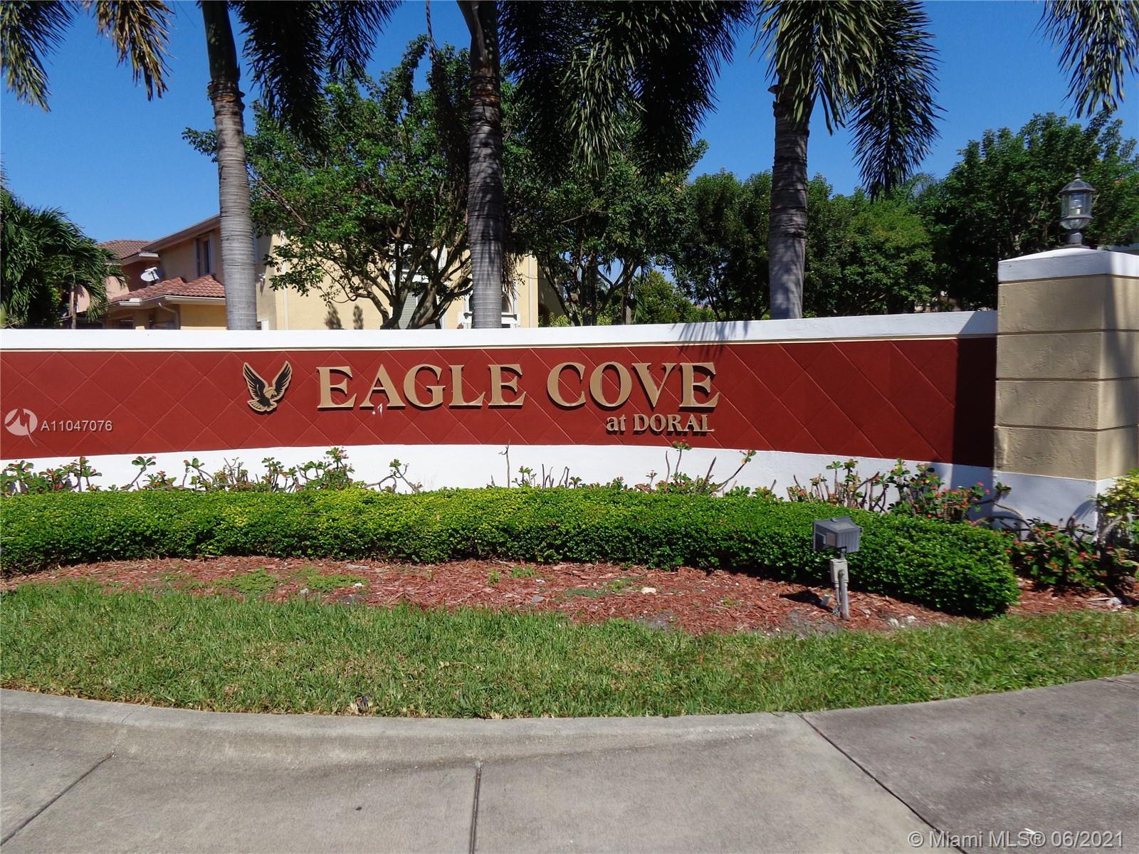 Rarely Available, Recently Remodeled and in the heart of the City of Good Living, Doral ... this delightful EAGLE COVE Townhouse is naturally bathed in sunlight and ready to welcome its new residents. Two story with two (2) bedrooms and two (2) full baths upstairs (half bath on first floor). Garage and a nice size patio. Location! Location! Close to major highways, Palmetto and the Turnpike. Superb dinning and entertainment. Shopping centers nearby. Excellent A+ schools. Lake steps from your front door for walks and relaxation. Low HOA fee. Pool and play area for children. Your new home awaits. Call Listing Agent Elena Lauter.