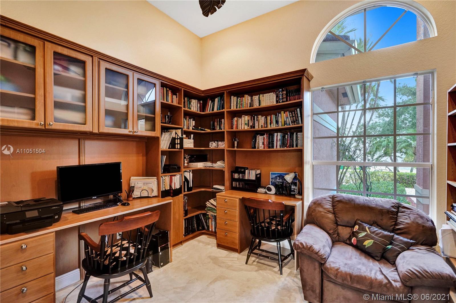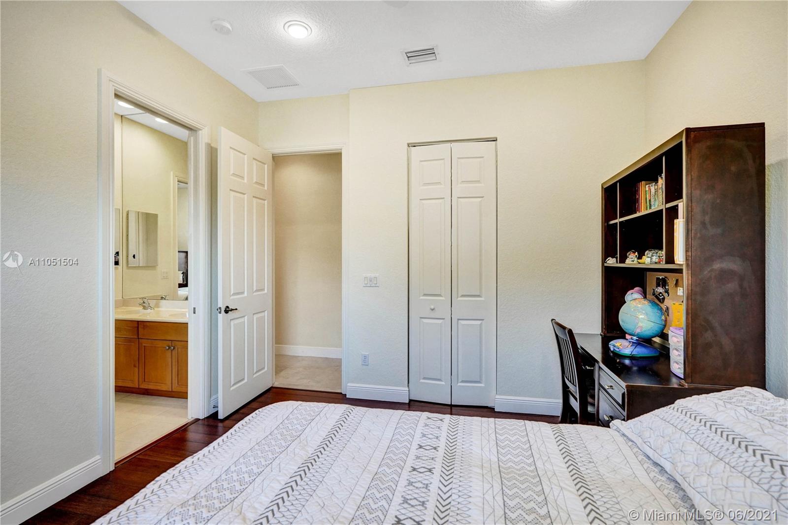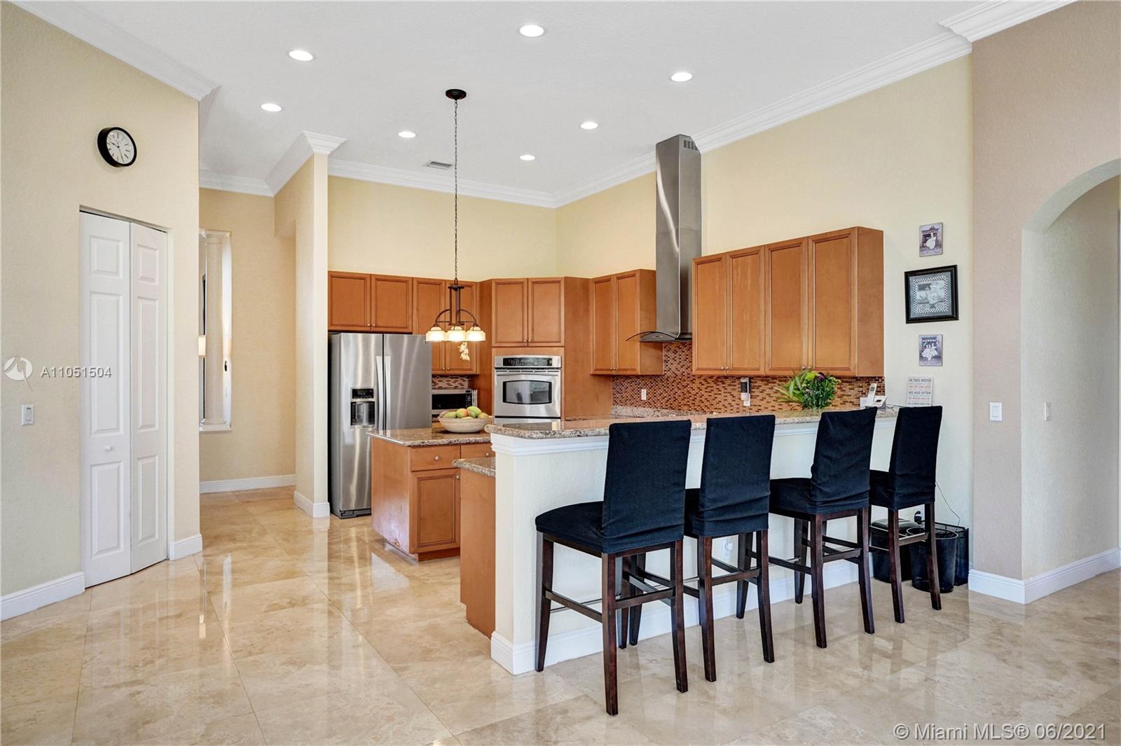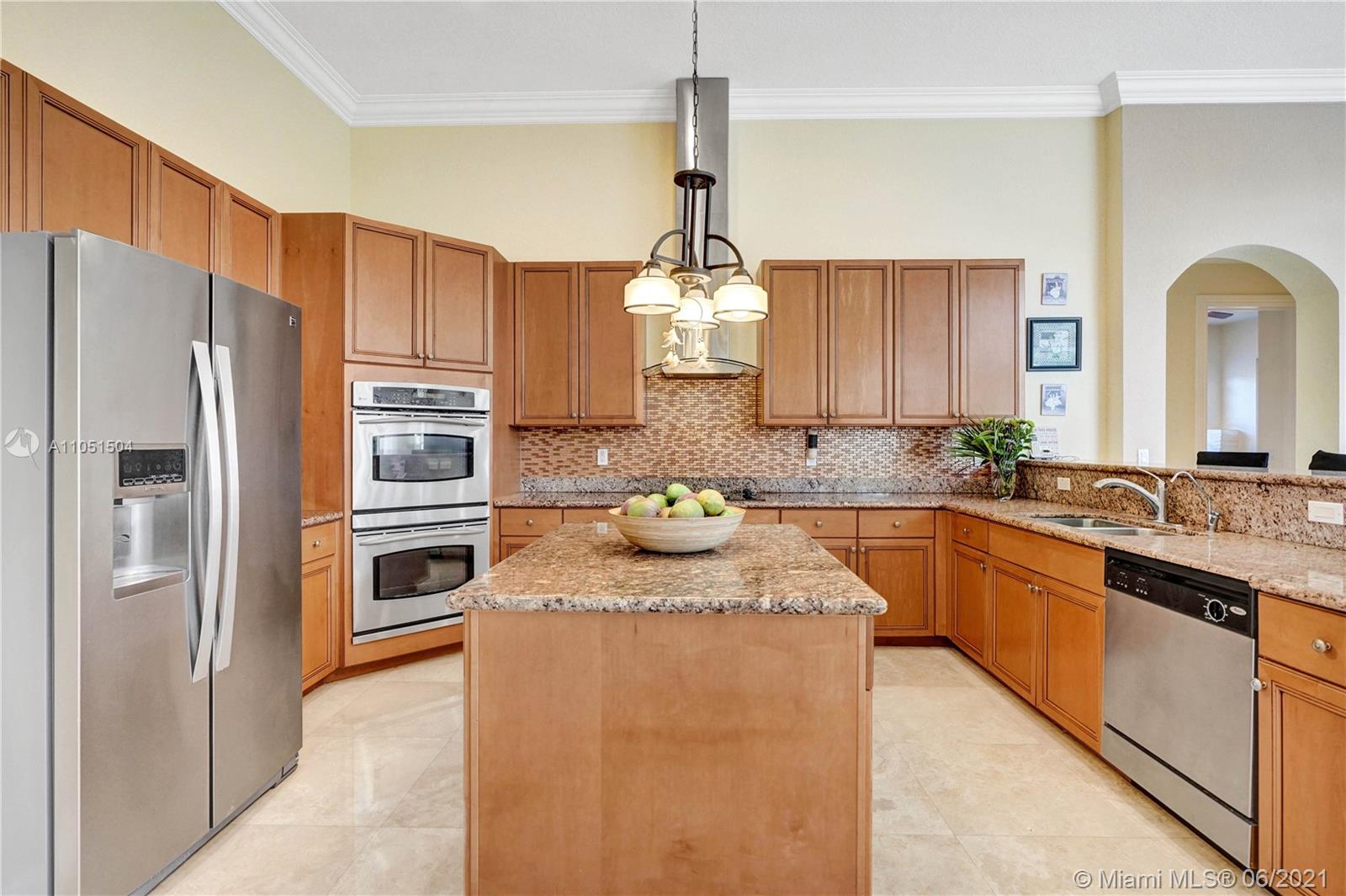 Rarely on the market this Caliterra/92 ranch model offers 5 bedrooms, 3 1/2 baths, 1 office and 3 car garage. The lushly landscaped exteriors and the free shaped pool create a perfect serene atmosphere for the new owners. Very elegantly designed home with an alluring split floor plan great for entertaining, kitchen with center island and granite countertops. This home features marble floors, newly installed bamboo floors in all bedrooms, custom made cabinetry. All windows have hurricane shutters. Stunning house, very light and bright from all rooms, quality appointed, with multiple walk-in closets. Great amenities (club house with gym, tennis courts, basketball courts, jogging trails), lush landscaping and tree lined streets will truly make your living an awe inspiring one!