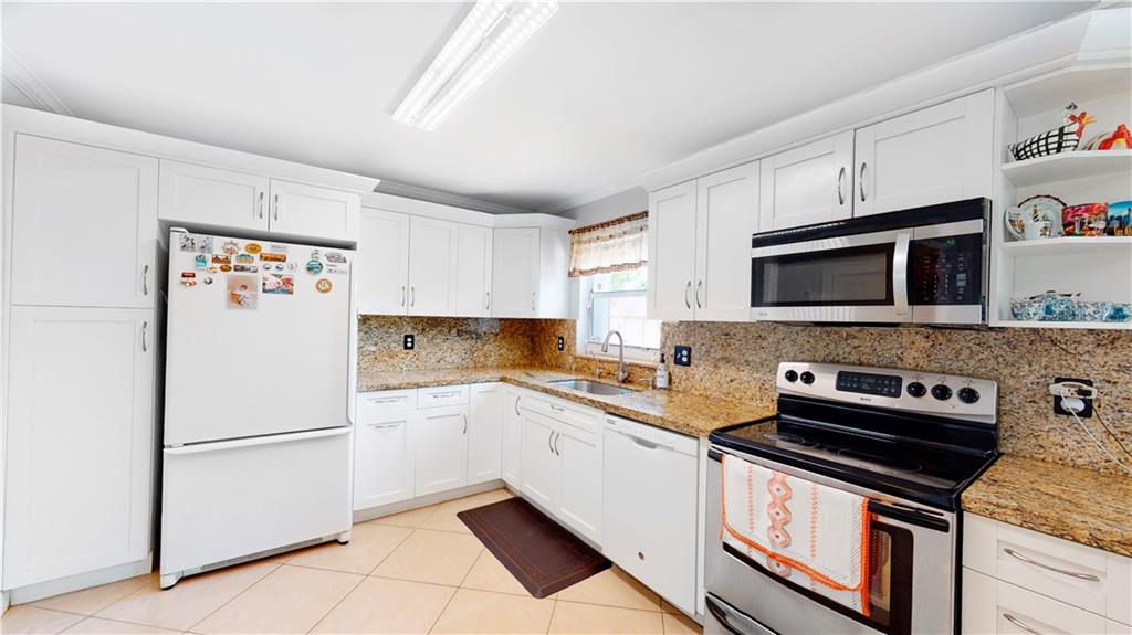 Renovated 2 Bedroom 2 Bath with Large Workshop/Storage shed in fenced backyard. Tile Floors throughout the home. Beautiful White Wood Cabinets in Kitchen with Granite countertops. Washer and Dryer. New Water Heater, AC fairly New. Gated side yard gives access to backyard with plenty of storage for Boat, Trailers and/or other toys. A great East location with easy access to Federal Highway and I95. Move in Ready. Hurry this one won't last long!