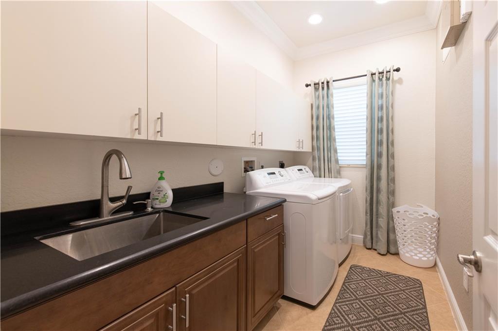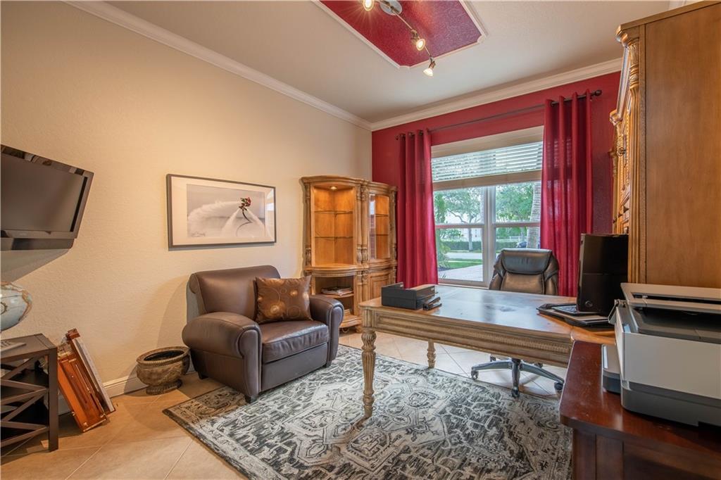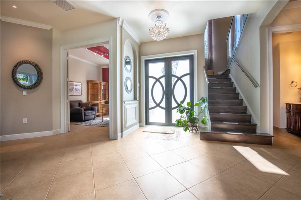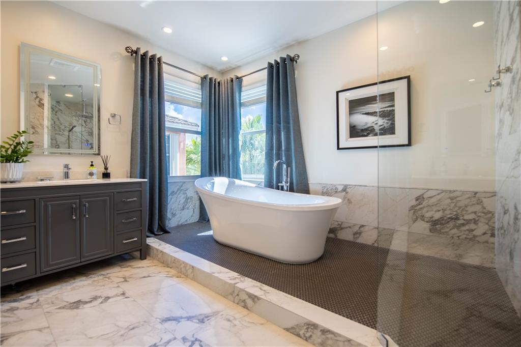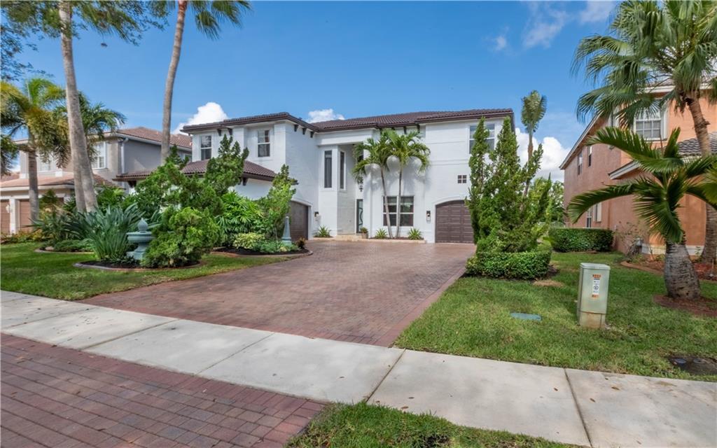 Stunning remodeled estate with modern flair. This beautiful home features 5 bed/4.5 bath/office. Third garage has been converted into another office, downstairs in-law suite, plus two offices. Freshly painted inside and outside. All bathrooms have been completely remodeled, gourmet kitchen with S.S. appliances and granite countertops. This home includes hurricane impact windows/doors, new A/C units, new water heater, glass staircase and wood floors on the second floor. Amazing backyard with travertine floors, establish tropical landscaping and gorgeous exterior lighting overlooking the tranquil water views and preserve.