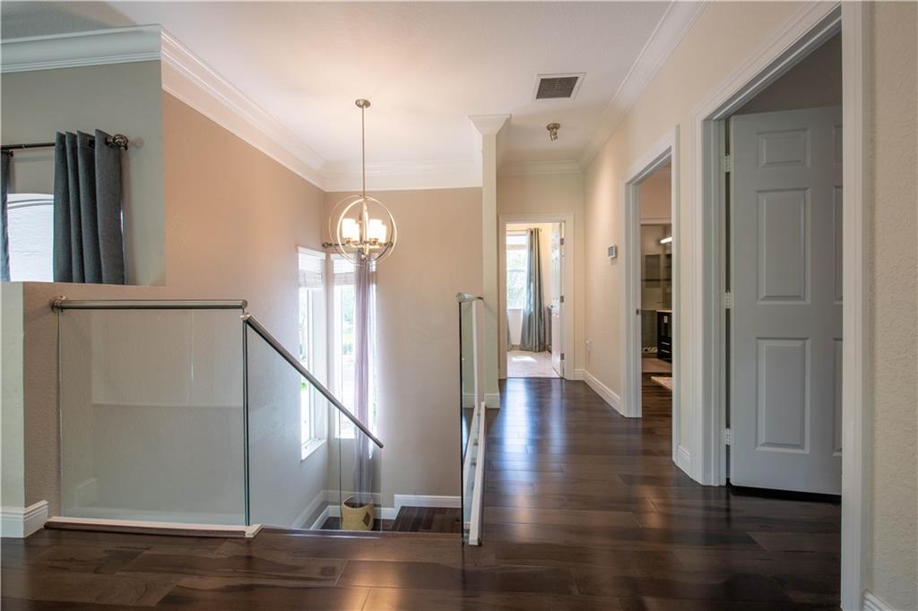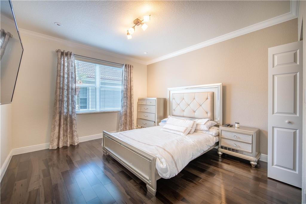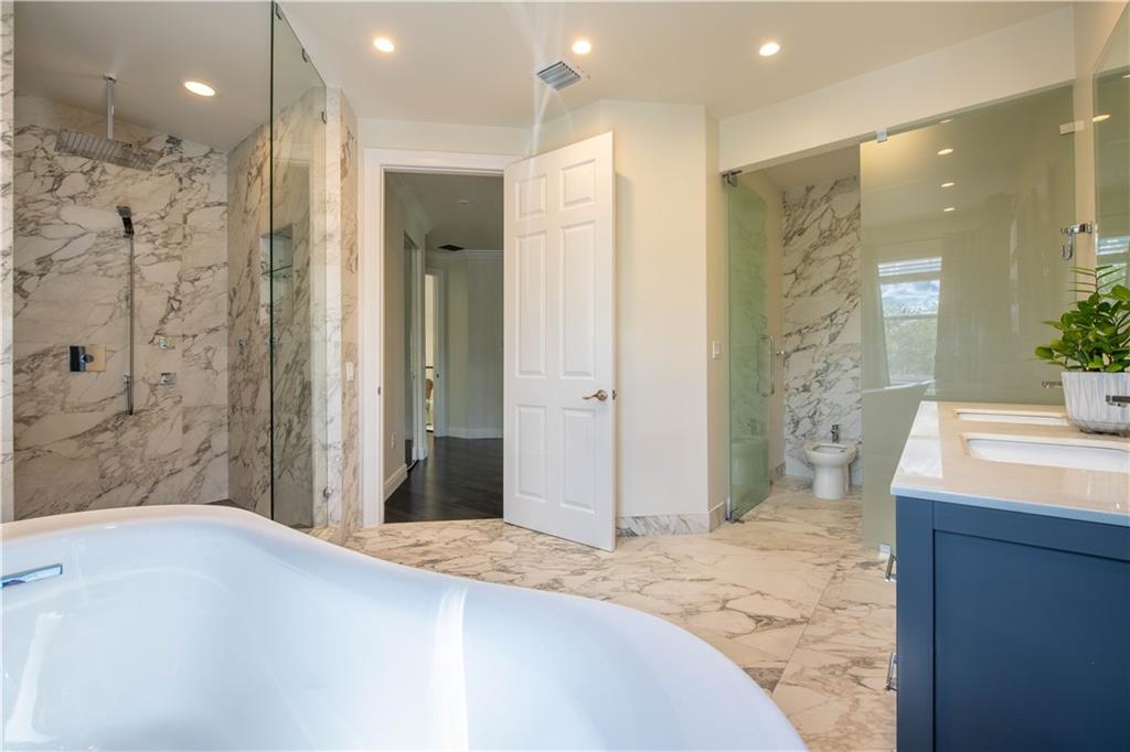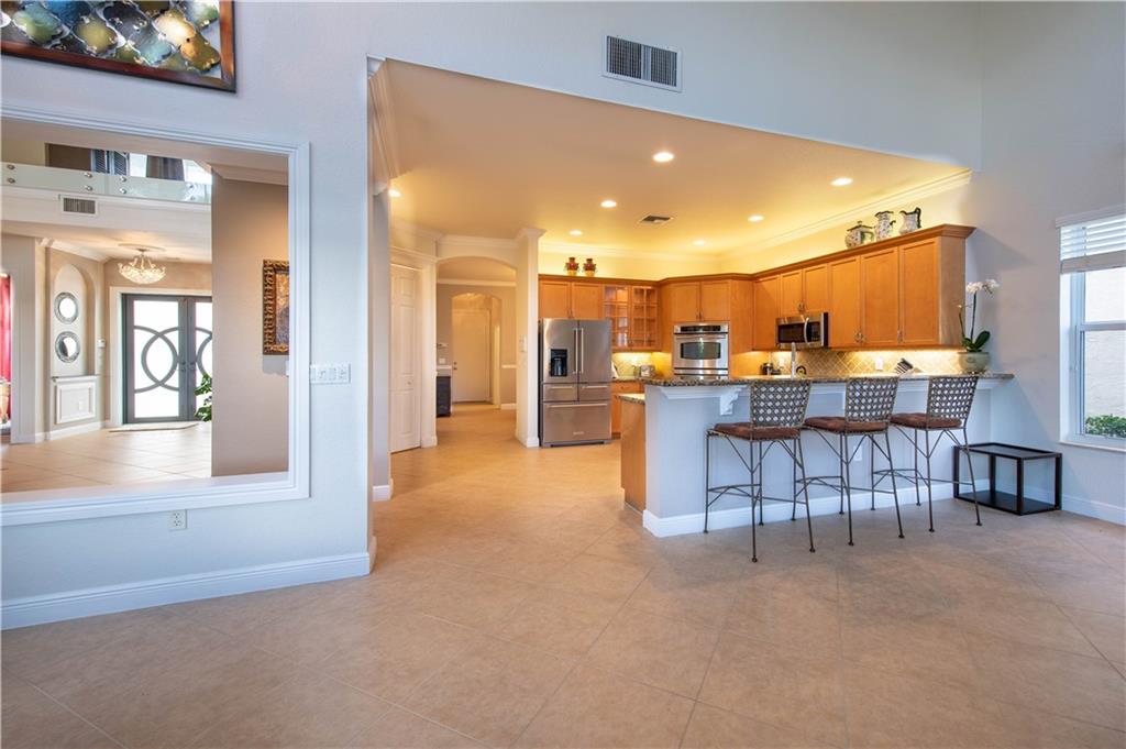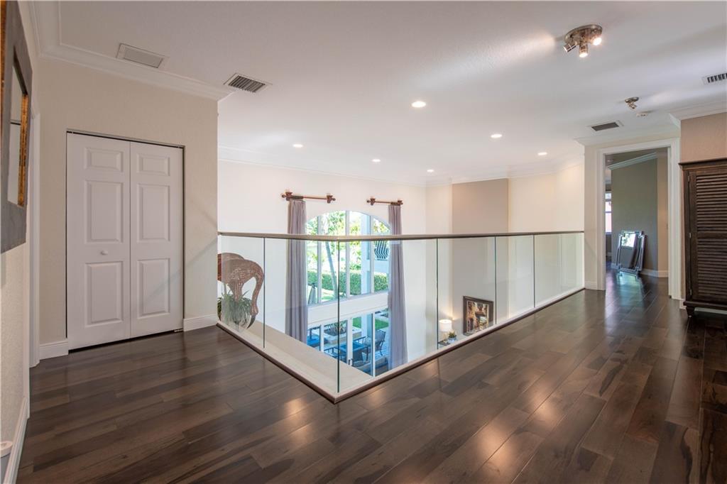 Stunning remodeled estate with modern flair. This beautiful home features 5 bed/4.5 bath/office. Third garage has been converted into another office, downstairs in-law suite, plus two offices. Freshly painted inside and outside. All bathrooms have been completely remodeled, gourmet kitchen with S.S. appliances and granite countertops. This home includes hurricane impact windows/doors, new A/C units, new water heater, glass staircase and wood floors on the second floor. Amazing backyard with travertine floors, establish tropical landscaping and gorgeous exterior lighting overlooking the tranquil water views and preserve.