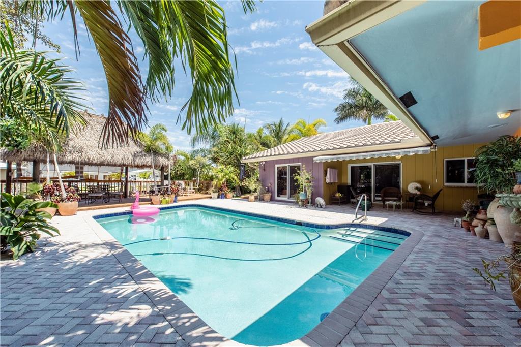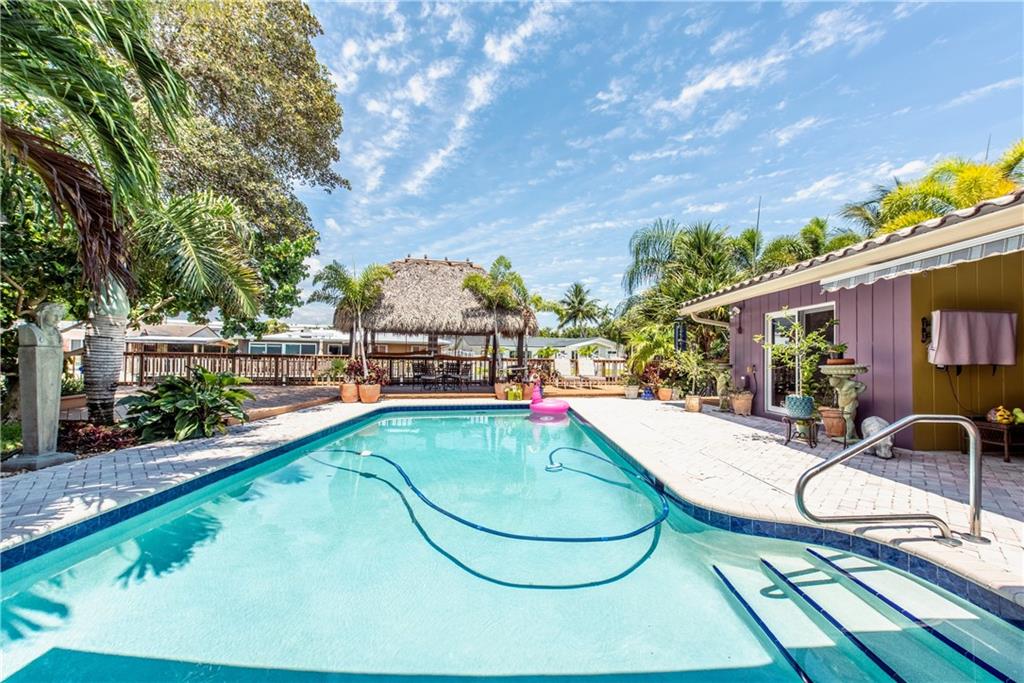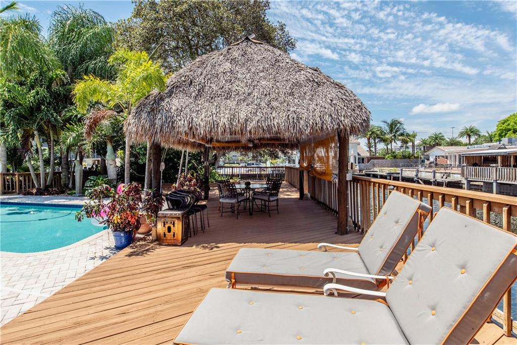 Simply Spectacular, Newly renovated Contemporary style 4 bed 3 bath waterfront pool home, Point lot with 250 ft of waterfront, 55 ft dock w/ electric & water. This home located in The Landings built at the end of a cul-de-sac , ultimate privacy. Interior features, 2 master suites w/ 1 Master suite just under 1,000 sq ft.,split bed floor plan, marble floors in living area, hard wood floors in bedrooms. Media room, laundry rm & a storage room. Exterior features mature lush landscape w/ fenced yard, expansive decking w/ Tiki Hut, sound & lighting perfect for entertaining. New Gas Genrac generator w/ a 7 yr warranty runs entire home. Impact windows & doors, custom impact front door w/ decorative glass, new garage impact door, new level 2 charing station. Mins to Intracoastal, Boater's Dream