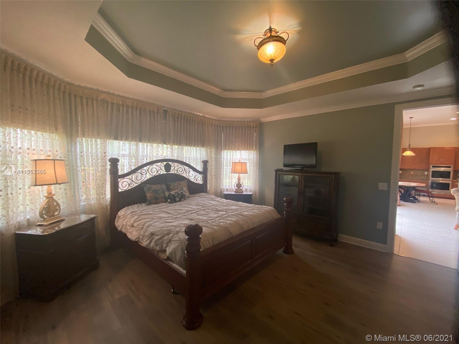 Well maintained single story home within the guard gated community of Sunset Lakes. Original owner, partial lake view w/ a 4/3 layout featuring a true split floor plan. 1 master suite is upon entry, additional 2 bedrooms & 1 bath to the west side of home & large main master suite is located in the rear of the home. Additional rooms include laundry room w/ 3-car garage access, closed den, formal dining, sitting/reading room that can be converted to an additional room & an open kitchen/family entertaining area. Rear master bedroom has 2 walk in closets & master bath that has separate shower/tub, private toilet, double sinks & powder desk. Garden view backyard perfect for entertaining/relaxing, accordion shutters. Community has Olympic size pool, clubhouse w/ gym, playground & tennis.
