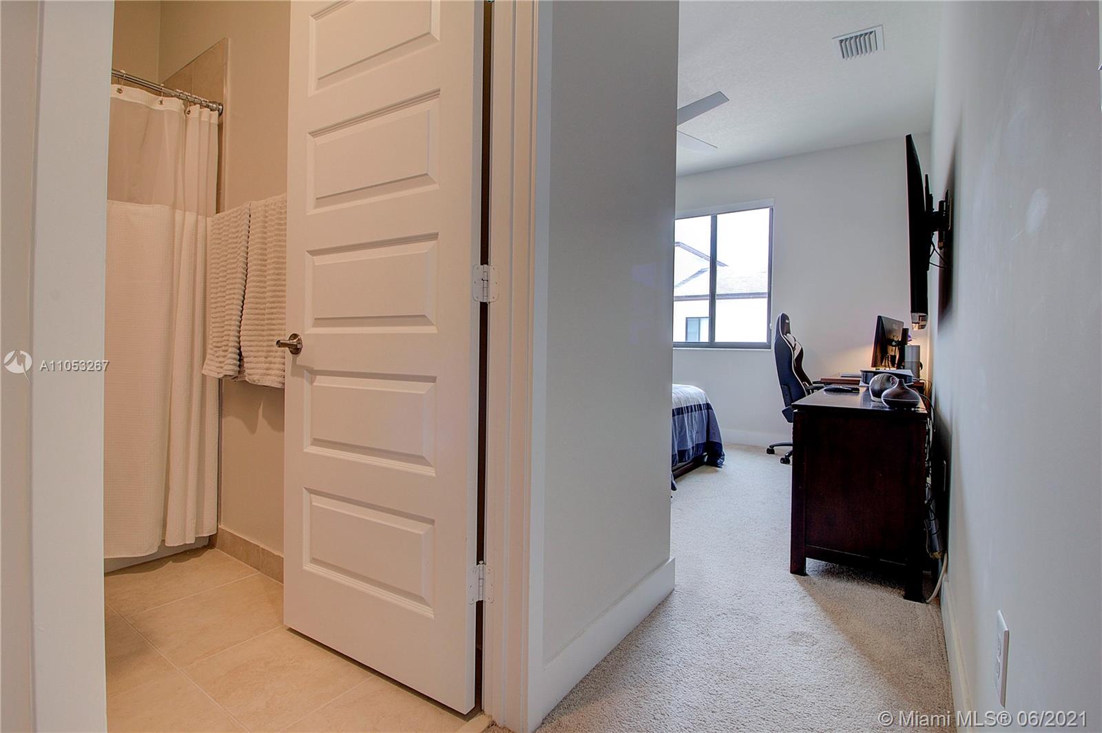 Luxurious 3 Br, 3 1/2 baths.Premium Corner lot 2 car garage in Downtown Doral , Smart home, Nest security system, Italian Porcelain (48"x24")-first floor, carpet 2nd floor, beautiful light fixtures, Ceiling fans in brms, Frosted glass impact front door, Stainless steel & wood stair railings, High end window treatments ( Bandalux) , Impact windows (PGT) Garage storage bins, Stainless steel appliances , Quartz countertops, Porcelanosa kitchen tile backsplash, Wall TV mounts included, 2nd floor loft, Laundry room, Large 2nd floor balcony, great street views, Home Warranty Included! Beautiful landscaping, Privacy fence, Covered porch, Walk to shopping/Restaurants, near City Place & expressways (Palmetto & Turnpike) A+ rated schools! Clubhouse/ Resort style Pool/Parks/Fitness center.