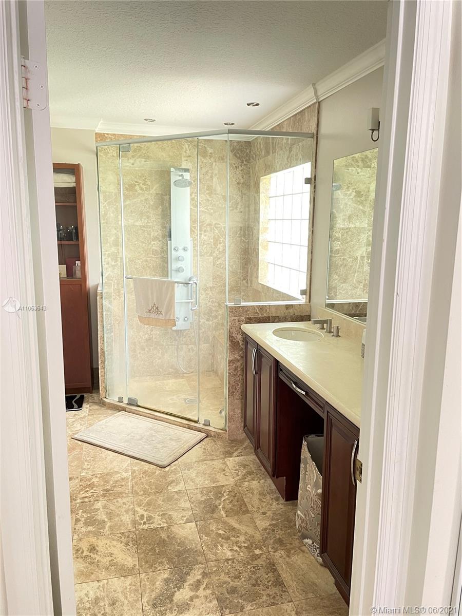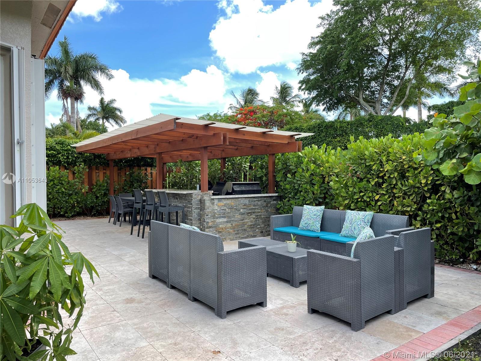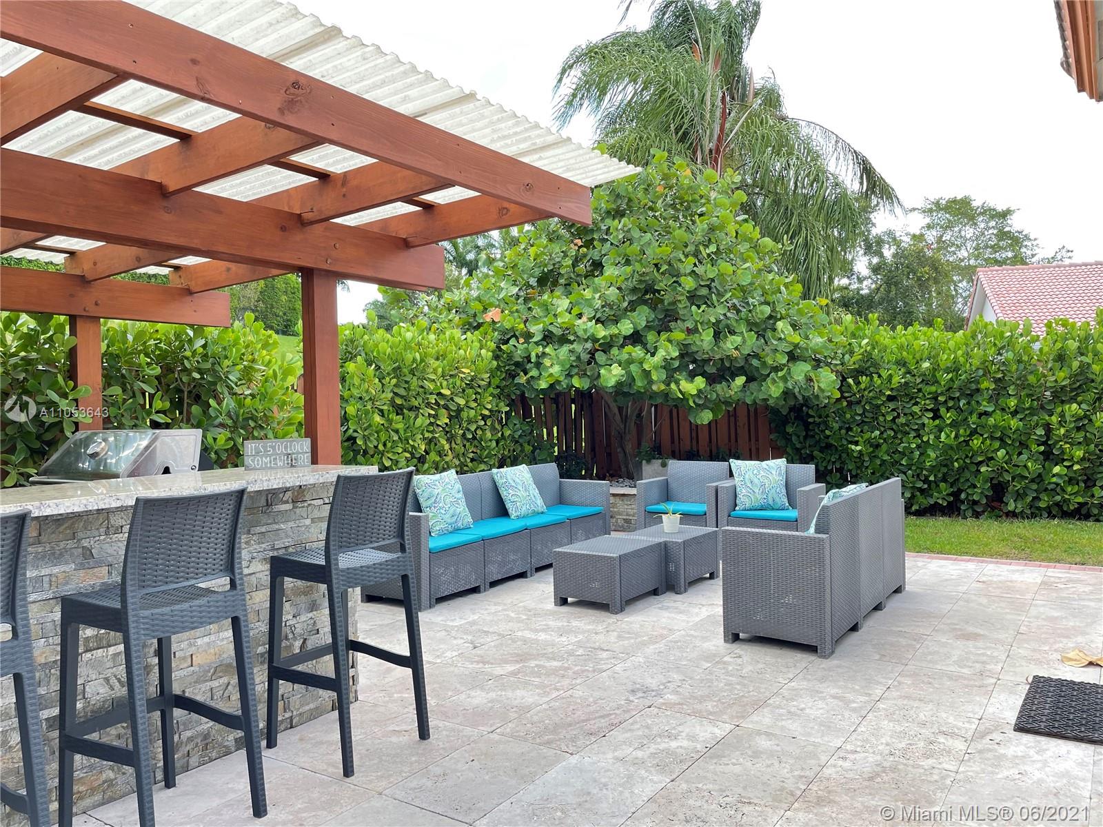 beautifully remodeled single story home in the exclusive Doral Isles, this home consists of 4 bedrooms 2.5 bathrooms porcelain floors, remodeled modern bathrooms, and a beautiful patio with a built in pergola and travertine floors. Dont miss out on this opportunity.