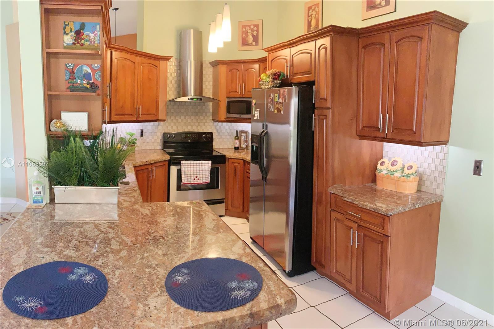 Pride of ownership at its finest. One story 3/2 gem with a two car garage in move in condition. Custom built kitchen with deep cabinets & pull out drawers. Brand new energy efficient A/C unit. split floor plan, large walk in closet, storm shutters. Beautiful covered patio with a butterfly/bird garden. Low HOA $80.00 per month . Prime location between Miami Lakes and PSN. Excellent school district and just minutes from I75 and palmetto expressway.