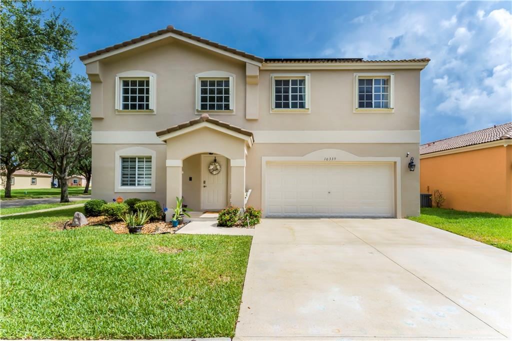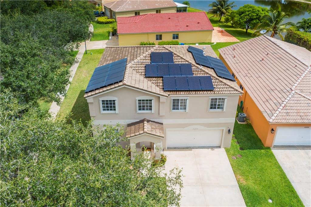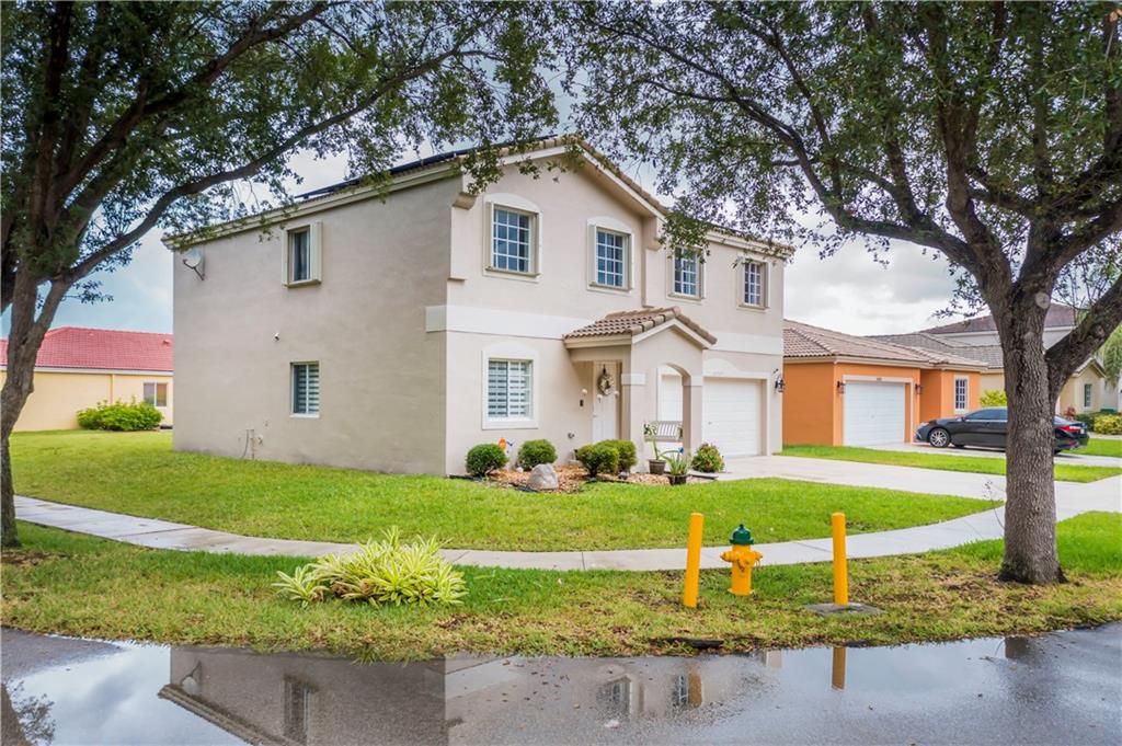 GORGEOUS 4 BDRM, 2 1/2 BATH CORNER HOME W/LAKE VIEW IN 24 HOUR MANNED GATE W/ PATROL IN QUIET COMMUNITY! ROOF INSTALLED 2019! KITCHEN FEATURES NEWER STAINLESS STEEL APPLIANCES, GRANITE COUNTERS, MOSAIC TILE BACKSPLASH, WOOD CABINETRY, SNACK BAR AND PANTRY! A/C & WATER HEATER LESS THAN 5 YEARS OLD. LARGE FAMILY ROOM & SEPARATE LAUNDRY ROOM! RELAX AFTER A LONG DAY IN YOUR HUGE MASTER BDRM W/SITTING AREA. BEAUTIFULLY REMODELED MASTER BATH W/NEW DUAL SINK VANITY & CUSTOM BUILT SHOWER WITH SPA-LIKE FAUCET. TILE FLOORS ON FIRST LEVEL & WOOD FLOORING UPSTAIRS. ACCORDION SHUTTERS ON 2ND LEVEL. FRESHLY PAINTED INTERIOR/EXTERIOR. OVERSIZED YARD WITH ROOM FOR A POOL! SAVE BIG ON FPL BILL WITH SOLAR PANELS. ACCESS TO 3 COMMUNITY POOLS! MINUTES TO TURNPIKE, I-75, SHOPPING, & RESTAURANTS!