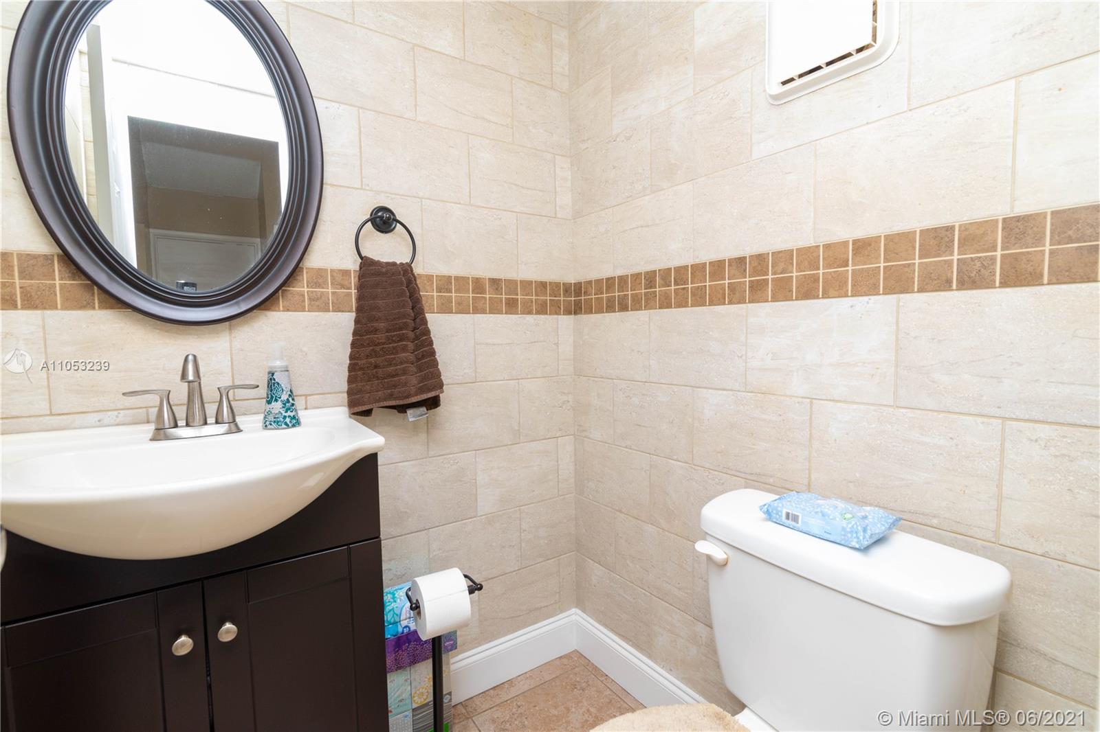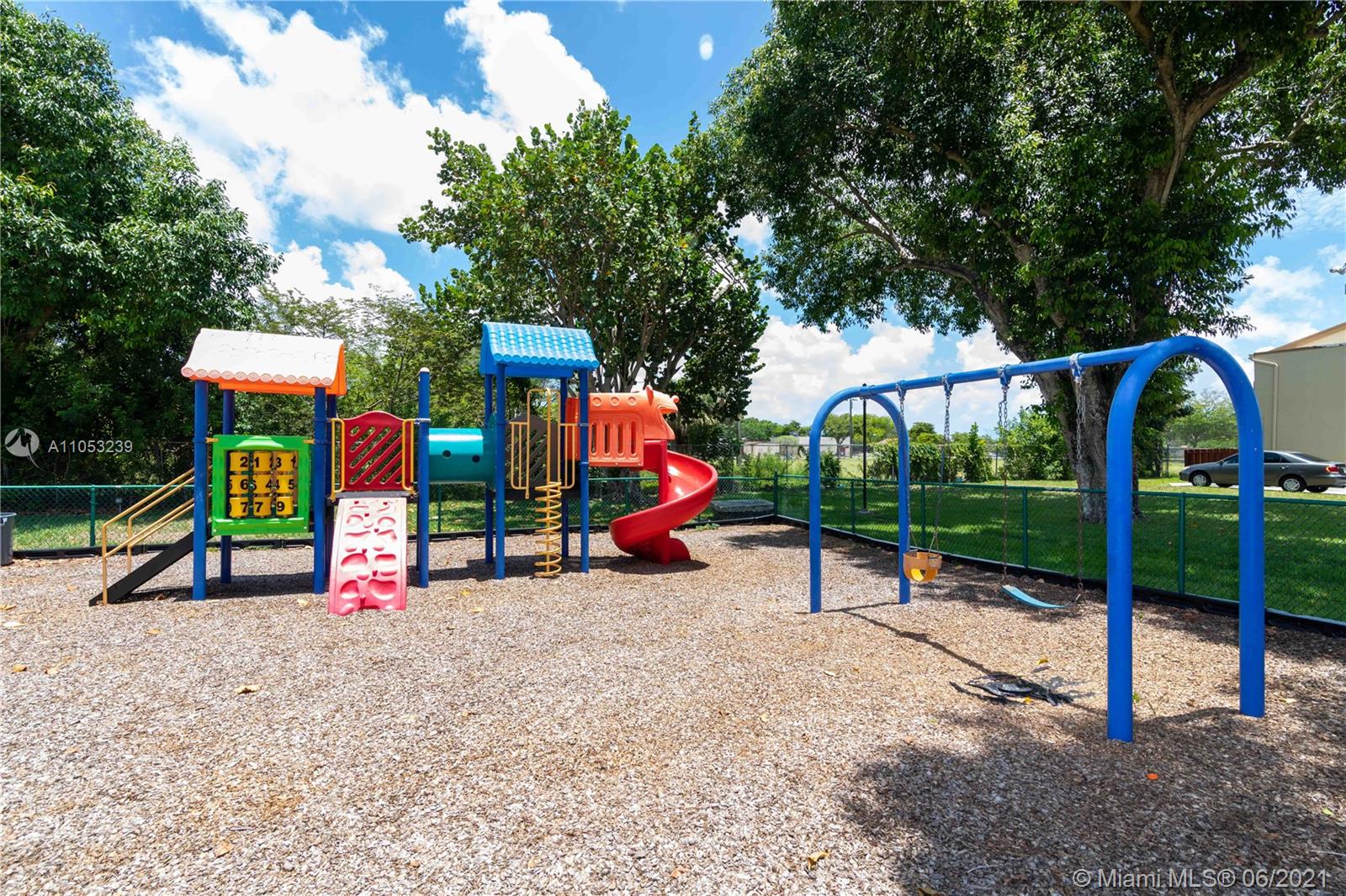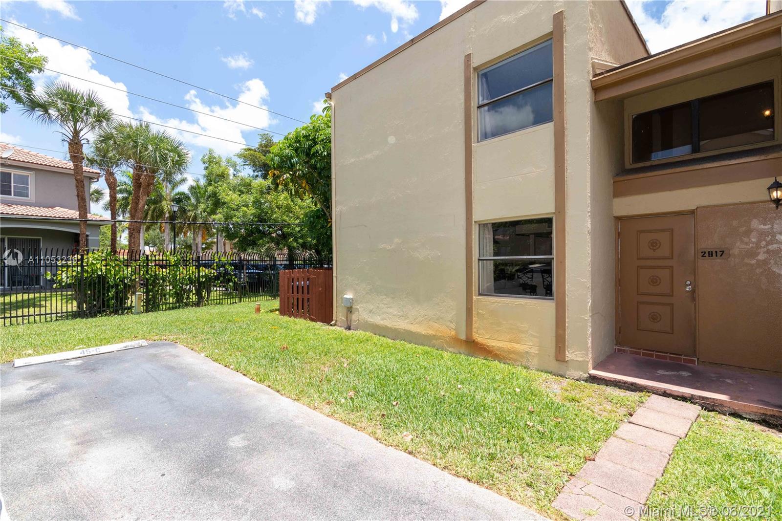 Spacious two story 2 Bedroom/1.5 Bathroom townhouse with enormous 1 car garage and assigned parking space right in front. Corner unit with fenced back patio, all tile floors, kitchen with breakfast bar, updated bathrooms, large master bedroom with walk-in closet, washer and dryer. Next to Tennis court. Schools, restaurants, shopping and Seminole Hard Rock nearby. Maintenance fee includes insurance, roof, pool, tennis court, playground, community lake and common areas. Very easy access to highways like the Turnpike, 826, I-95, I-75. Will not last!
