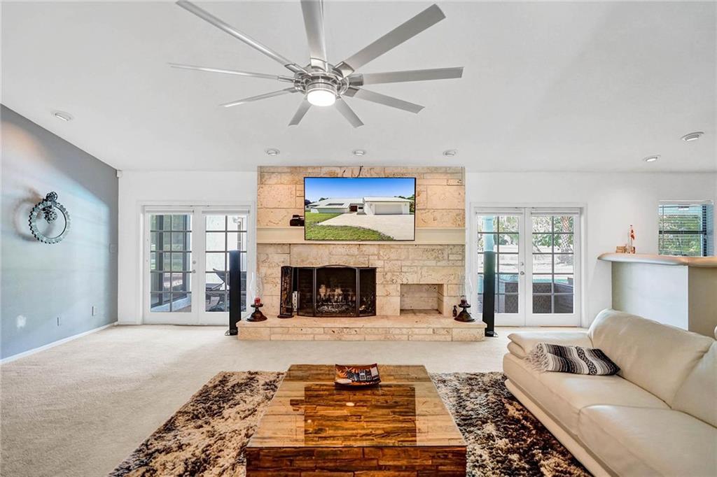 A fantastic and spacious home in a pristinely maintained golf community with *NO HOA*. The home sits on a huge one-third acre estate lot overlooking a lake. Immediately through the double door entry foyer the generous square footage is evident and enhanced by vaulted ceilings. This is a light and bright home with plentiful windows, french doors and sliding doors. An immense porch flows from the vaulted living room with fireplace, bar, media room, and main bedroom suite overlooking the in-ground pool and expansive lakefront patio. The main bedroom suite includes 2 walk-in closets; the bathrooms contains an oversized jetted soaking tub with double showers, 2 bathrooms with separate water closets with a toilet, bidet and sink in one; (continued - See Additional Remarks/Supplement field)