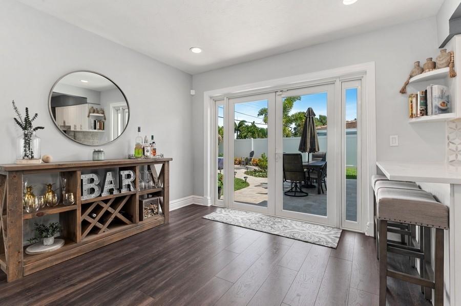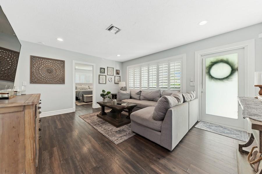 Beautifully renovated 2 bedroom/2 bathroom single family home in the desirable neighborhood of Garden Isles. Very spacious layout with separate living areas and a large storage/utility/laundry room. Home has all impact windows and doors featuring custom plantation shutters. Recent upgrades include new flooring, renovated bathrooms, quartz countertops/backsplash in the kitchen and completely built out closet systems. The backyard has been totally transformed with tropical landscaping, travertine pavers, and a lovely sound system, etc. It has plenty of room for a pool/spa of your choosing. Great location conveniently located between US1 and I-95...close to the beach, restaurants, shops, etc.