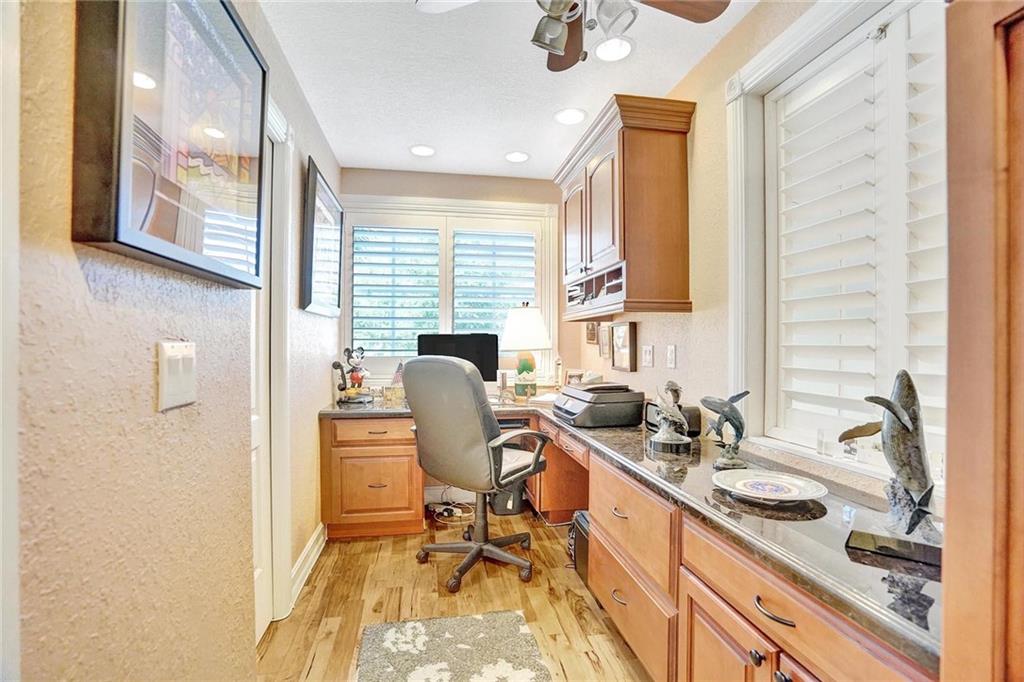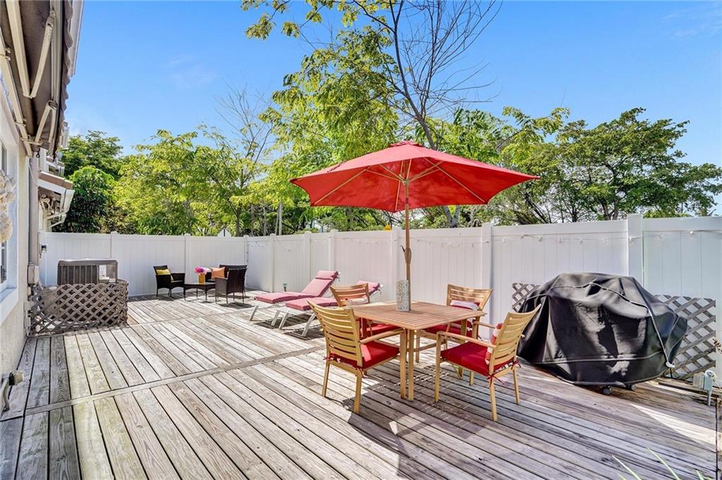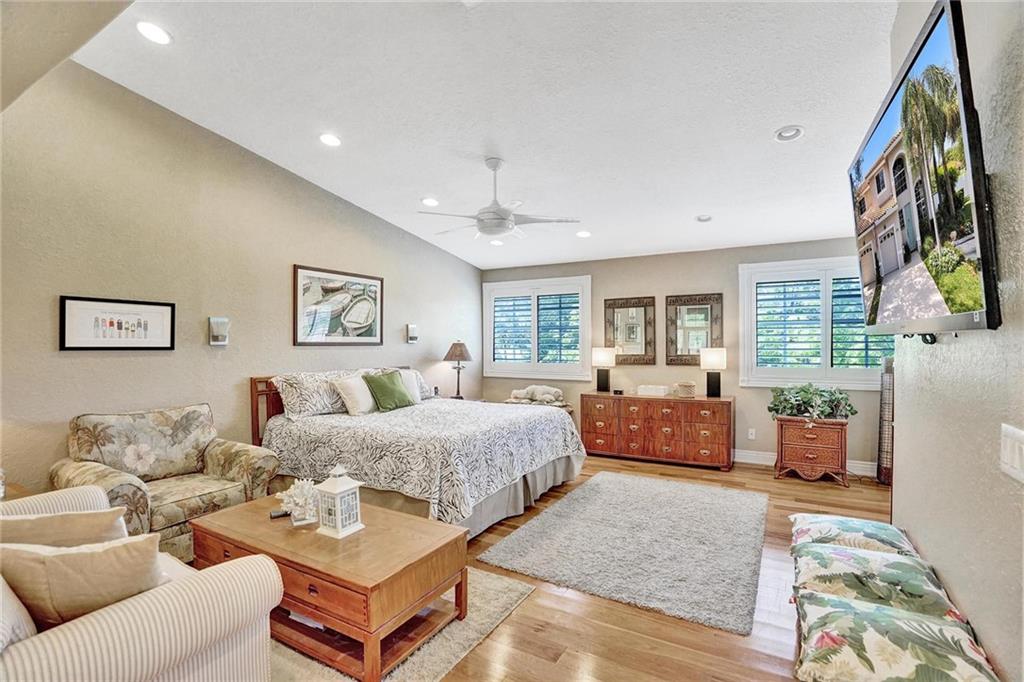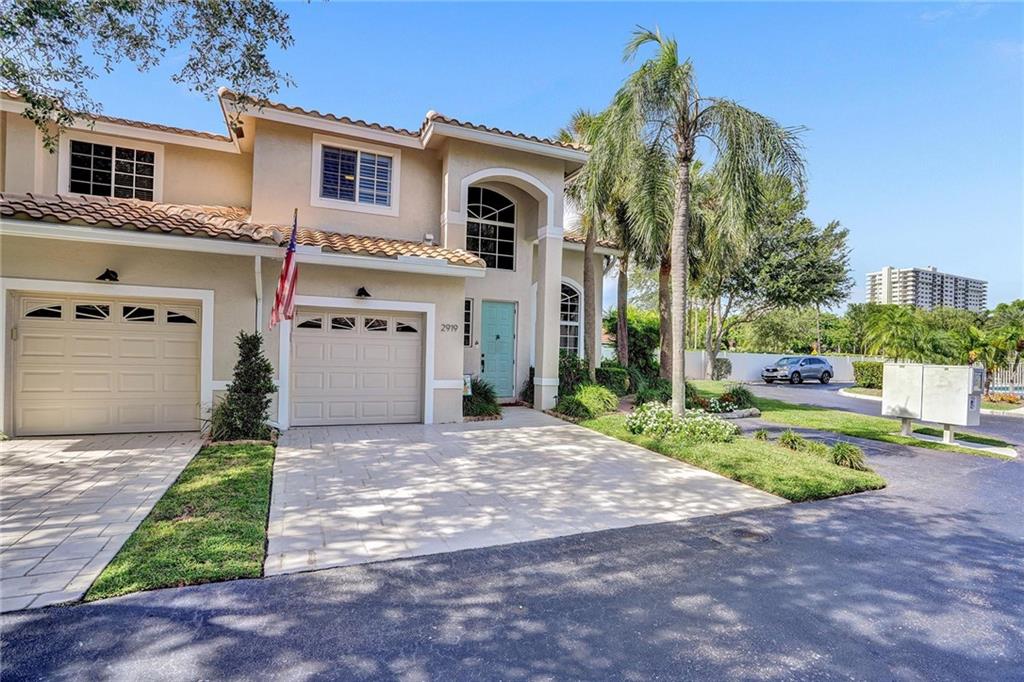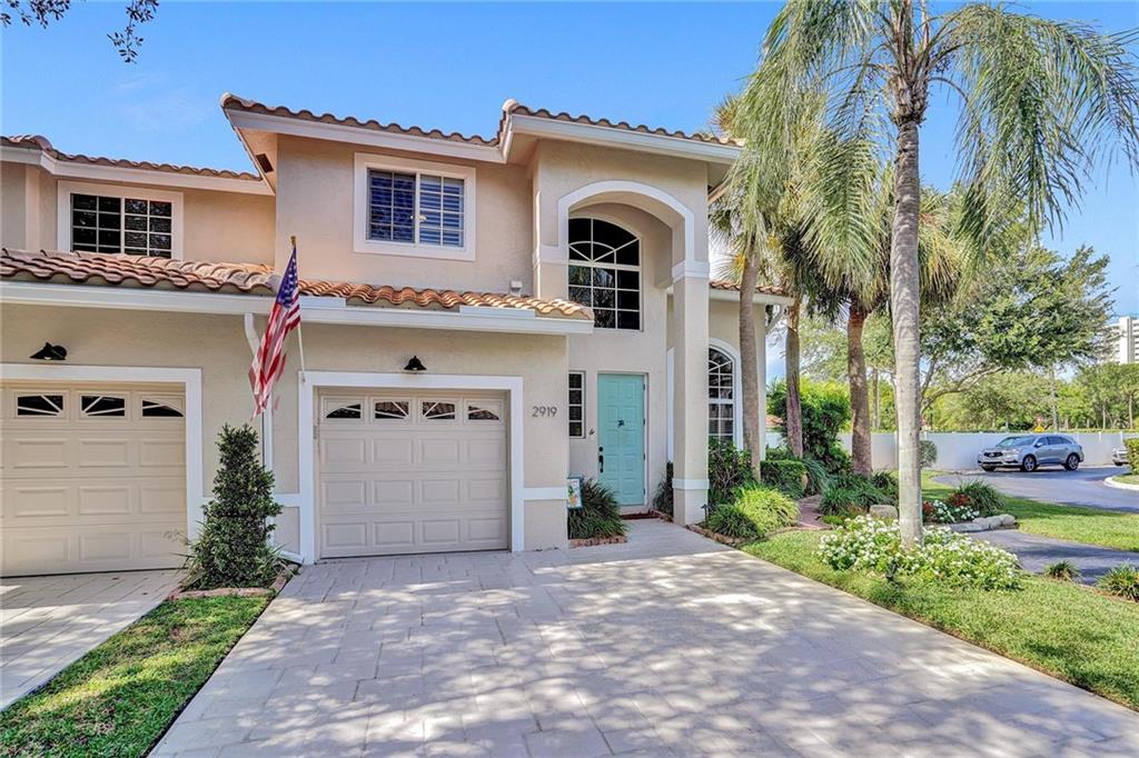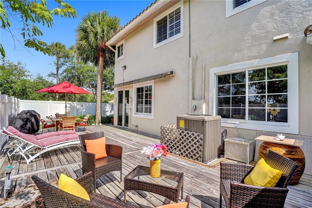 Picture perfect fee simple townhome located east of Federal Highway in Fort Lauderdale in a private enclave in Port Royale called Montego Bay. This corner unit features volume ceilings, impact glass, updated kitchen and baths, new roof, new HVAC, central vacuum system and is totally turnkey. Two bedrooms, two and a half bathrooms with an office. The primary bedroom has it's own office suite and cozy lounge area, two custom closets with built ins and a separate jacuzzi tub and shower. The downstairs living space is perfect for entertaining including a bar seating in the kitchen, two wine refrigerators and an eat in dining area all leading to a private tropical outdoor living space. Conveniently located just a few steps from the pool.