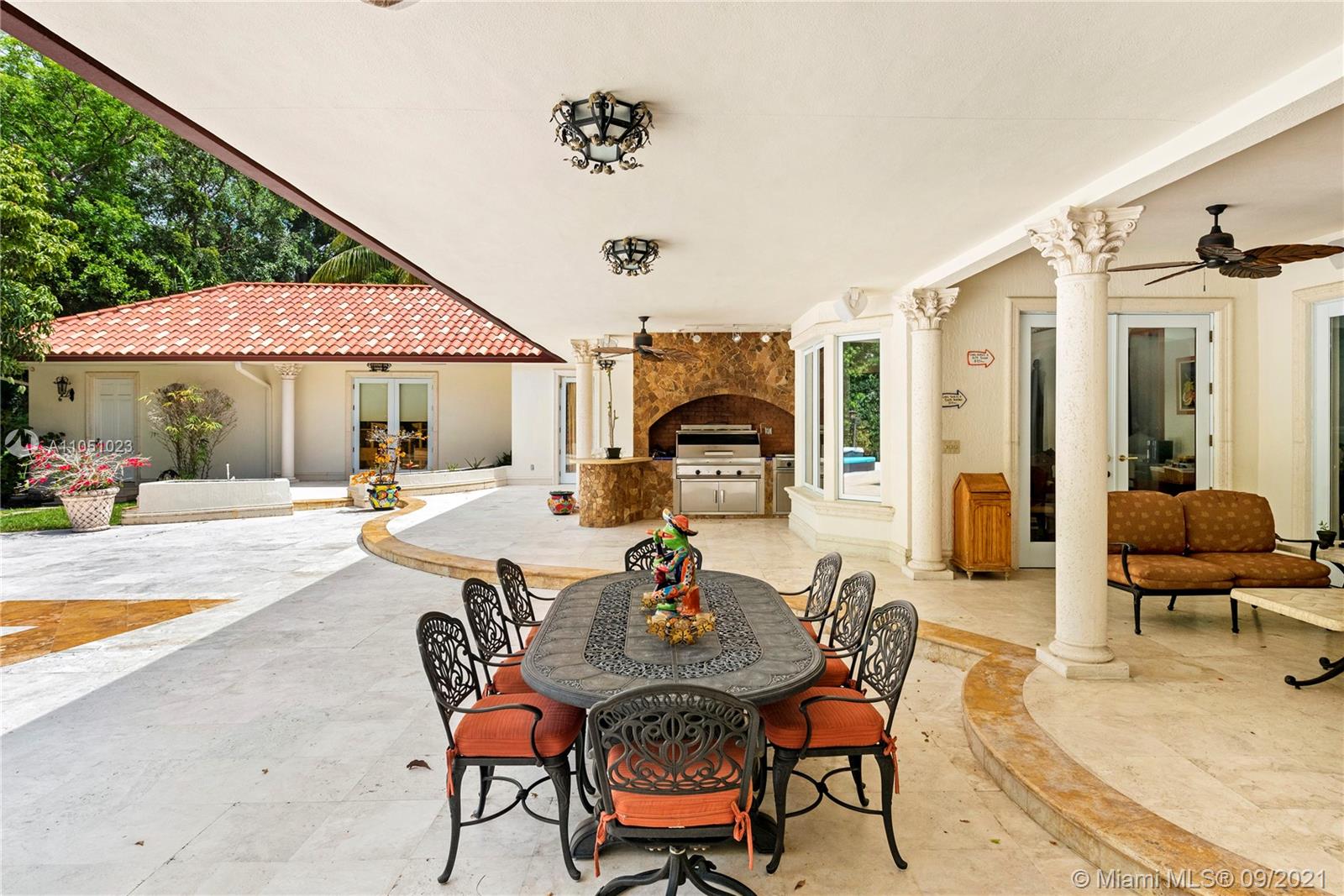 Live in Coral Gables next to the beach! Villa Ventura is a beautiful newer custom built estate sitting on a 1.51 acre lot full of fruit trees, exotic palms and majestic oaks trees directly opposite Matheson Hammocks Park. Beautiful state of the art gourmet style Chef’s kitchen w/cooking island, two dishwashers, steamer, large electric cook top, food warmer, large deep fryer, BBQ and grill, two ovens, microwave, Miele coffee maker, large Subzero double door freezer and refrigerator and wine storage. All bedrooms are en-suites with custom walk-in closets. Perfect for entertaining and equipped with surround sound, Lutron switches, outdoor covered terraces, a large saltwater pool with waterfall and a fully equipped outdoor stove/BBQ area. Impact windows, new roof and generator for Kitchen/1AC