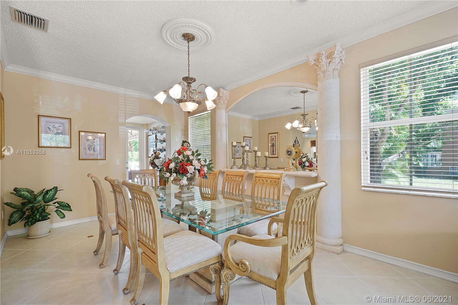 This remarkable home features 5 bedrooms and 4 baths in the desirable community of RIVIERA ISLES I. Sitting on a cul-de-sac the home offers a more secure and quiet living. The home has outstanding features such as a 2 car garage, high ceilings that welcome natural lighting, spacious master bedroom, and a family living area perfect for entertaining. As we step outside we can enjoy this resort style backyard with a pool, spa, and an outdoor bar with its very own pizza oven.