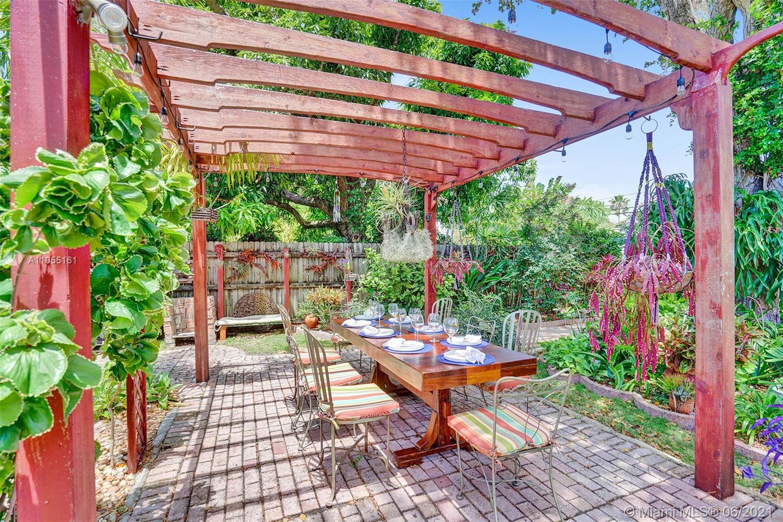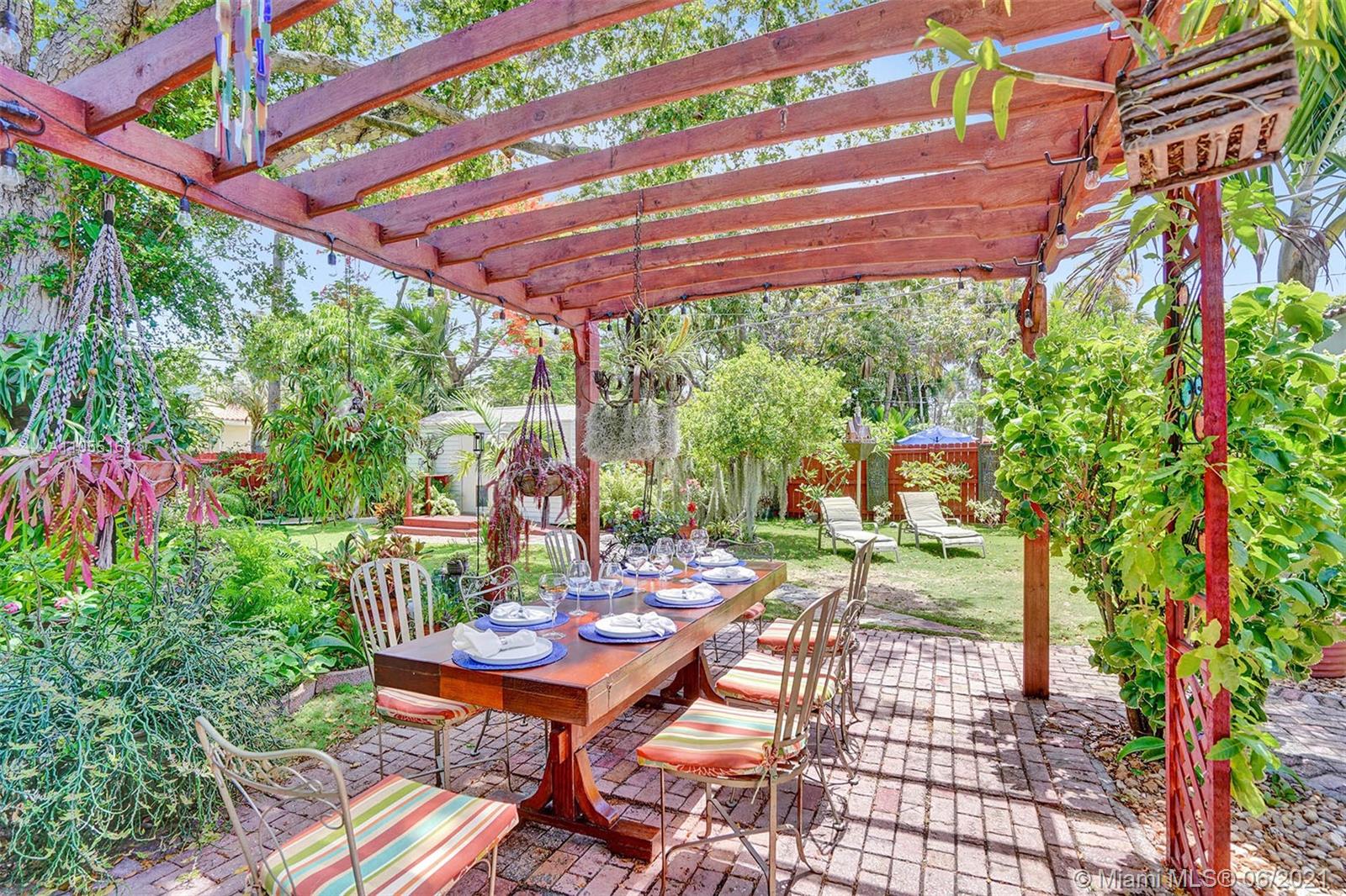 Charming and bright 3bed/2bath one-story house in prime location of Hollywood, East of US1. This well-maintained home features a circular driveway with Chicago bricks; impact windows along the front of the house; hurricane awnings on the side and back; concrete tile barrel roof; beautiful wood floors throughout; custom-made wood kitchen cabinets; updated bathrooms. Enjoy the very large fenced backyard with lavish landscape & trees, a pergola for dinner under the stars & a unique guitar-shaped walkway. Shed for extra storage with A/C & electricity. Strategically located between Miami and Ft. Lauderdale, a few blocks to downtown Hollywood Arts Park, restaurants & a short drive to Hollywood Beach Boardwalk. Close to supermarkets, Gulfstream Park, Aventura Mall & Ft. Lauderdale airport.