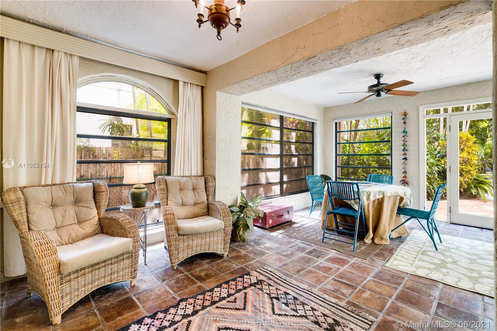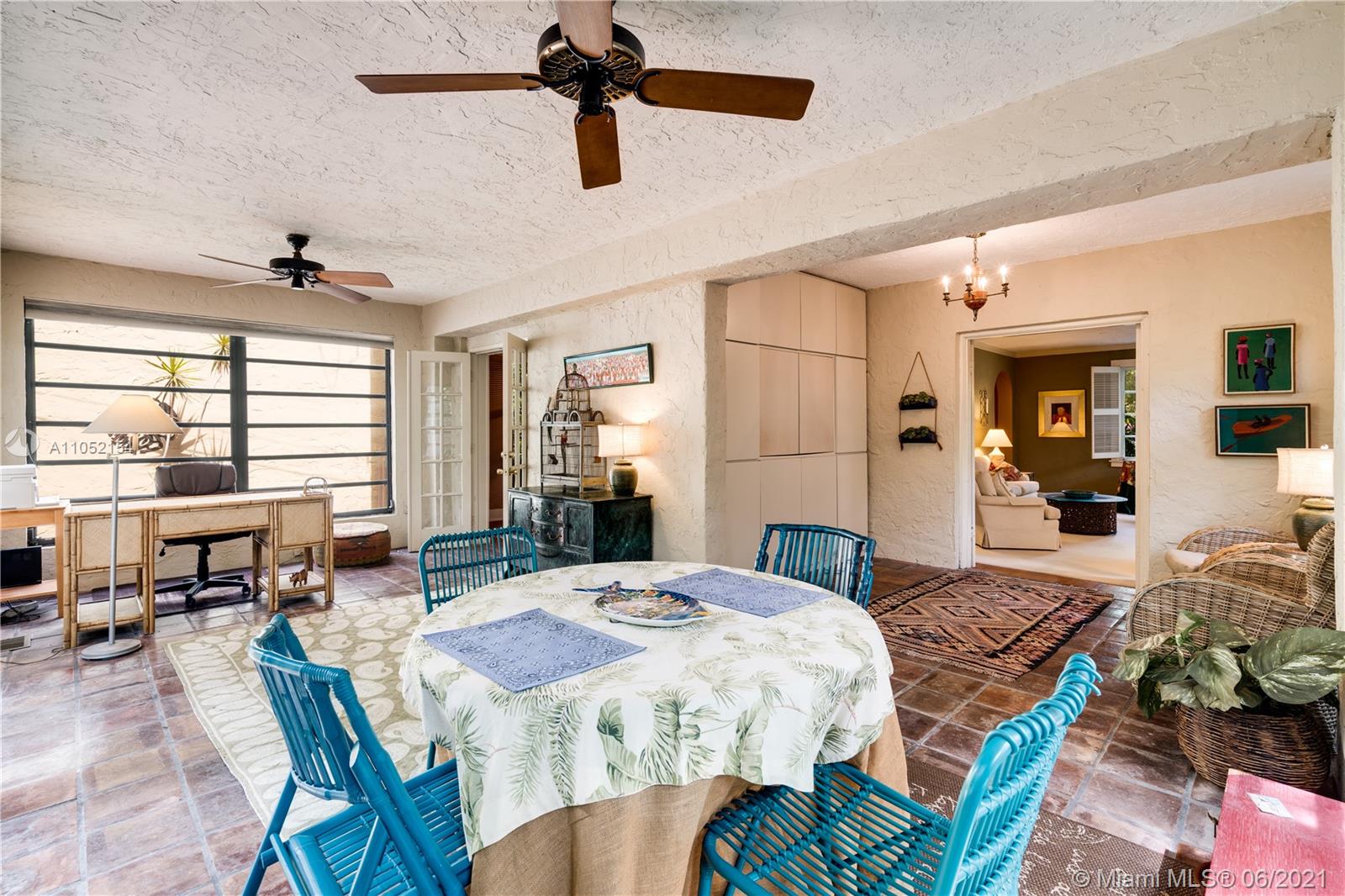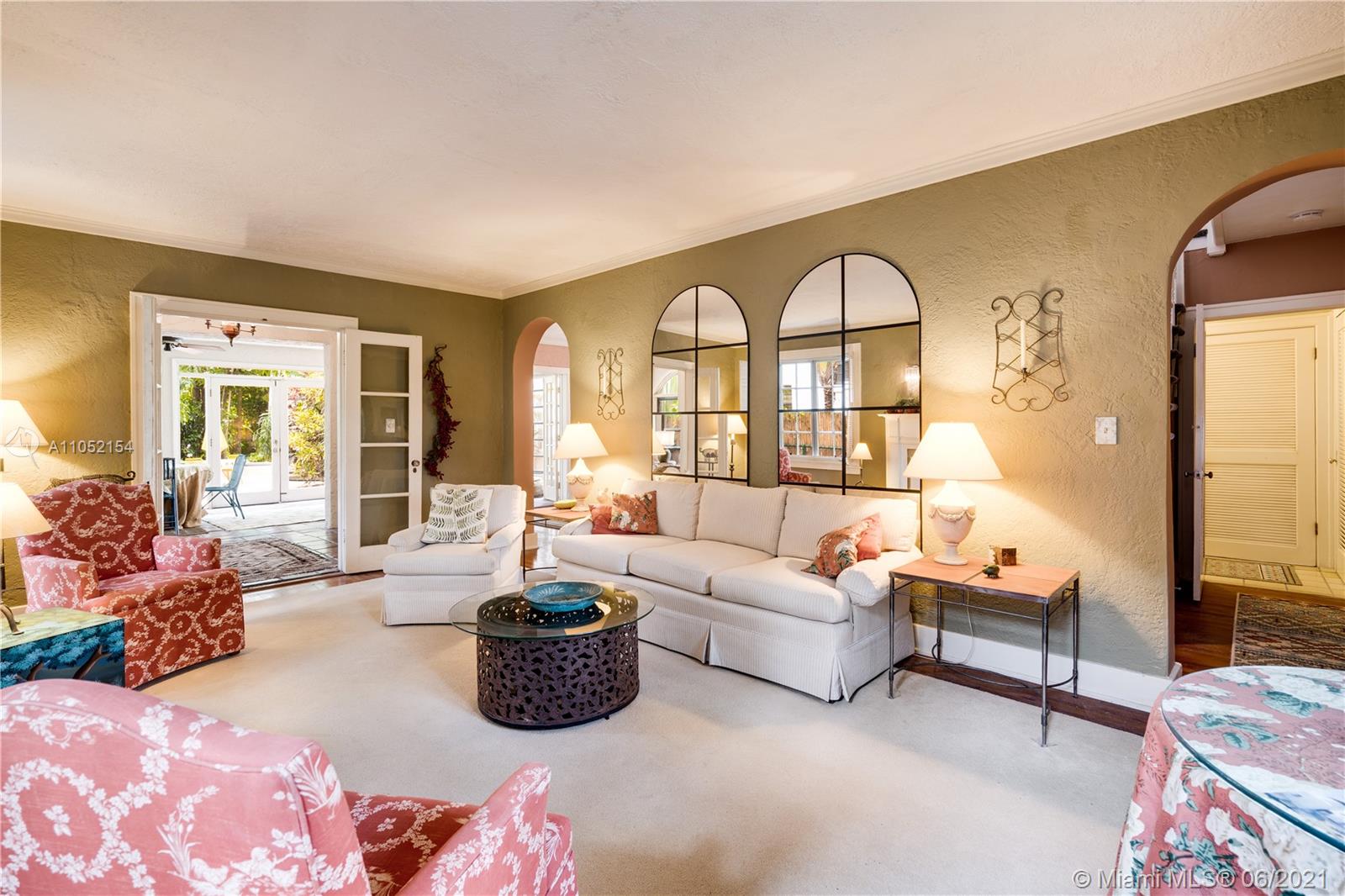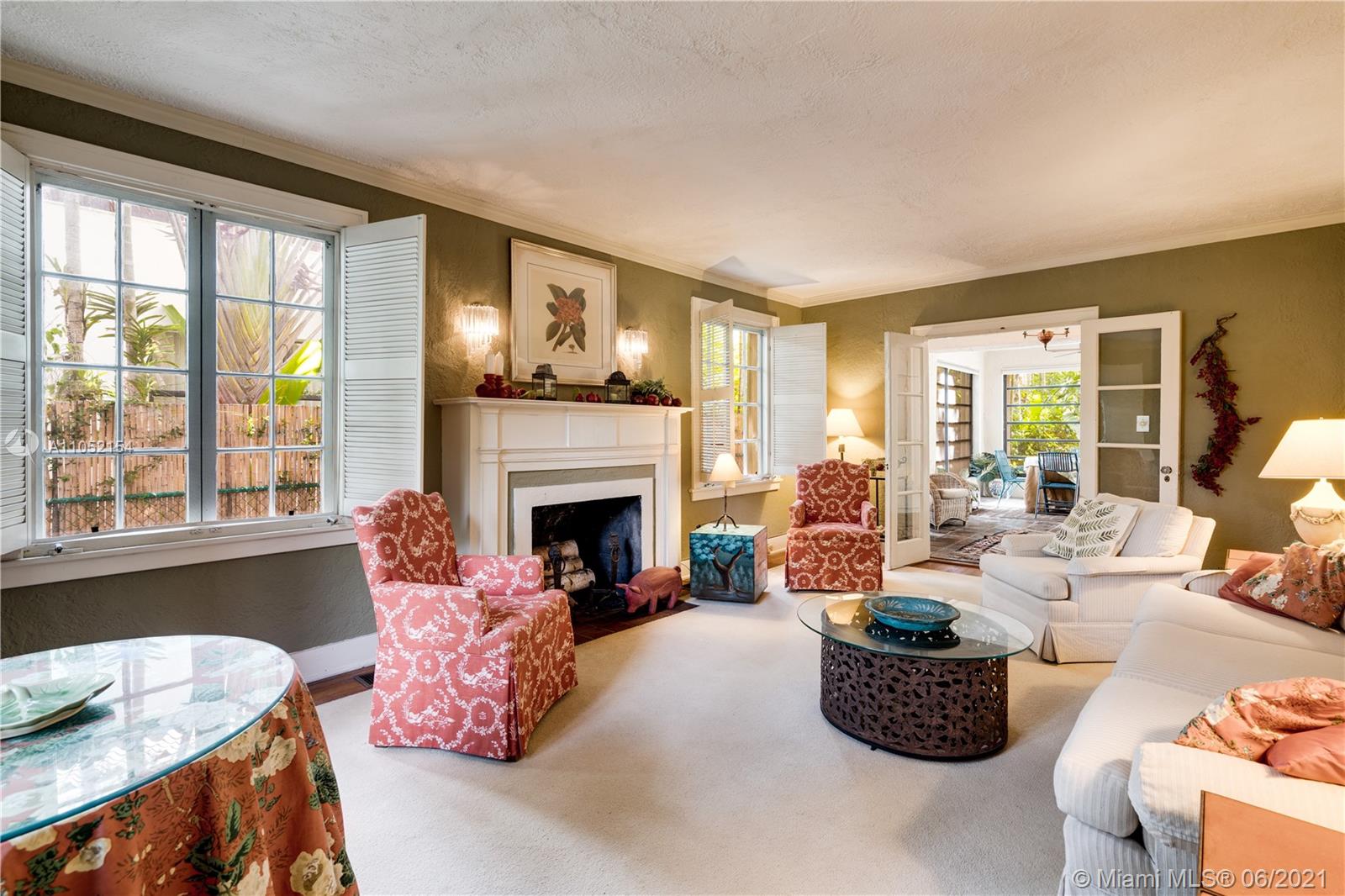 Classic 1925 two-story Old Spanish style 3/2 with 150' deep lot and pool in top Gables location close to Granada Golf Course & the Country Club of Coral Gables. Foyer entry, formal living room with fireplace, family room spans the back of the home facing the deep lot and pool, formal dining rm, 1 full bath on 1st floor, 3 bedrooms upstairs with 1 full bath, large 2nd floor balcony accessed through bedrooms overlooking back yard and pool. Dense landscaping on 150' deep lot provides poolside privacy & creates a dreamy tropical lagoon style vibe. 1 car garage. 3 impact glass doors. No impact windows, most windows are original 1920's wood casement type. New roof in 2016, 2 zone AC 2001 and 2021. Home needs updating & has cloth type wiring which needs to be replaced. Estimate in attachments.