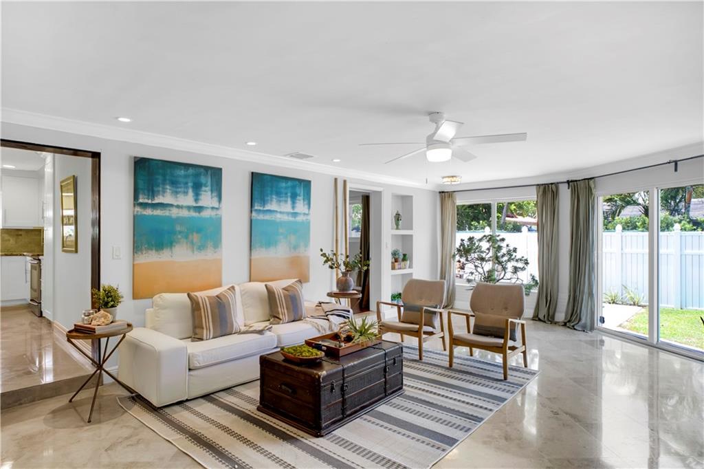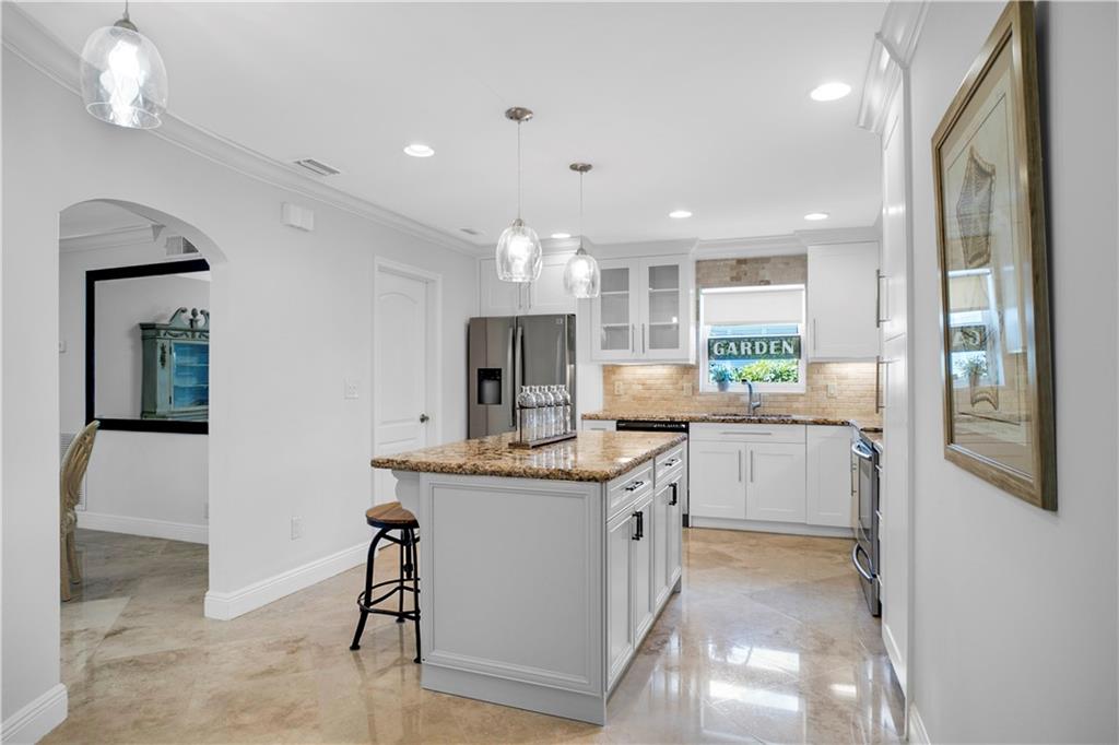 Welcome Home! remodeled designer home in Imperial Point. This 3/3 home features an inviting and open floor plan with lots of natural light and recessed lighting. The stunning kitchen features white shaker cabinets and a beautiful granite island. The split floor plan includes 3 walk-in closets, travertine, and wood floors, crown molding, a fireplace, a spacious laundry room, and a garage converted into a home office/studio with barn doors and separate outside entry doors, hardware, and door in place to easily convert back. This prime location is close to the best hospitals, private schools, shopping, and restaurants. Only 2 miles to the beach.