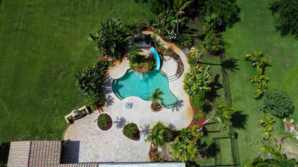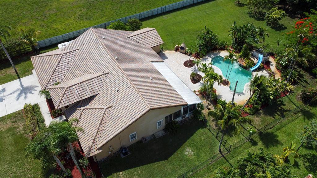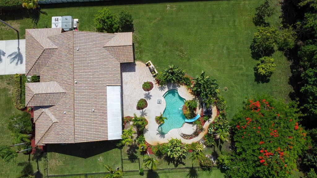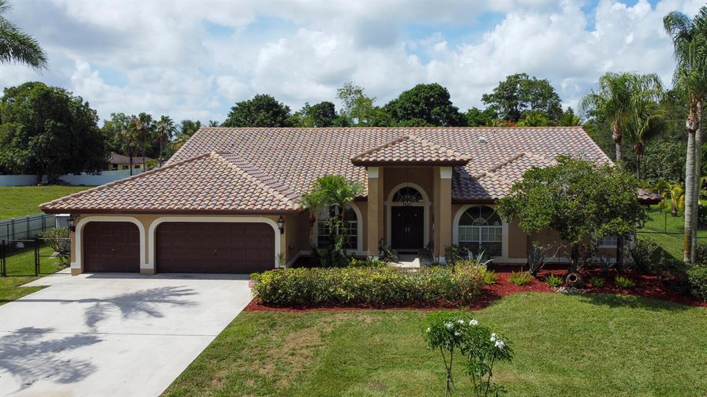 YOUR BEAUTIFUL TROPICAL OASIS AWAITS!! This is a very rare opportunity to own your private custom 5 bedroom, 3 bath, 3 car garage home on a builder's acre. This amazing home is located on a quiet cul-de-sac, with no homes across the street, no HOA, and horses are welcome! It's long driveway accommodates at least 10 cars, an RV and/or boat. As you enter the home, you will be in view of your very own tropical pool oasis outback. The home boasts an open floor plan with high vaulted ceilings, a large master suite, an open kitchen with stainless steel appliances, granite countertops and a reverse osmosis system to ensure that the water is ultra filtered and pure. The 3 full bathrooms have all been renovated with high-end finishes. The roof is BRAND NEW (June 2021) with a WARRANTY...