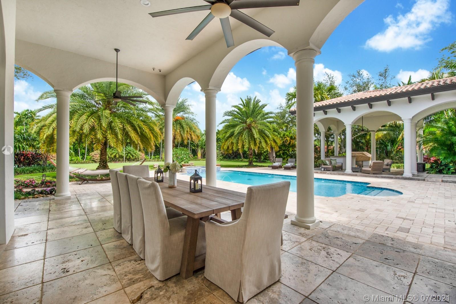 Great opportunity to own a coveted gated & custom 7 bedrooms/8.5 bathrooms estate w/ 3-car garage, on a deep oversized lot w/ custom design landscaping, located in prestigious N. Pinecrest. Some of the amazing features of this property are: Resort style amenities, including oversized pool and spa, 2 large, covered terraces with S/S built-in grill & bar, multi-sport court, gourmet kitchen w/Euro wood cabinets & Thermador appliances, family room w/bar & fireplace. Maids quarter, gym/media room, library/office, w/ 3 separate built-in desks, insulated & pre wired closet to be converted into a wine cellar. 2 story foyer w/ panoramic pool & garden views and much more. Walking distance from Gulliver Prep.