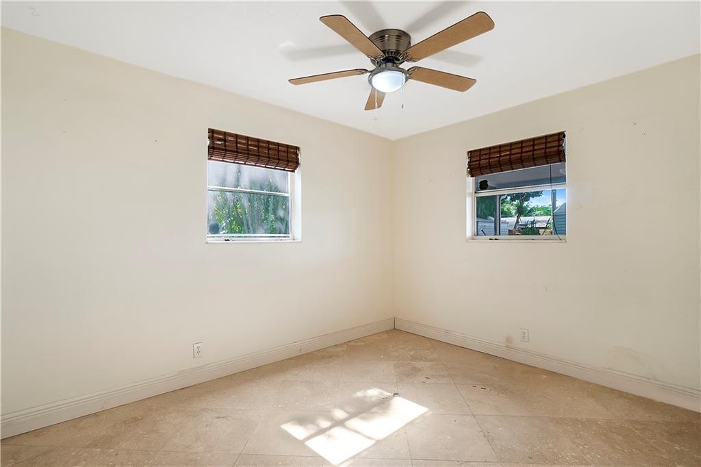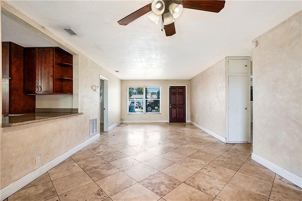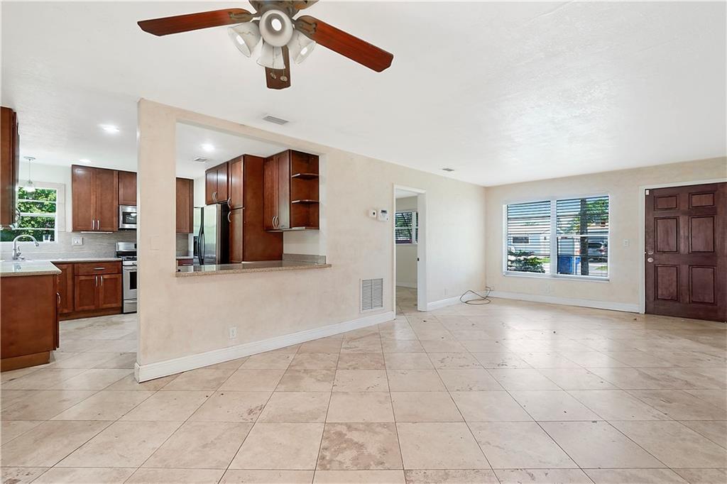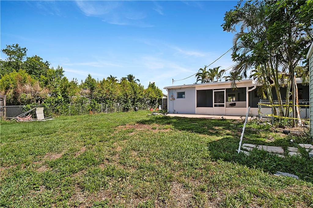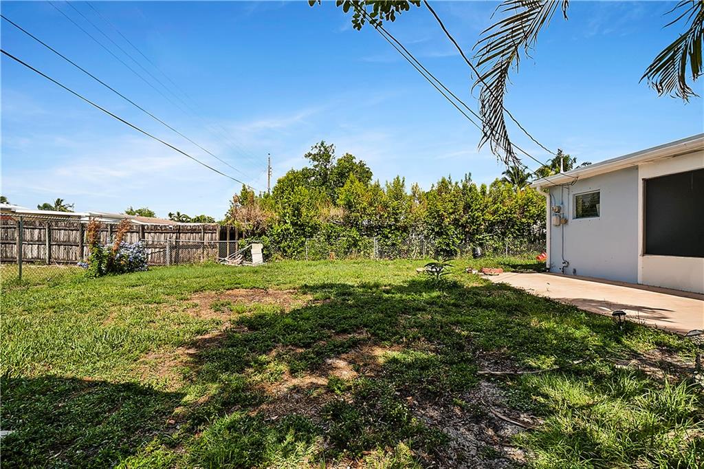 This quaint 3 bedroom, 2 bathroom single family Hollywood home is located on a quiet residential street. Terracotta paving stones lead to a house that is light and bright, featuring polished travertine tiles throughout. Updated kitchen with gas stove. A particularly attractive feature of this house is the Florida room that overlooks a large backyard. There is plenty of room to develop a lush tropical garden, or perhaps a pool. A separate large laundry room. The roof is from 2002 (repairs have taken place since then). Insulation installed 2012. AC 2012. Wind turbines replaced 2020. There was a Koi pond in the yard (which has been emptied and drained) - the pipes and liner are still in place.