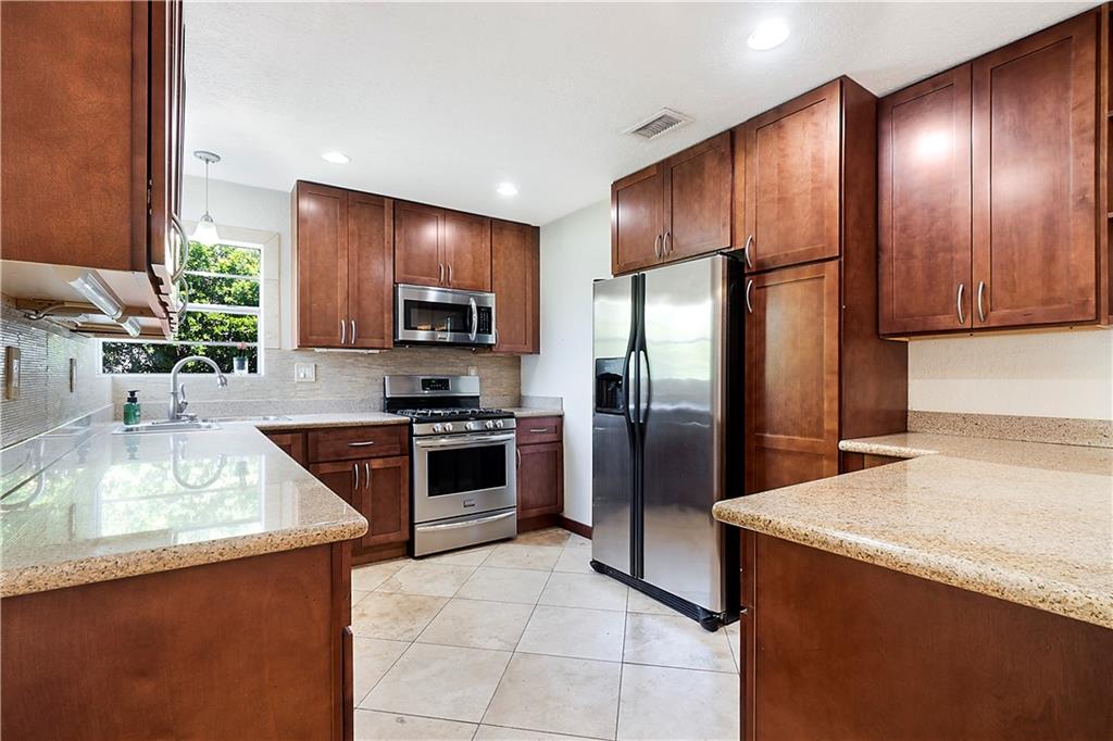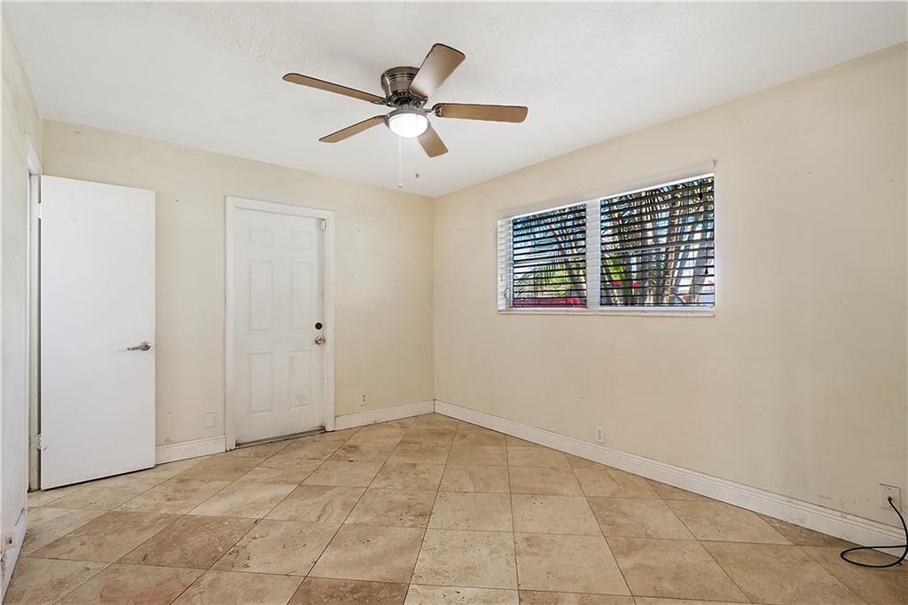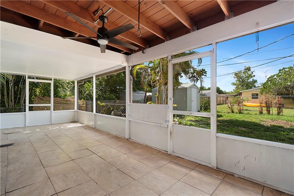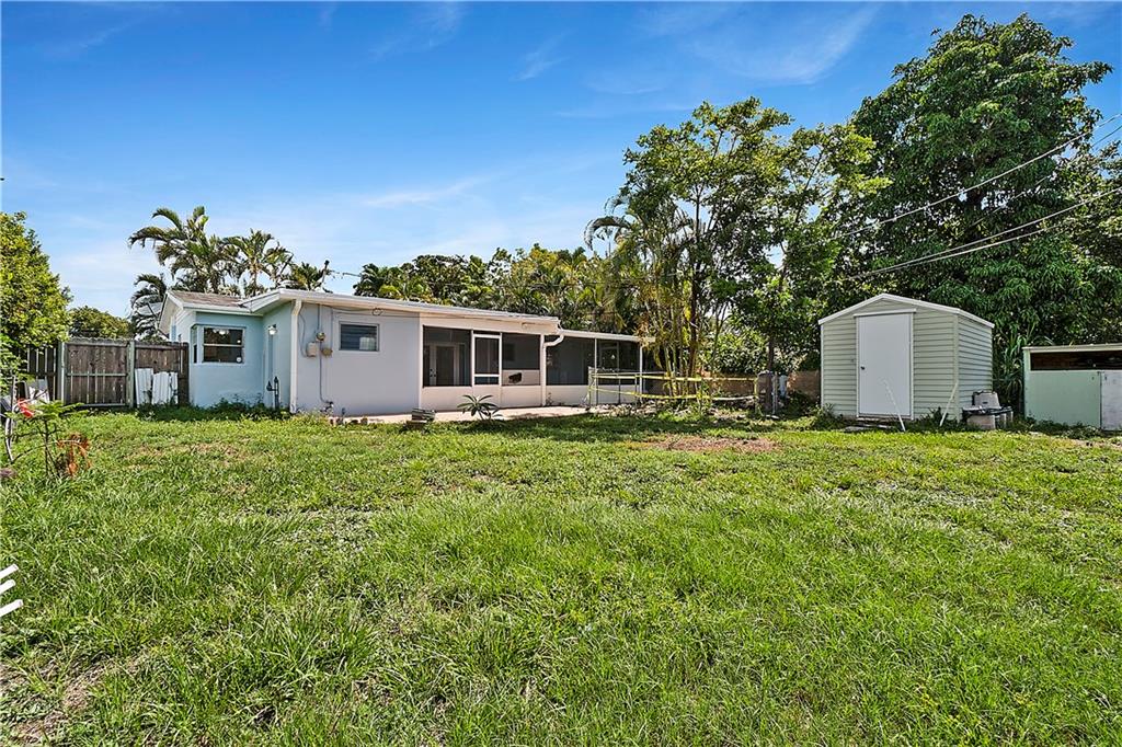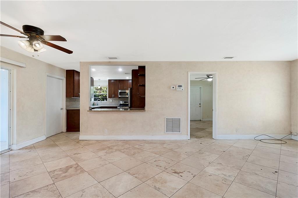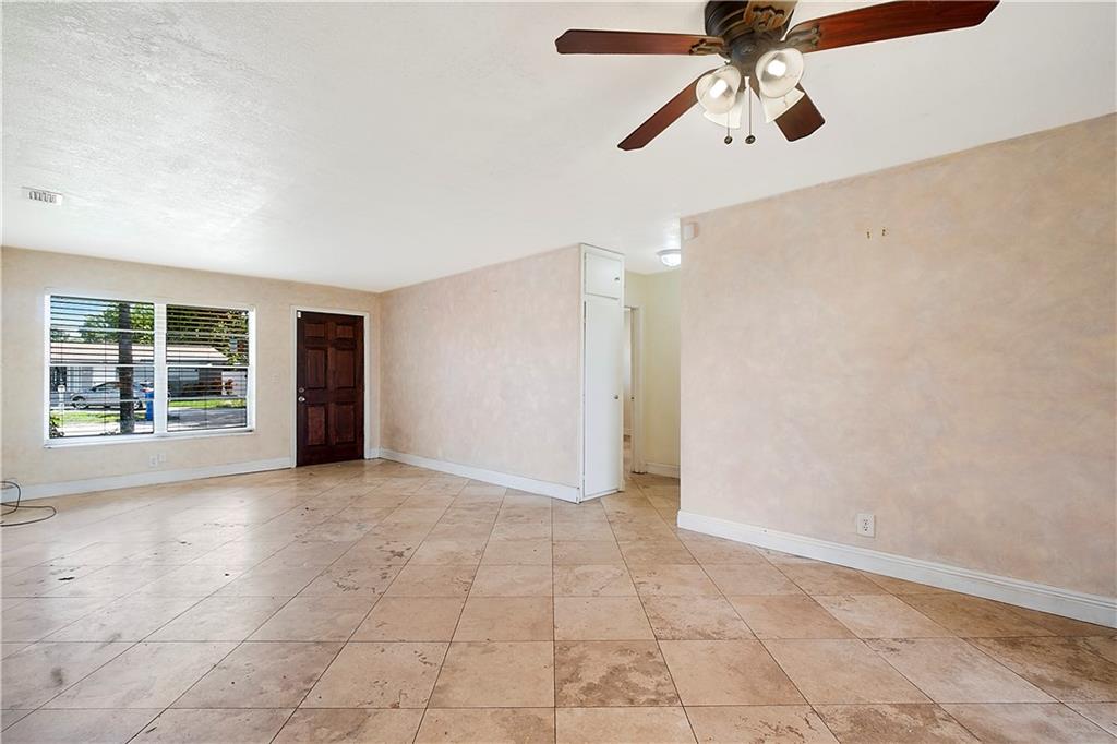 This quaint 3 bedroom, 2 bathroom single family Hollywood home is located on a quiet residential street. Terracotta paving stones lead to a house that is light and bright, featuring polished travertine tiles throughout. Updated kitchen with gas stove. A particularly attractive feature of this house is the Florida room that overlooks a large backyard. There is plenty of room to develop a lush tropical garden, or perhaps a pool. A separate large laundry room. The roof is from 2002 (repairs have taken place since then). Insulation installed 2012. AC 2012. Wind turbines replaced 2020. There was a Koi pond in the yard (which has been emptied and drained) - the pipes and liner are still in place.