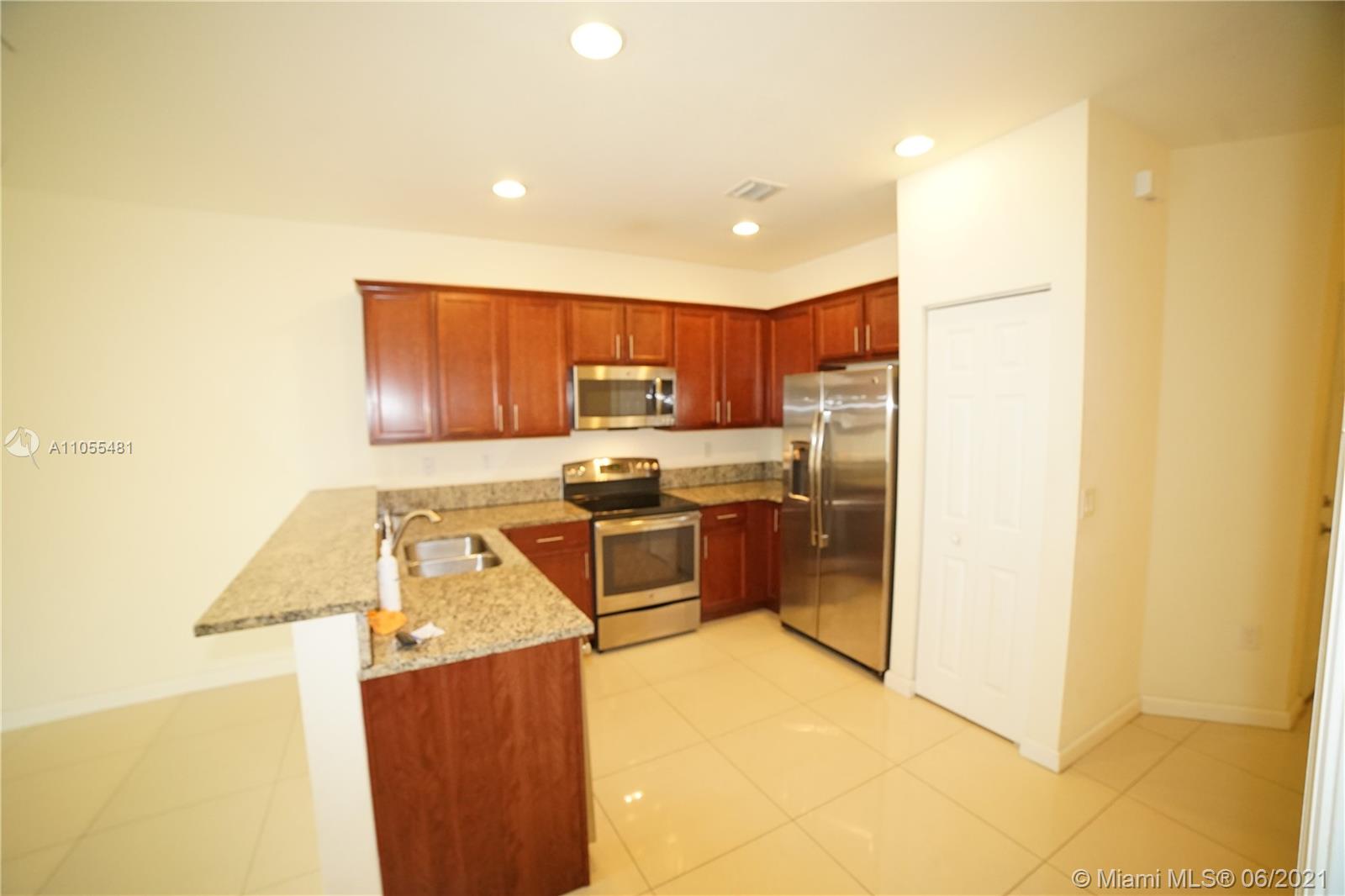 LOCATION,LOCATION !!!! Four Bedrooms Townhouse, 1 bedroom and 1 Full Bath downstairs. Wood cabinets and Granite Countertop, Stainless steel Appliances , Porcelain tile on first Floor, carpet on second floor, Washer and dryer on the second floor, Paver Patio and no neighbors behind 1 car garage with automatic door !!! Close to New shopping center and restaurants !!