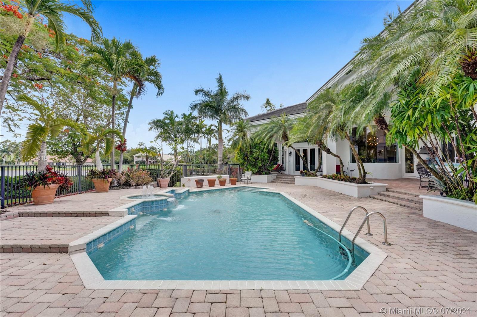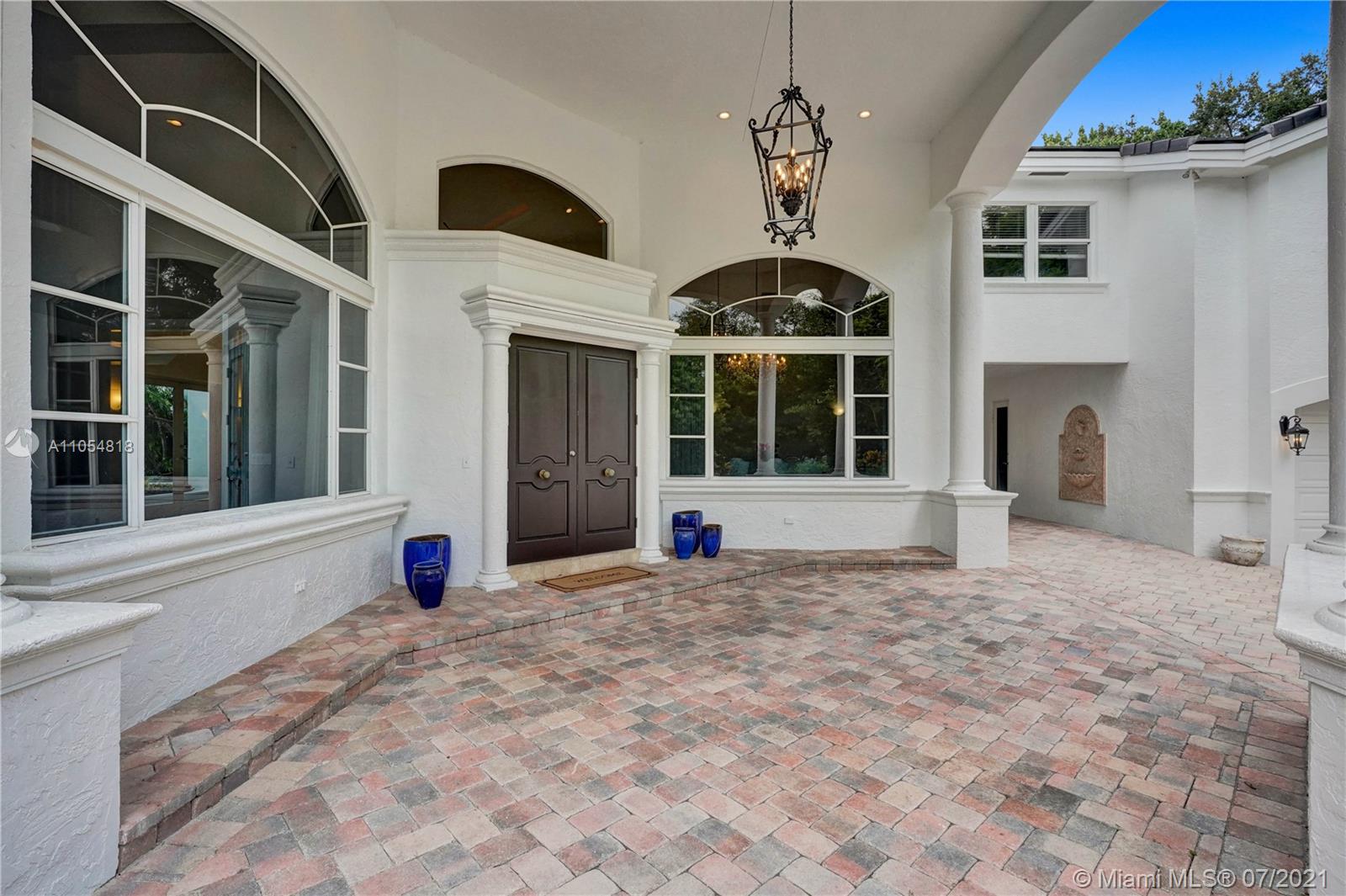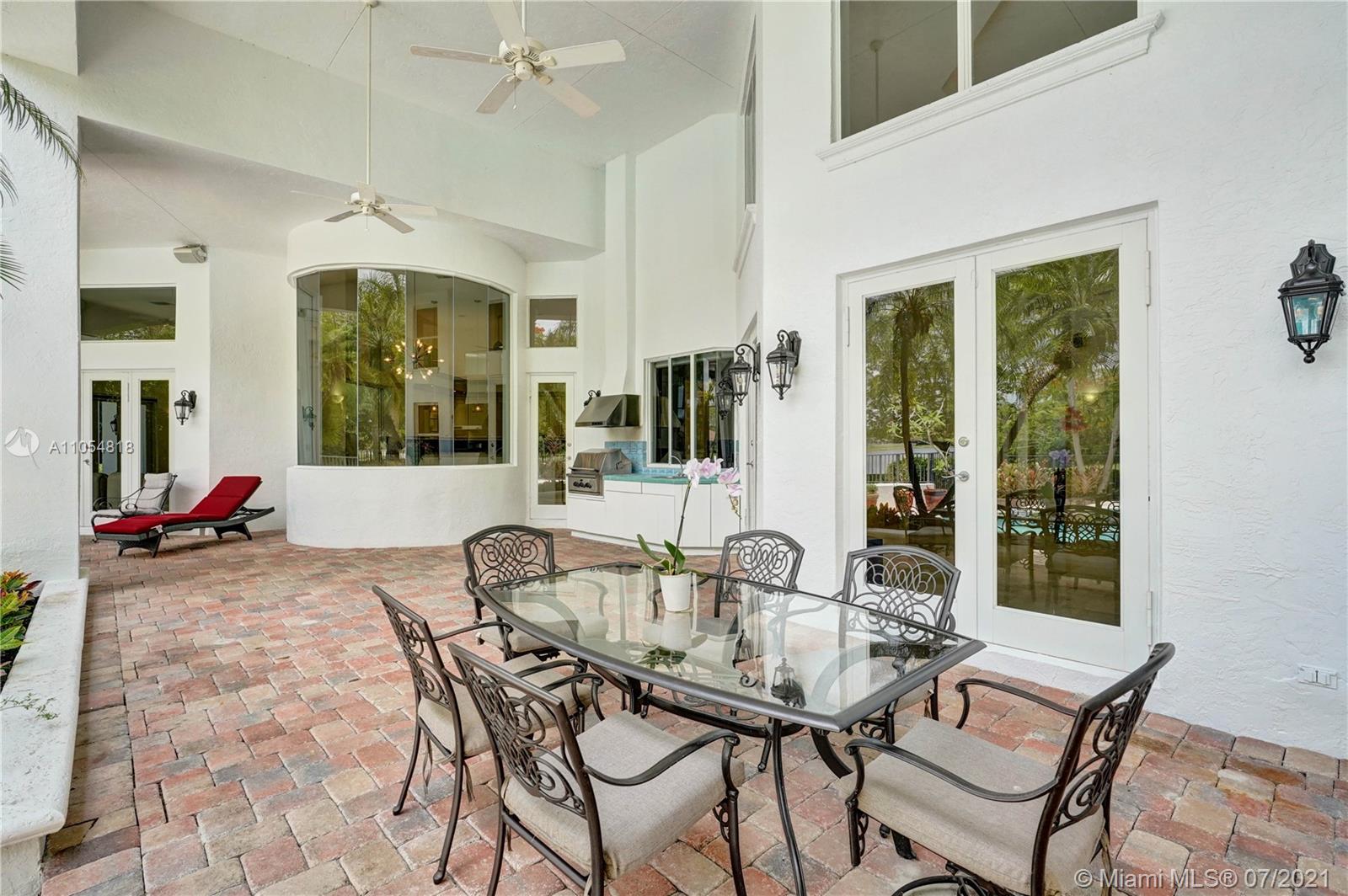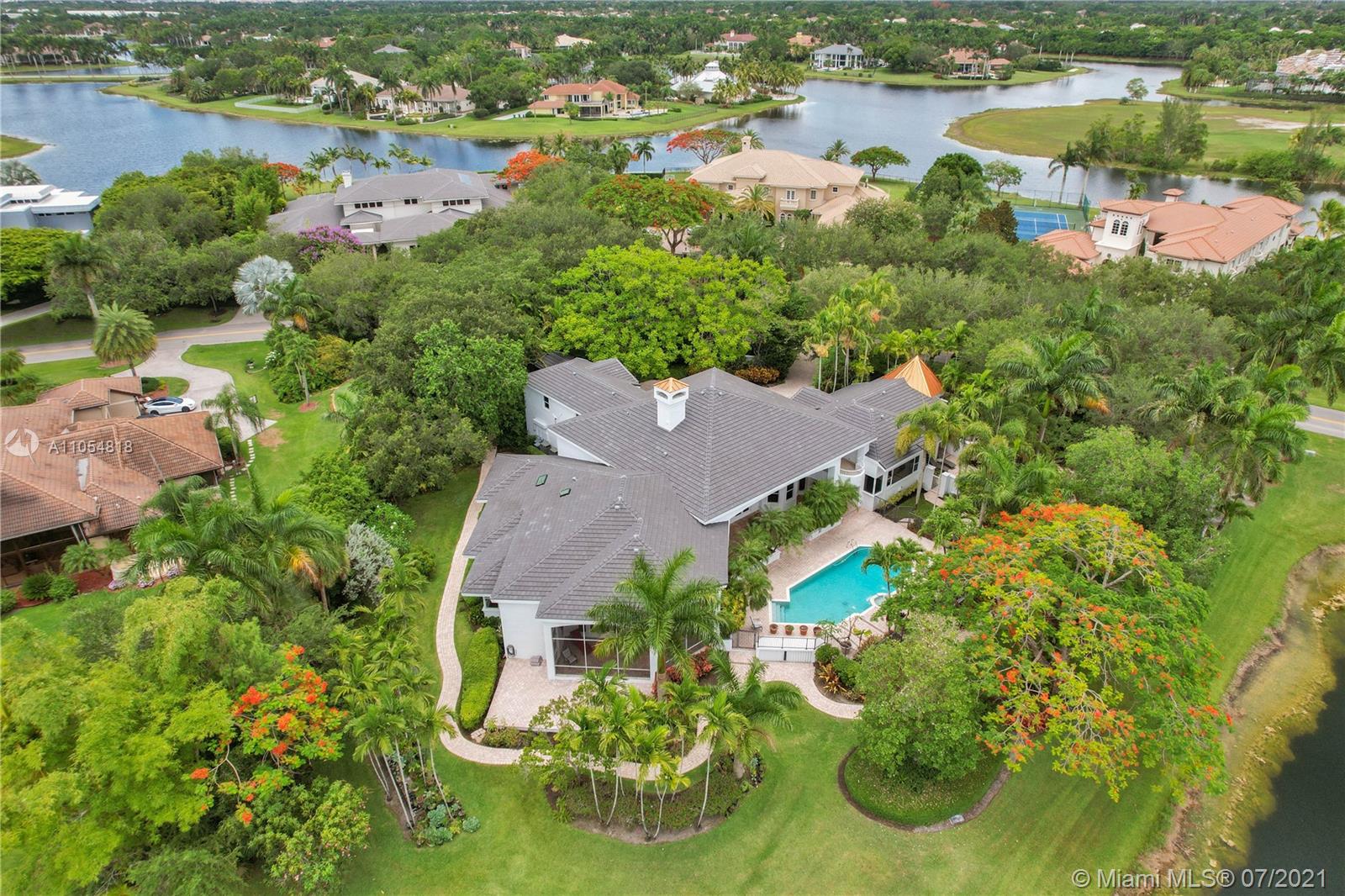 FIRST TIME ON THE MARKET! Absolutely captivating & private lakefront residence in the sought after neighborhood of Windmill Ranch Estates! Not a detail was spared in this incredibly planned two story estate home - perfect for entertaining & luxury living. Features include: Serene 1.49 acre corner lot, grand entry with Porte cochere, 3 car garage, NEW roof, hurricane impact glass, 5 bedrooms, 4 1/2 baths PLUS gym, office, library, wine room & bonus room, oversized master suite with spa-like bath & separate outdoor spa, living room with soaring ceilings & fireplace, gourmet kitchen, 2nd office, family room with endless views, summer kitchen & resort style pool - all together with peaceful & relaxing walkways around the property to enjoy the picturesque lush landscaping & beautiful sunsets!
