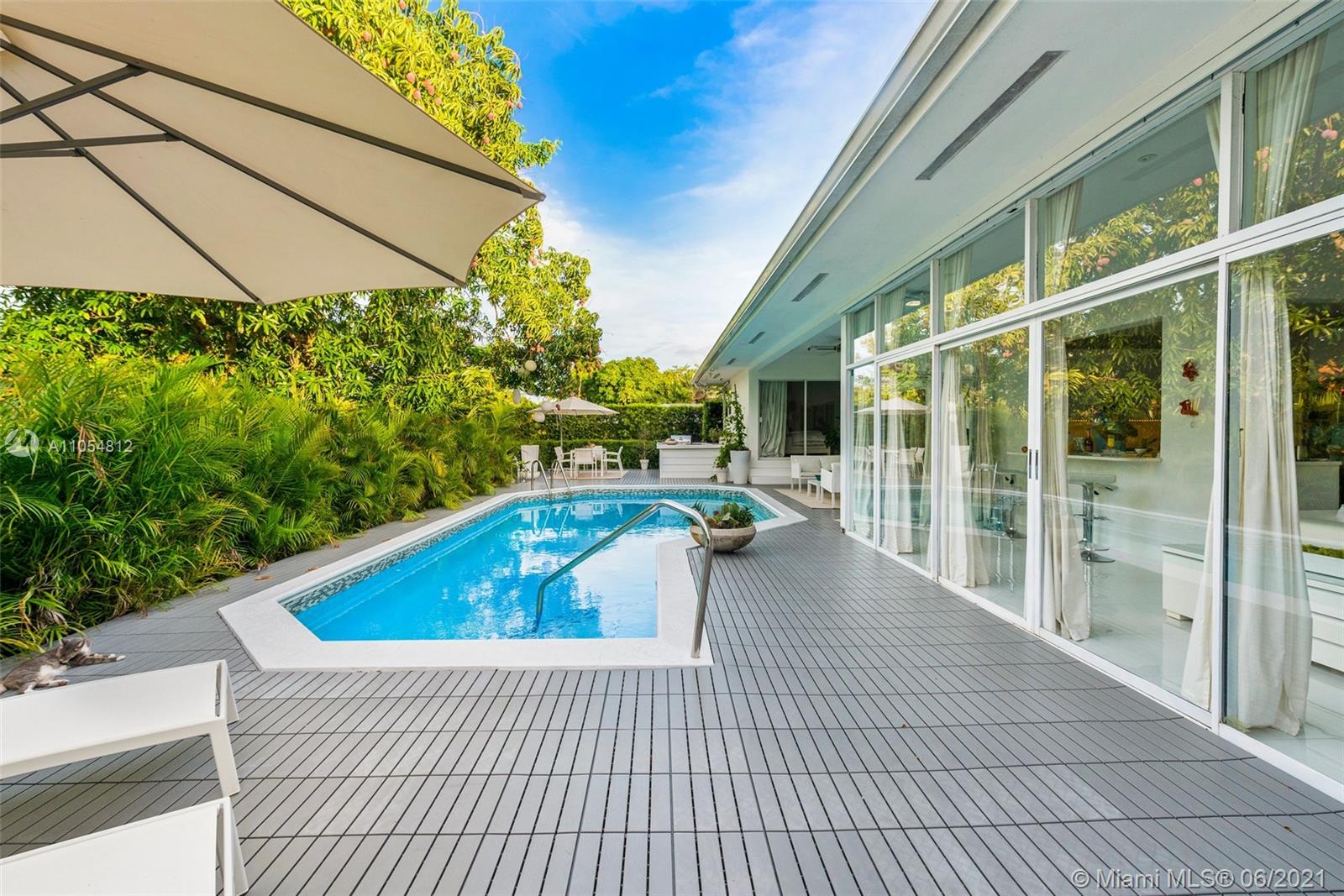 You will love this remodeled, unique, waterfront home on a quiet street. This 3-bedroom, 2-bath home has a 2-car garage-giving you spacious elegance and a modern gourmet kitchen with a walk-in pantry. Spectacular outdoor features make this tropical oasis perfect for entertaining and relaxing; pool, grill area, outdoor dining and seating areas, fruit trees and luscious greenery provides privacy. Enjoy abundance of natural light through floor to ceiling windows. At night this chic hidden gem takes on a new look and feel. Full roof and gutter replacement in 2016. Two AC units installed in 2015 and 2021. All of this and more situated in a convenient, friendly neighborhood. This home is a must see and wont last! CALL NOW! Please provide pre-qualification letter prior to scheduling showing.