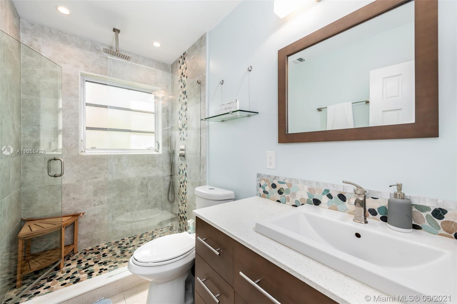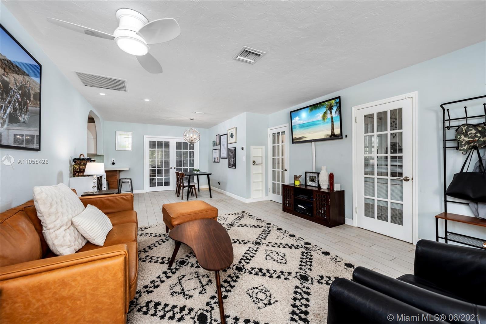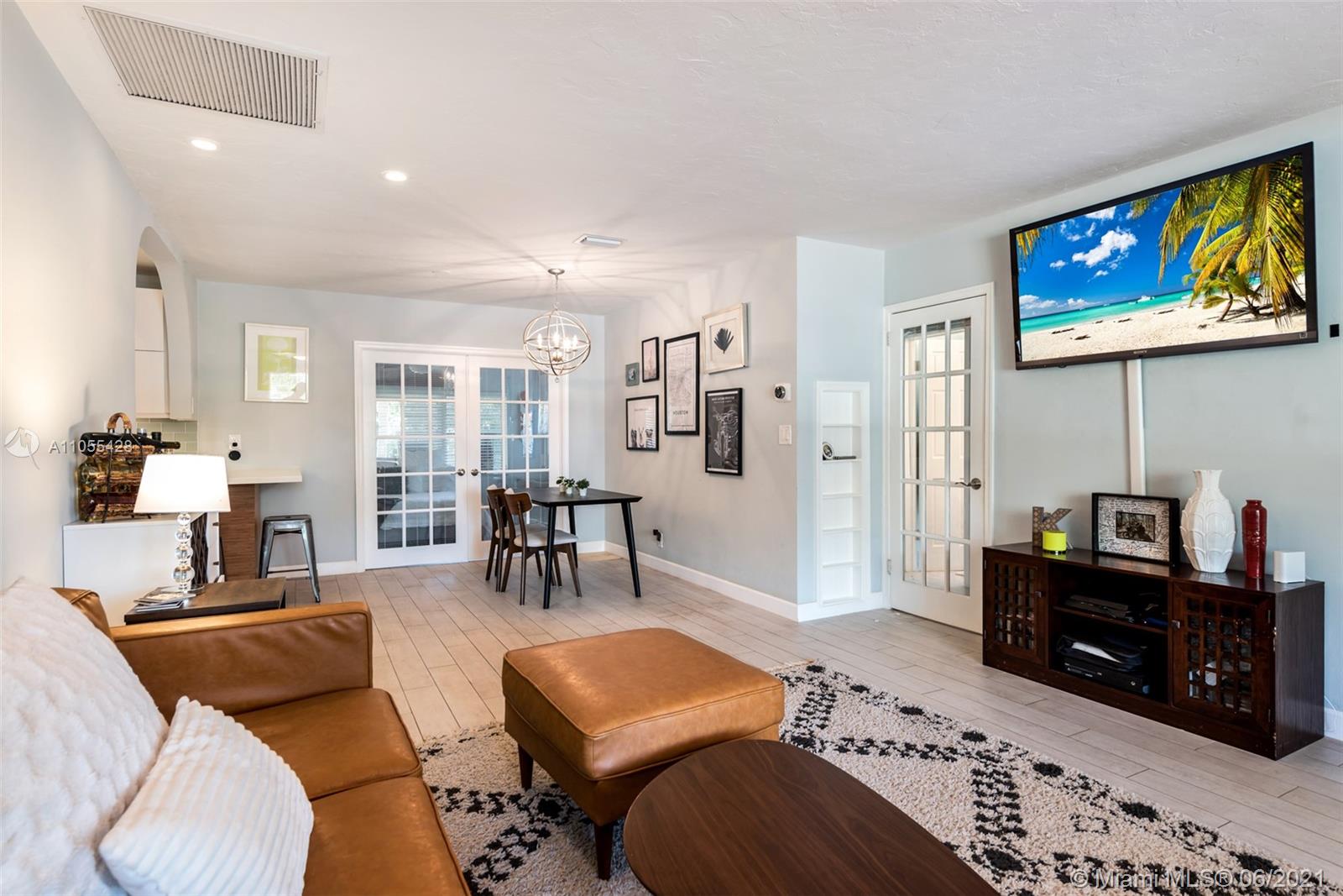 Home 1400 sq ft per owner. Beautifully updated 3 bed / 2 full baths open concept home in quaint & highly desirable Hollywood Lakes. Fully updated designer kitchen with bamboo cabinets, quartz countertops, stainless steel appliances, gas stove, new porcelain floors throughout. Updated bathrooms, 1 car garage with window & side door which can easily be converted into 4th bedroom. Spacious fenced backyard with fruit trees, and lot's of room for a pool. A/C 5 years old. Walking distance to ArtsPark at Young Circle Hollywood Beach Golf Club. Minutes to famous Hollywood Beach, Hollywood boardwalk, Downtown Hollywood, & new Margaritaville Beach Resort.