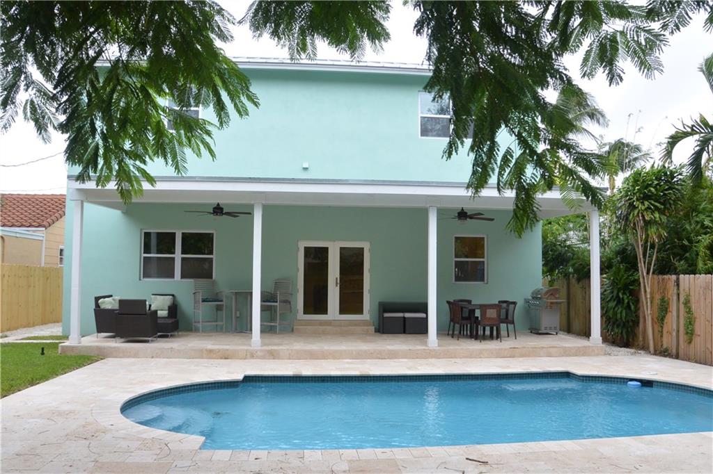 Historic Key West feel in a new construction with all modern fixtures. Original house was completely rebuilt in 2021 with new concrete foundation and CBS walls. Metal roof. Open two-story design; 4 spacious bedrooms (2 masters), glass enclosures in showers; huge dream kitchen with top of the line SS appliances, marble countertop with amazing backsplash, kitchen island; electric fireplace with custom built-ins, laundry room; spacious private covered patio; volume 10' ceilings;walk-in closets; marble flooring on the first floor; wood floors on 2nd floor. New swimming pool. Front porch. Desired Tarpon River area, minutes to Las Olas shops and restaurants, the beach, airport. Set-up and furnished as Airbnb with 5star reviews (license expired but can be renewed)