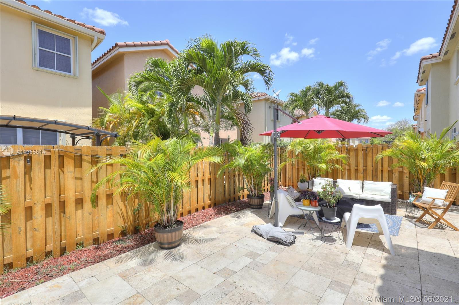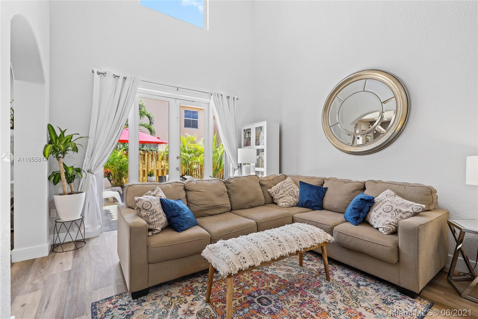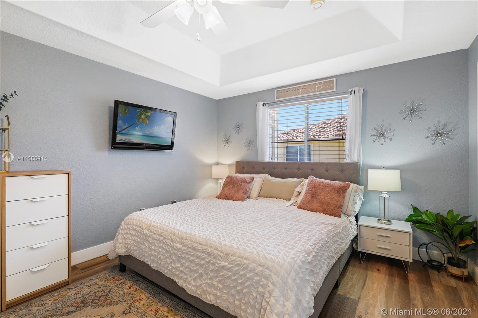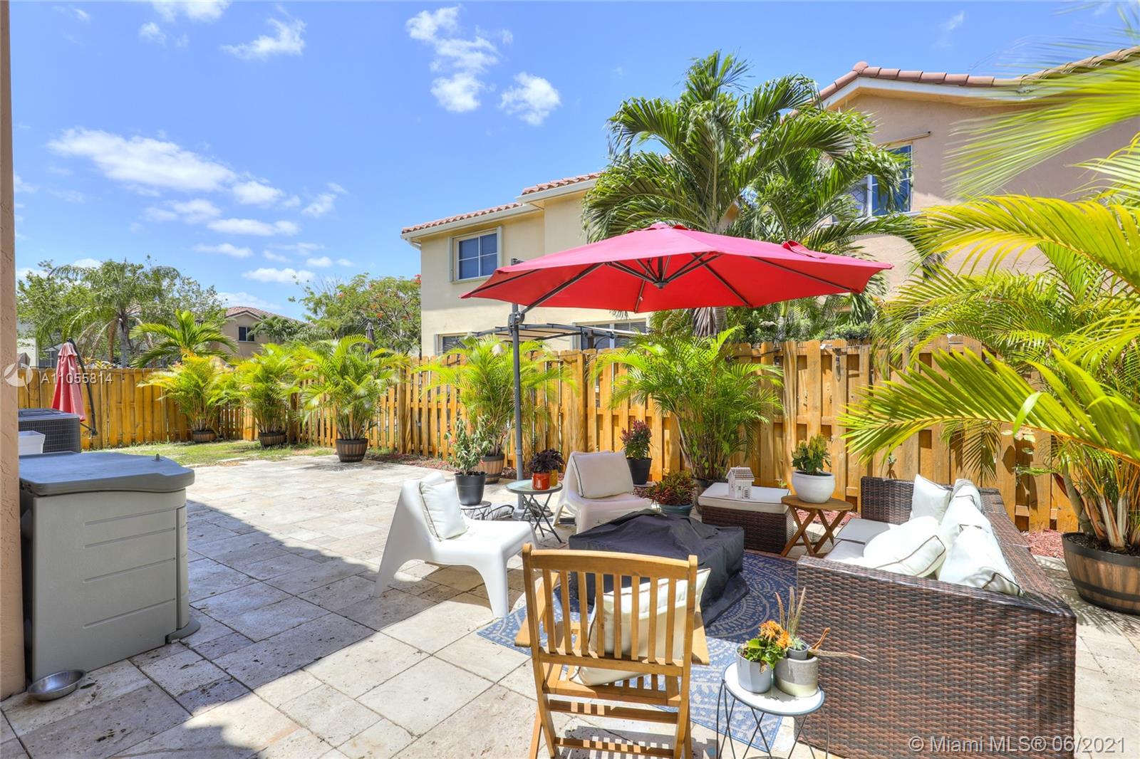 Beautiful 2-story corner unit with oversized back yard. Kitchen was recently remodeled, new laminate waterproof flooring on the first floor. Bathrooms have new vanities, toilets, mirrors, and light fixtures. Accordion shutters throughout. 24:7 security and guard gate. Amenities include a pool, clubhouse/community room, tennis courts, basketball court, gym, and plenty of bike and jogging paths. Garage was partially converted to a gym and sound booth.