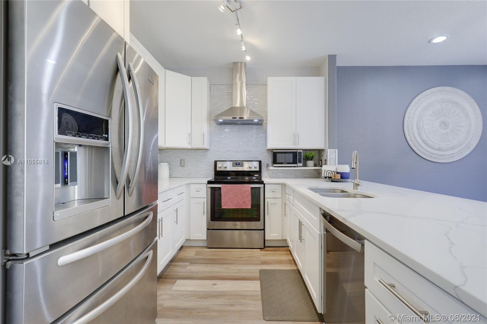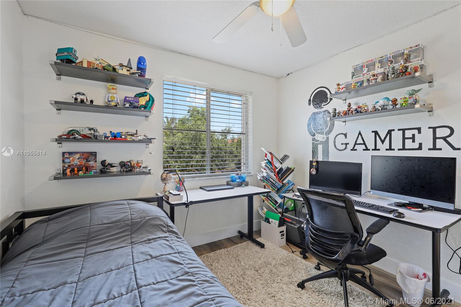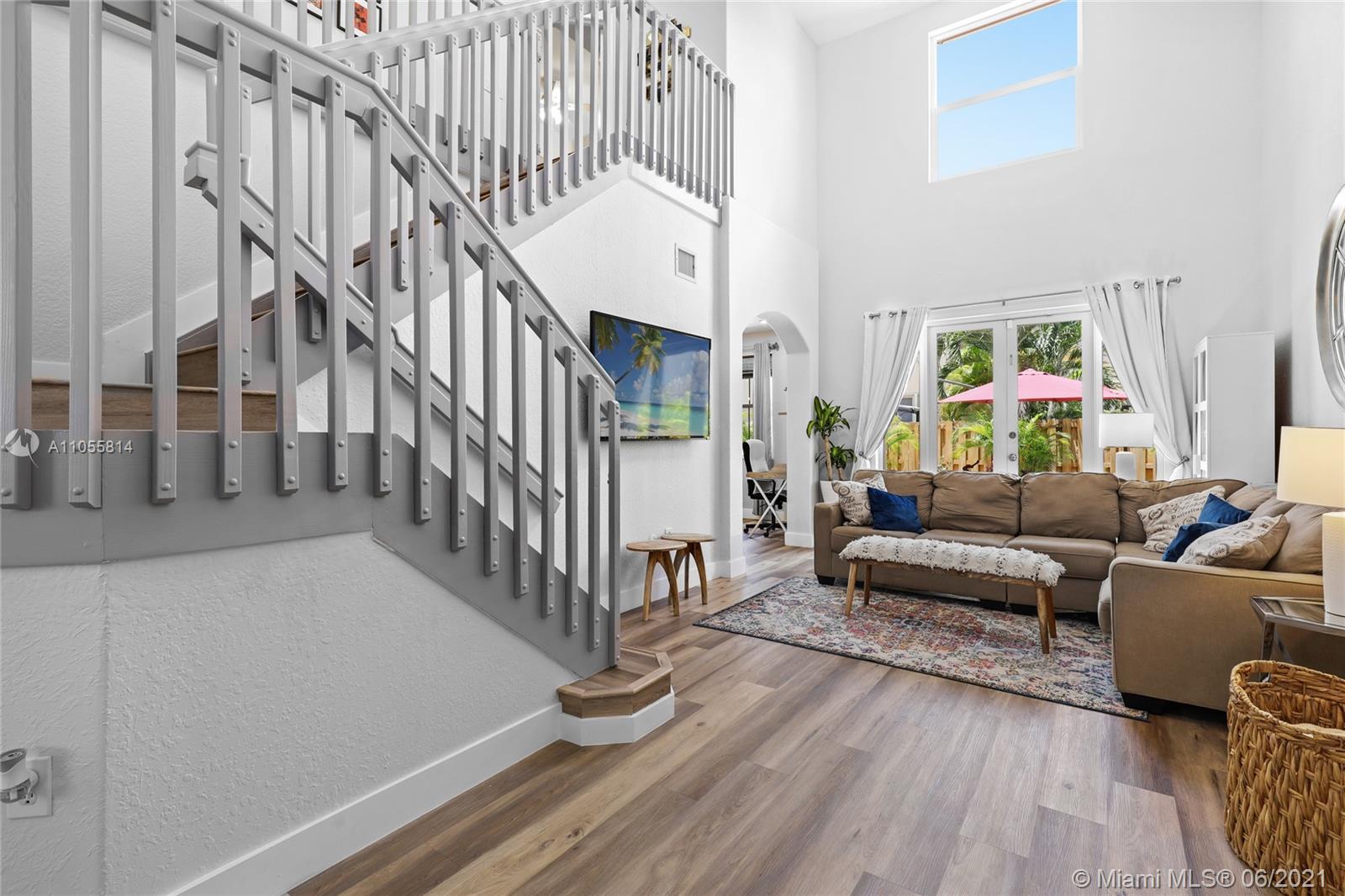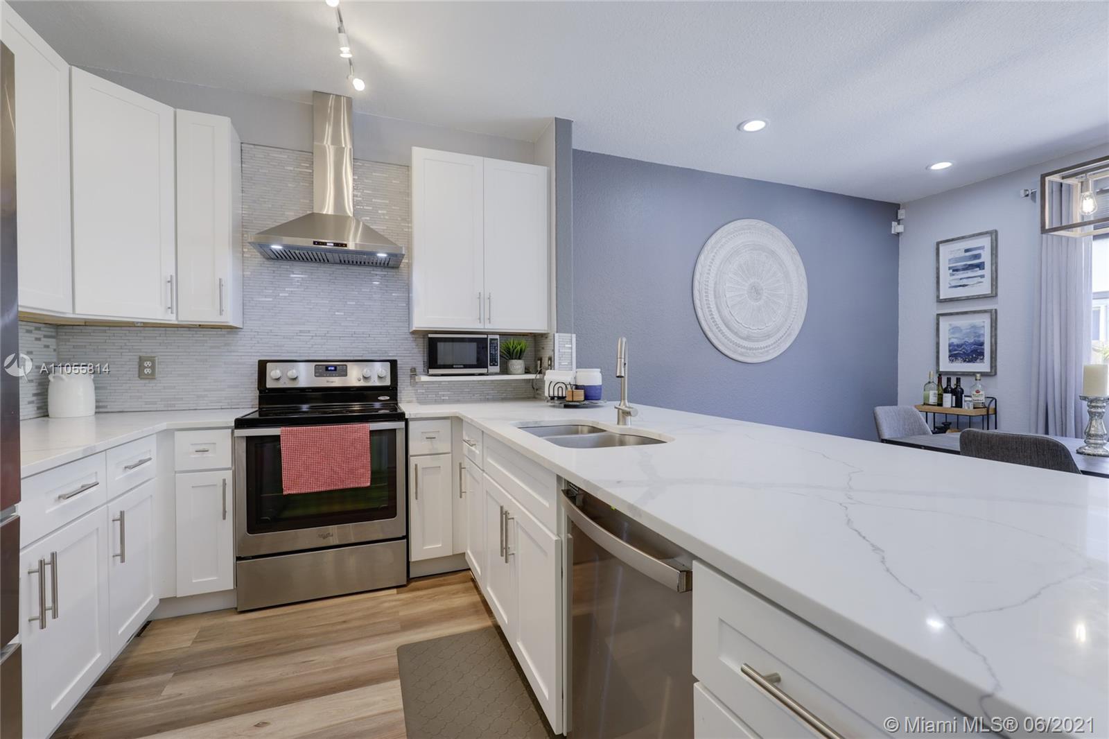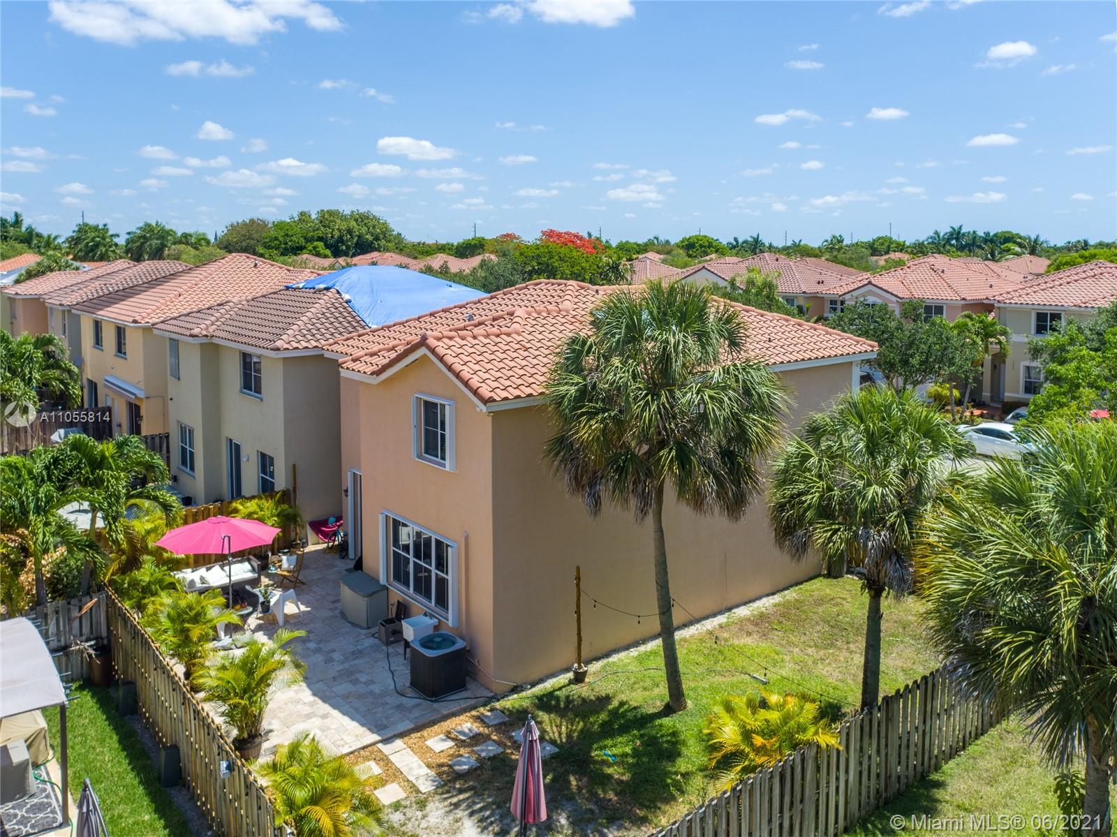 Beautiful 2-story corner unit with oversized back yard. Kitchen was recently remodeled, new laminate waterproof flooring on the first floor. Bathrooms have new vanities, toilets, mirrors, and light fixtures. Accordion shutters throughout. 24:7 security and guard gate. Amenities include a pool, clubhouse/community room, tennis courts, basketball court, gym, and plenty of bike and jogging paths. Garage was partially converted to a gym and sound booth.