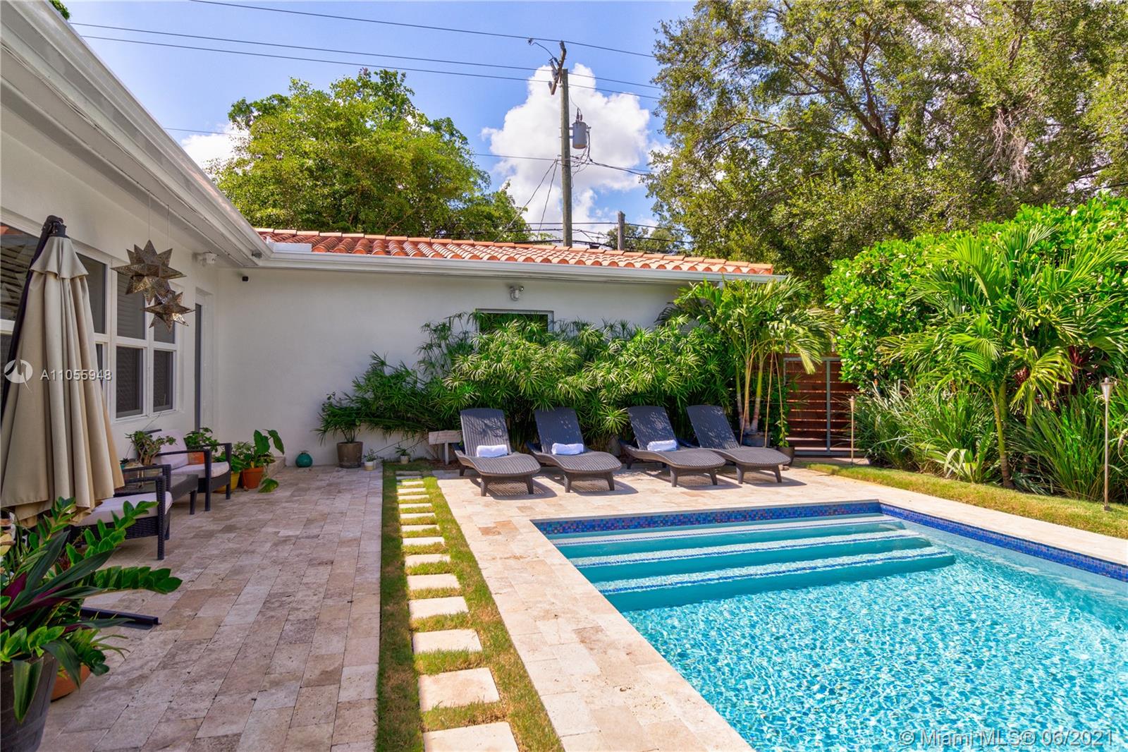 Exquisite Mid Century Miami Shores 3-2.5 pool home with a 1 car garage. Interior redesign complete 2017-18 with thoughtful attention to detail. This home features a new modern open kitchen with high end finishes, expansive master bedroom with a large walk-in closet and a beautiful new master bath. Designed for entertaining with a open flow from the formal living room in the front though the den/dining room and attached open kitchen, out to the salt water pool. All windows and doors are impact and the septic system was just replaced. This is Miami Shores living at it's best. Driving Directions: