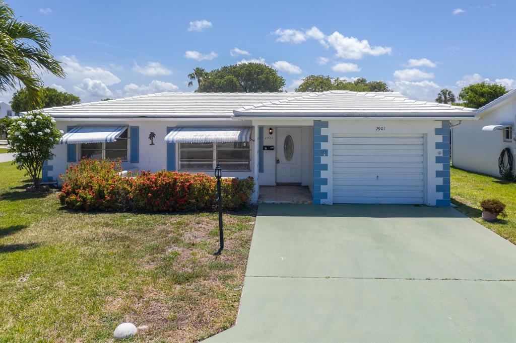 This beautiful and spacious 2 Bedroom/2 bath home with a one car garage is situated on a corner lot. Verified 55+ Community. Washer/dryer to stay. Low Maintenace fee includes lawn, water, Association scheduled house/roof painting. Community amenities include: 2 heated poos, 2 clubhouses, 9-hole/Par 3 Golf Course, association scheduled Courtesy Bus.