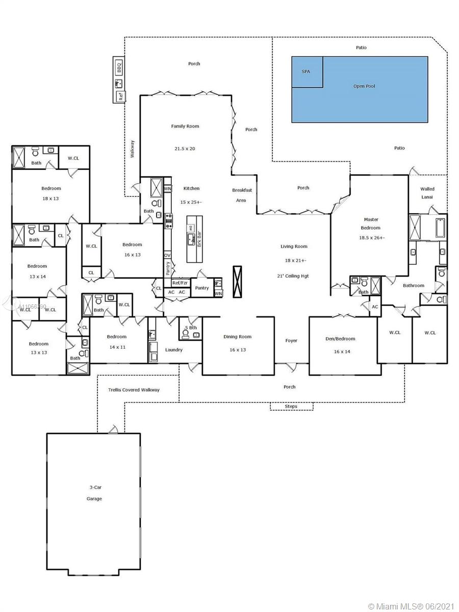 PINECREST - Incredible Brand New Modern Construction , home like from Designer magazine ! 6 bedrooms plus office or bedroom,7 1/2 baths, 3 car garage,High Ceilings- 21 ft Living room and entrance, 11 ft high rest of house,Gorgeous Porcelain Tile ( 3ft x 3 ft )Huge Master Bath-Dual shower and tub enclosed, Fabulous Master Bedroom with tray ceiling, sitting area, large walk in closets, 2 w/outdoor Tankless gas water heaters, POOL saline water,35 x 19,1000 gallon under ground propane gas tank, Gas Appliances, Subzero refrig, wolf appliances, Tile Roof, 6 zone sprinkler system w/well,Foam attic insulation for low electric bills ! Kohler plumbing fixtures, Lutron Electric lighting system, Impact Glass windows +doors, IT room,security cameras,Electronic Gate Entry Outdoor Kitchen ,Total SF 7790
