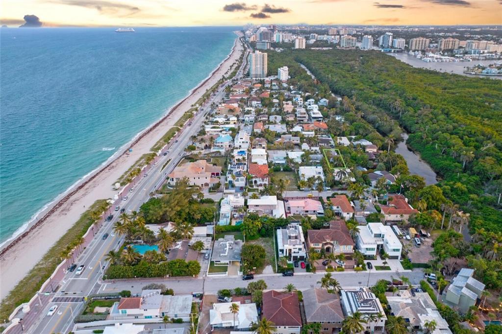 This quintessential South Florida beach house is located in the 152-lot enclave of Las Olas By The Sea. Sited on a quiet cul-de-sac just 7 houses from the ocean, this 949 square foot charmer features 2 beds, 1 bath, a 1-car carport, and large private back yard with outdoor shower. The 6,236 square foot lot offers plenty of room for a pool and an addition. Start your day with coffee on the generous front terrace or throw open the French doors to let the sea breeze in. Swap dress shoes for sandals and make the Atlantic Ocean your playground. Current owners enjoy snorkeling just offshore, walking the dogs at Birch State Park, and proximity to nearby amenities including Bayview Elementary. Freshly painted with gorgeous wood floors, new carpet, gas stove/hot water, newer A/C (2019) & electric.