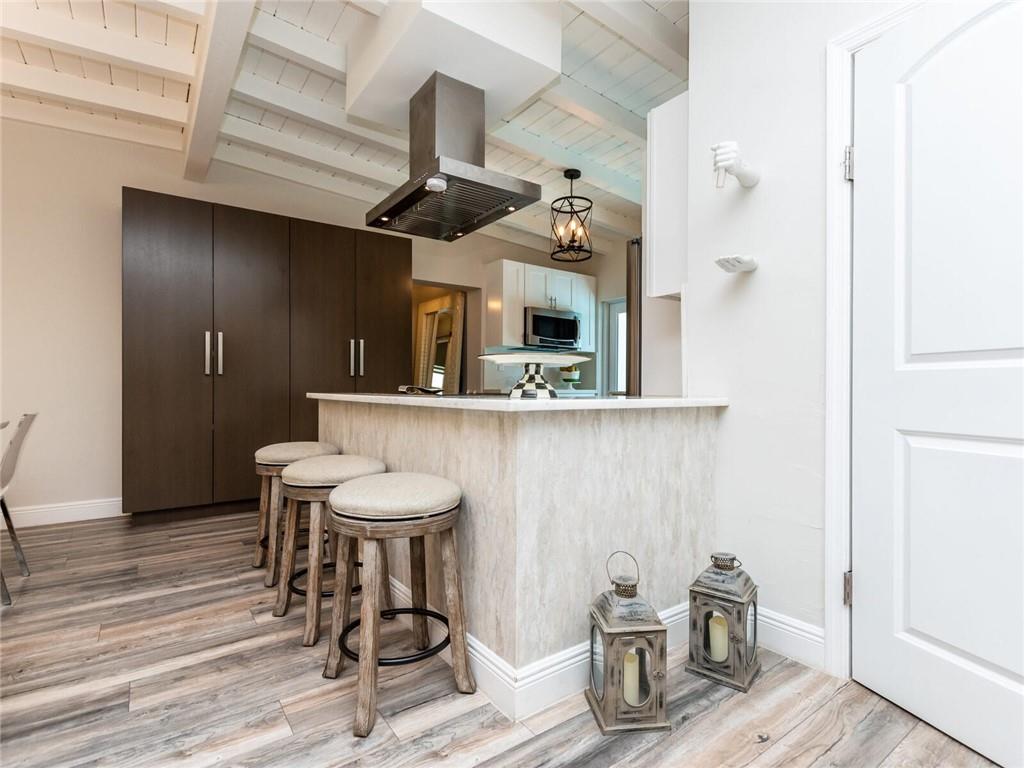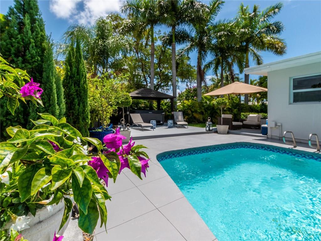 Amazing opportunity to own this gorgeous home in the prestigious gated Keystone Point! This 3 bedroom 3 bathroom pool home features a split floor plan with vaulted ceilings and upgrades throughout. Upgrades include engineered wood flooring, updated modern kitchen with quartz countertops and marble backsplash, updated stainless steel appliances and front load washer & dryer, High Impact windows, water heater only 3 years old, new sprinkler system, updated teak decking w/ 25 year warranty, Flat roof refinished 2 years ago w/ warranty, Heated pool, custom built in cabinets, built in bar and closet organizer systems and so much more! The additional den/ bonus room could easily be converted to a 4th bedroom or office. Nothing left to do but bring your toothbrush and move in!