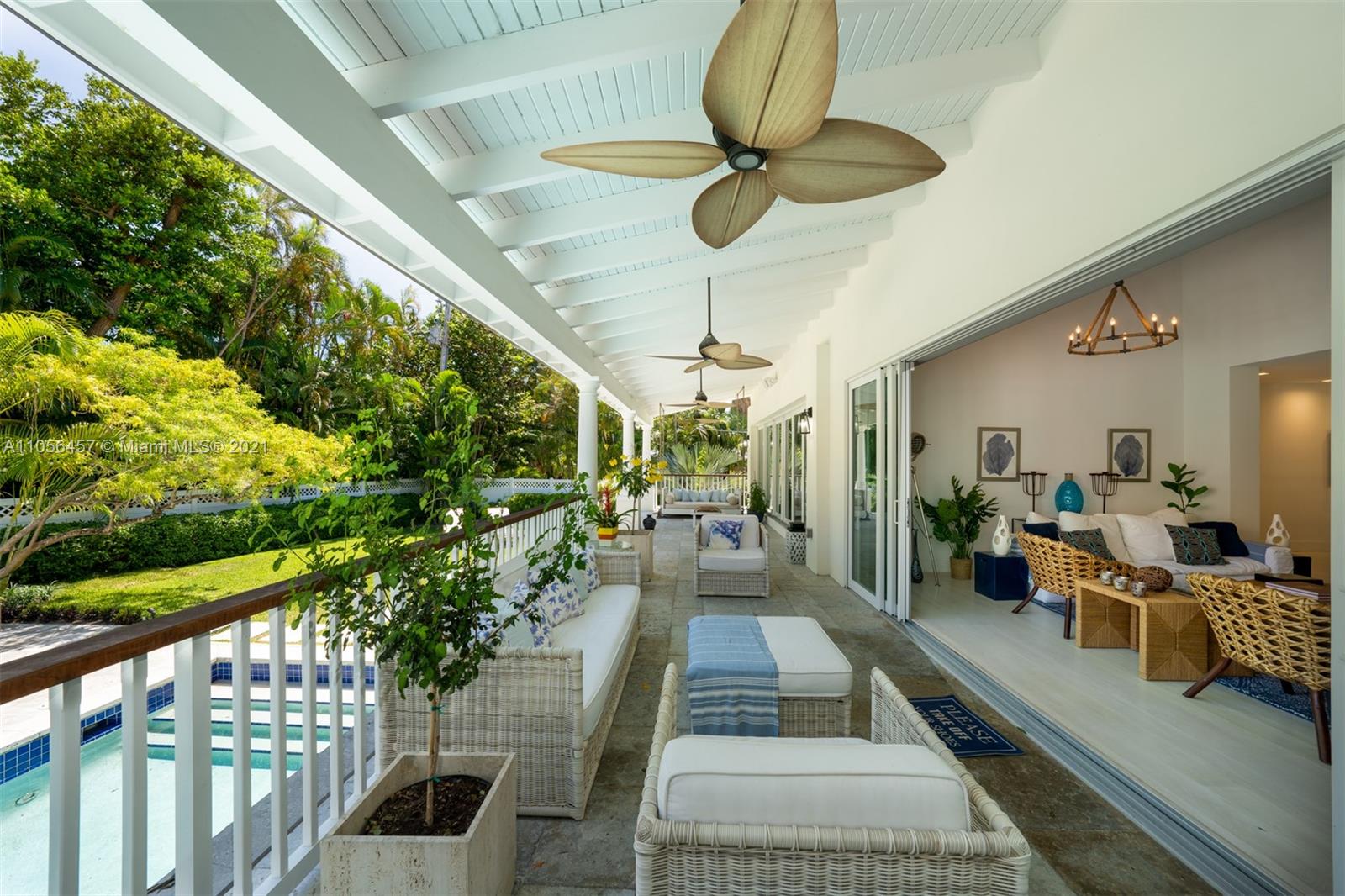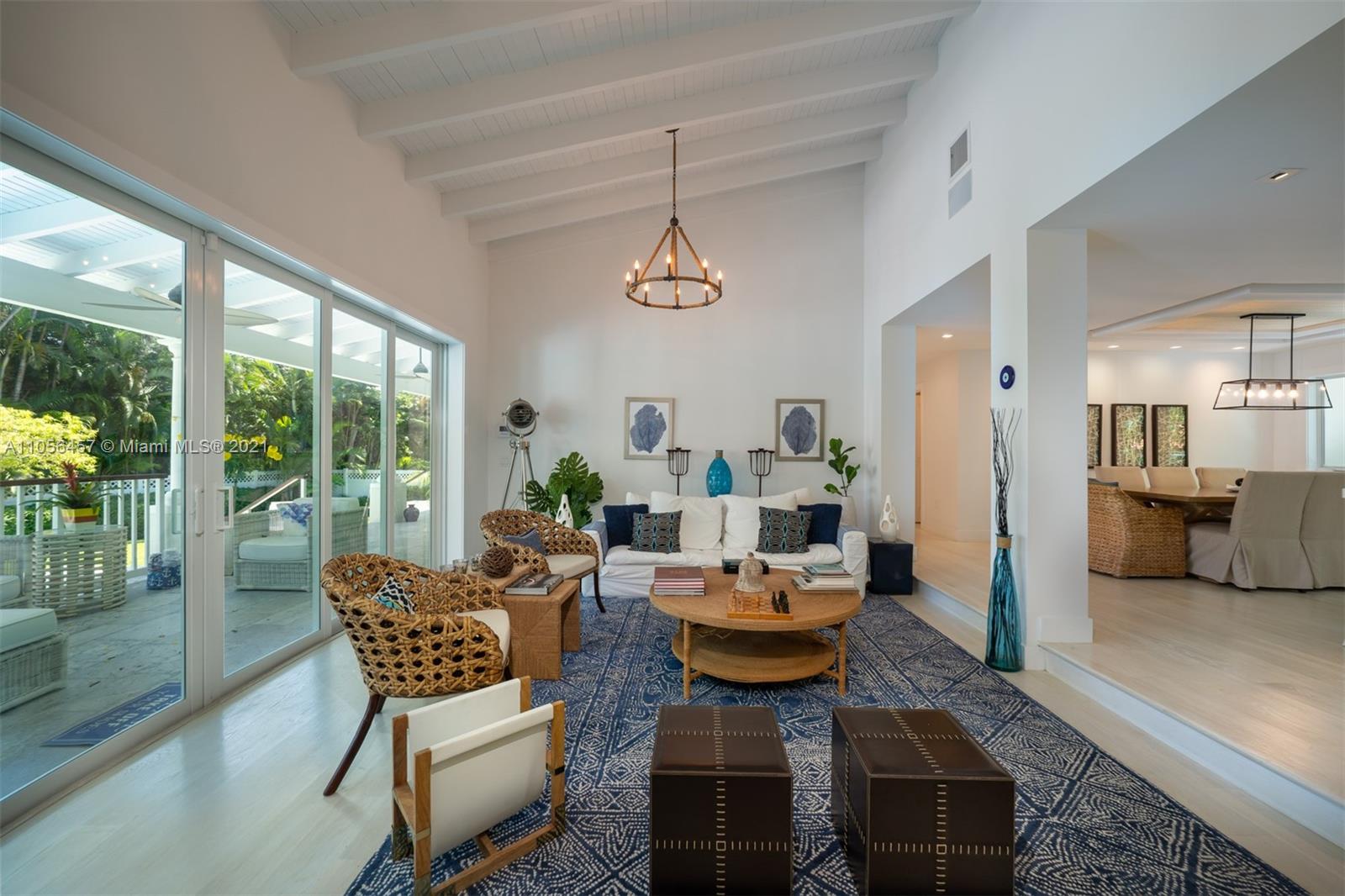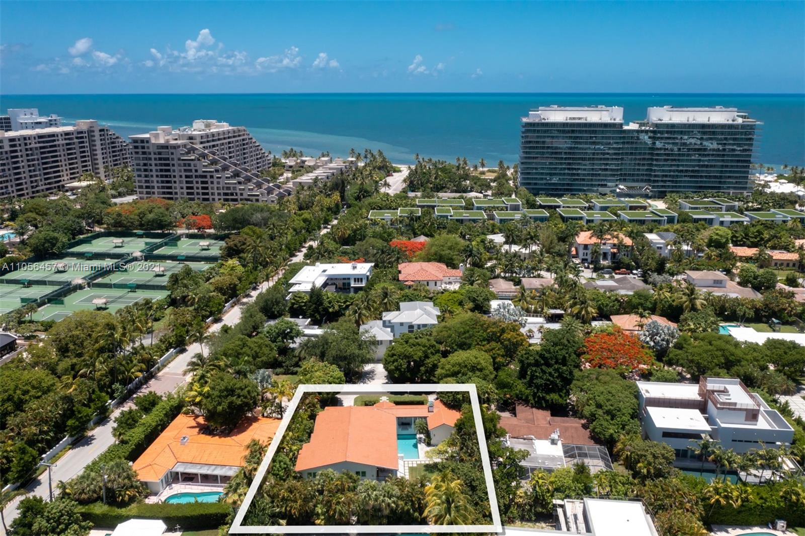 welcome to your Key Biscayne Beach House, located 3 blocks from the beach. Impeccable condition, designed by Village Architects. Located in the Holiday Colony area, the closest neighborhood for single homes to access the beach .One story home. Secluded and private, behind the double blue door an oasis of serenity will welcome you. Covered porch that gives more space to the living room area,direct access to pool and garden area. Oversized master suite with sliding doors opening to the terrace. Large family room , dining , kitchen with high ceilings . Surround system throughout the home. Built at 10 ft above flood ( see attachment for certificate of elevation). Impact glass doors / windows (expect one small window in laundry area). THE PERFECT HOME